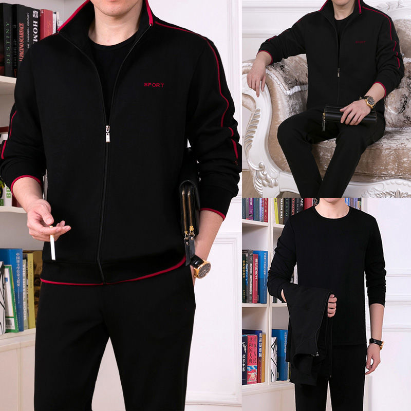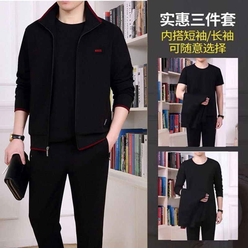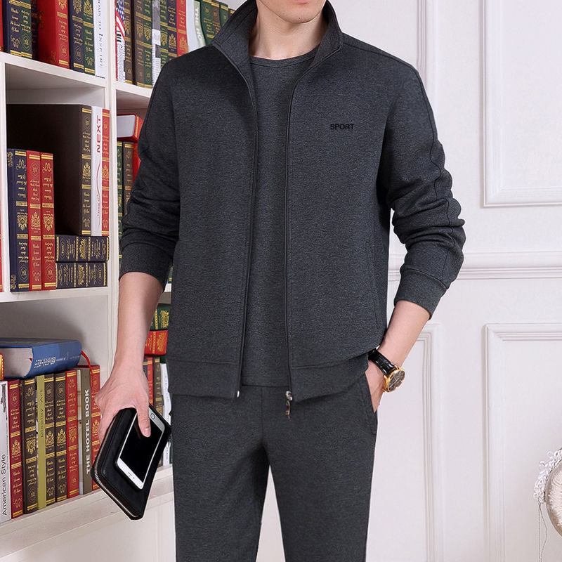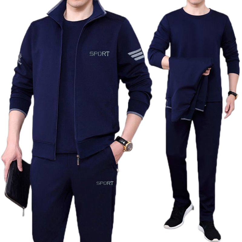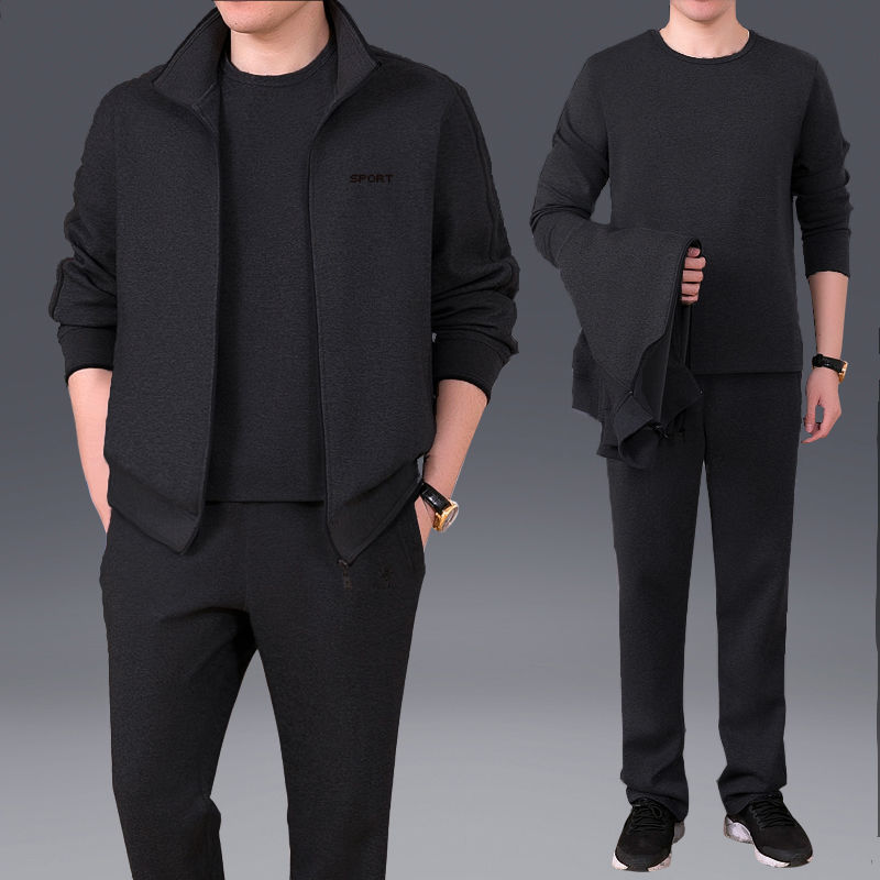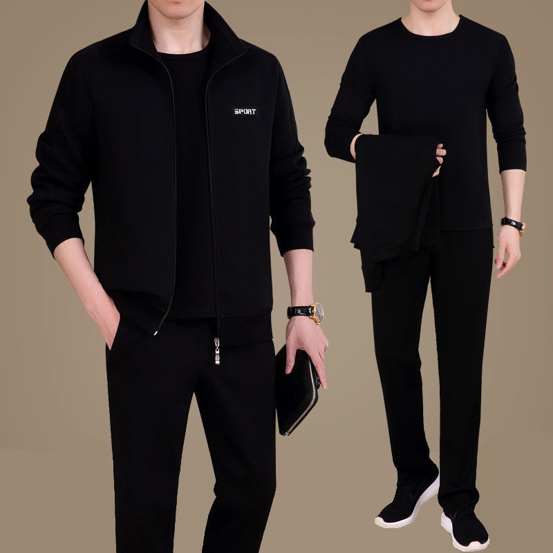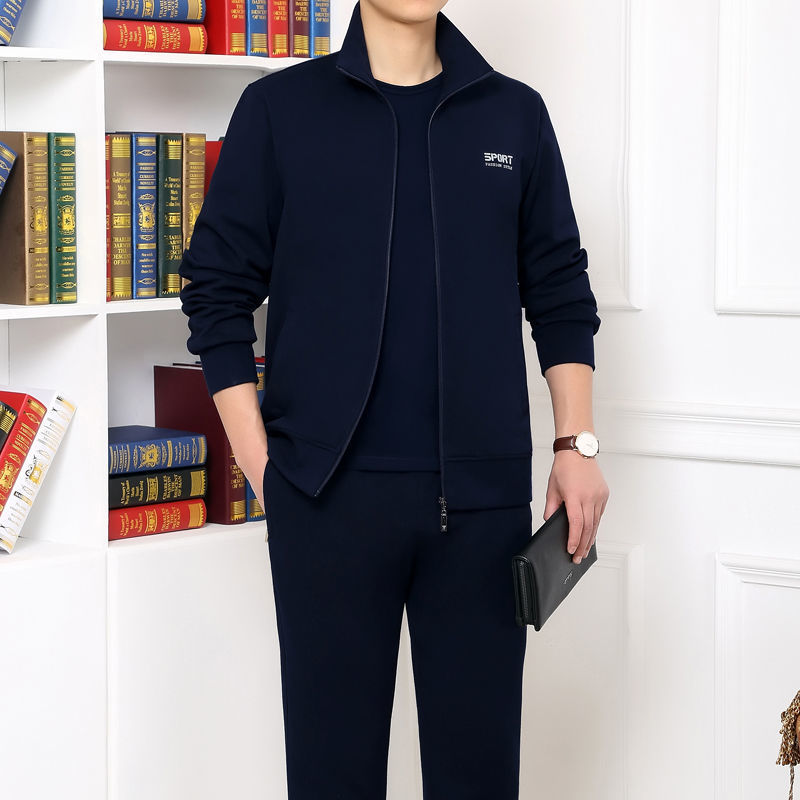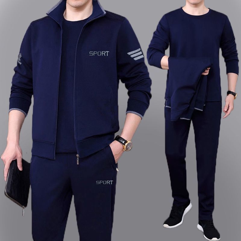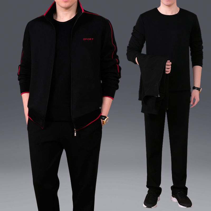 Мужская одежда для спорта и отдыха среднего и пожилого возраста, весенне-осенняя спортивная одежда больших размеров, комплект из трех предметов с длинными рукавами, спортивная одежда для мужчин среднего возраста