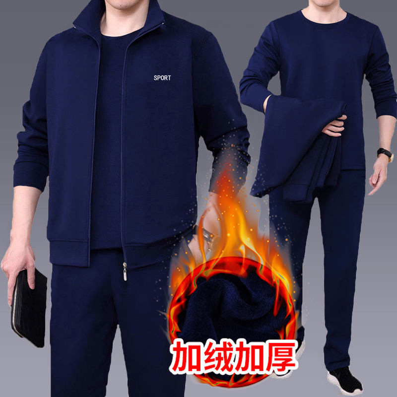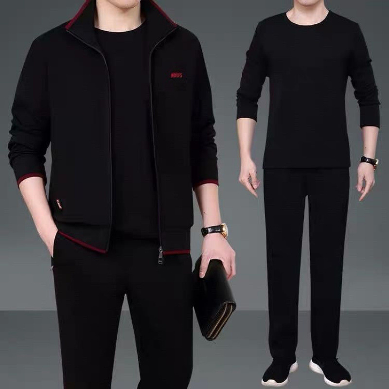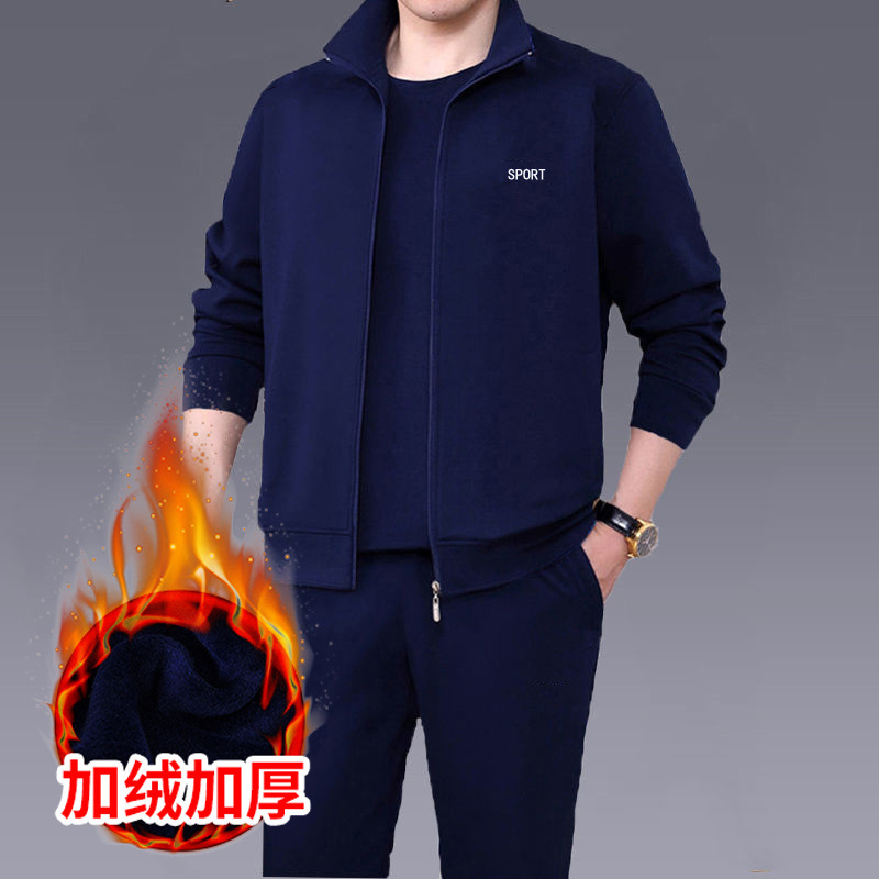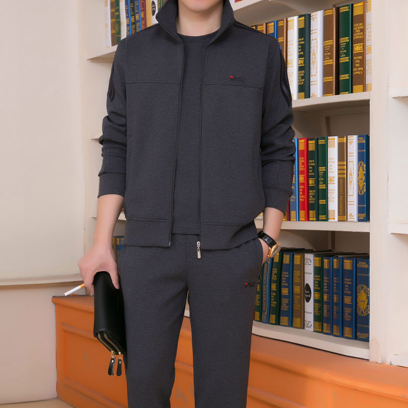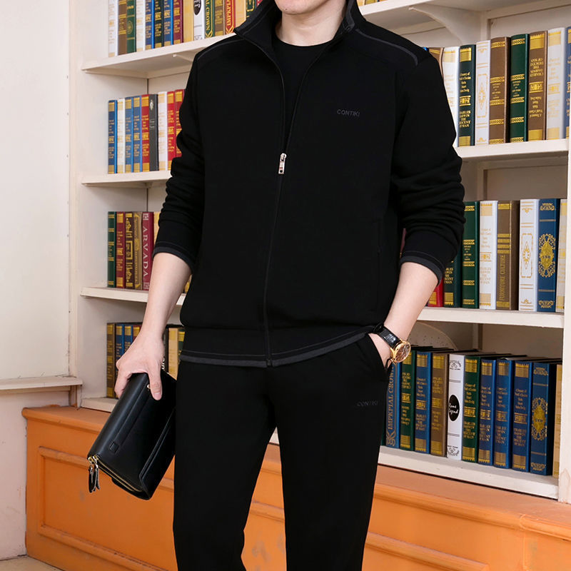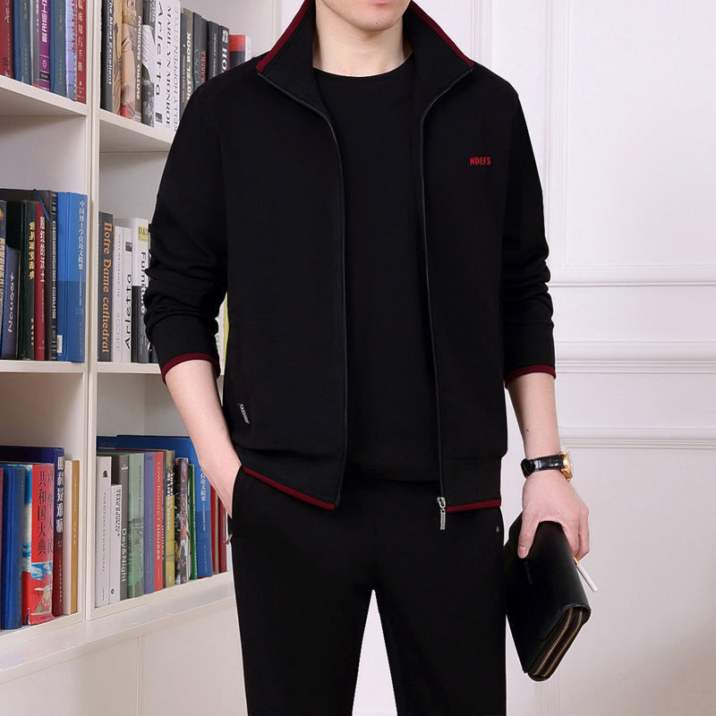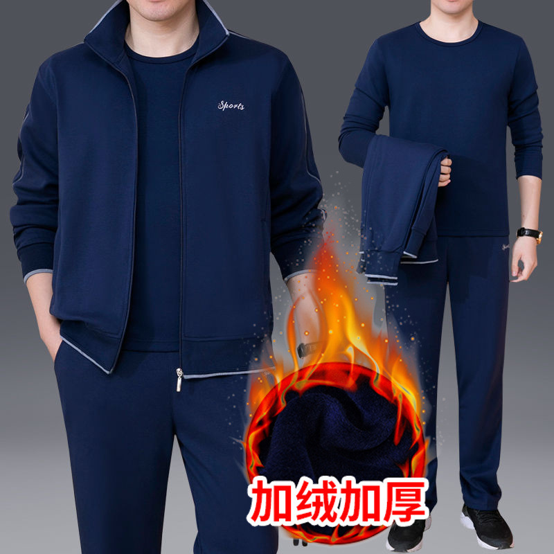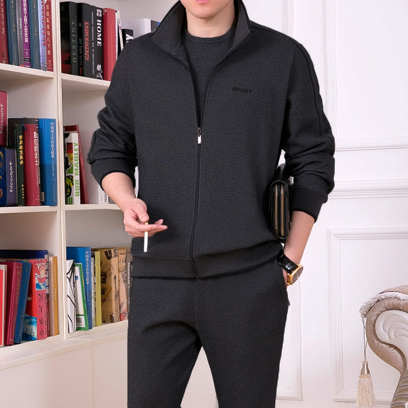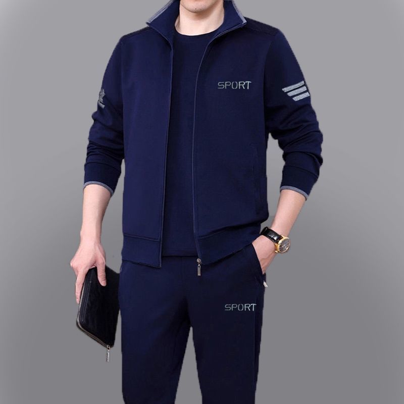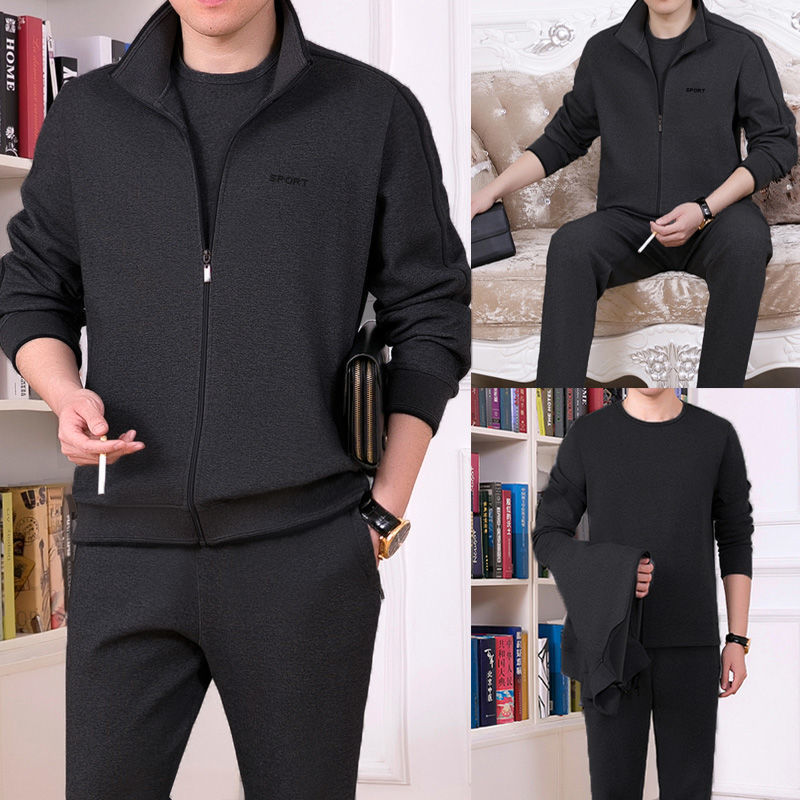 Мужская одежда для спорта и отдыха среднего и пожилого возраста, весенне-осенняя спортивная одежда больших размеров, комплект из трех предметов с длинными рукавами, спортивная одежда для мужчин среднего возраста