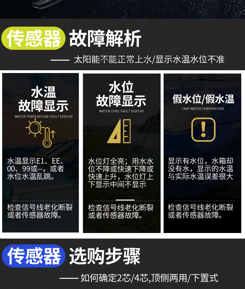 Универсальный солнечный водонагреватель, аксессуары для приборов, датчик температуры воды и уровня воды, четырехжильный двухжильный зонд для измерения температуры