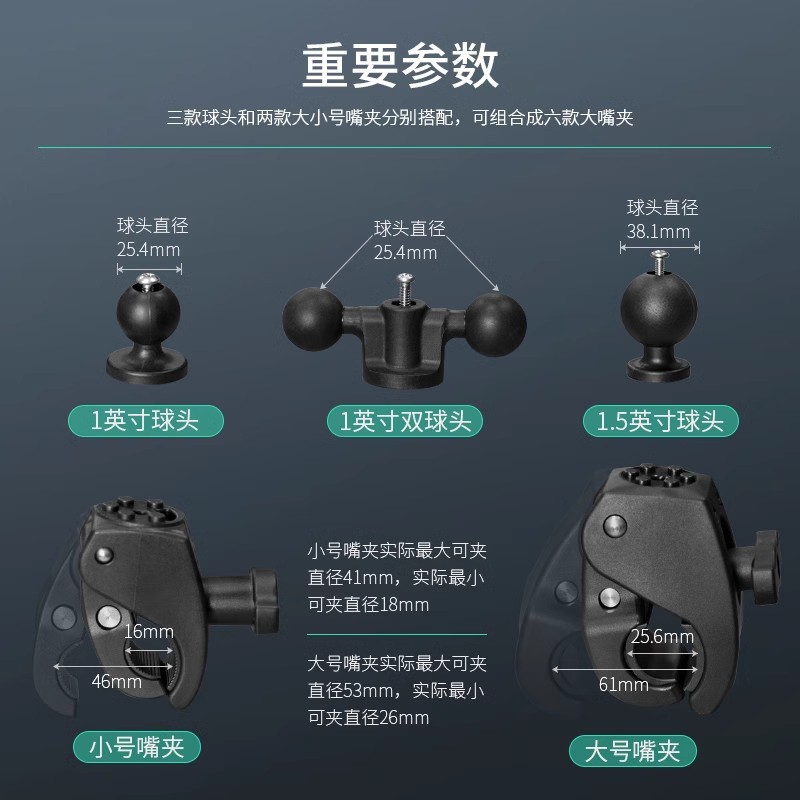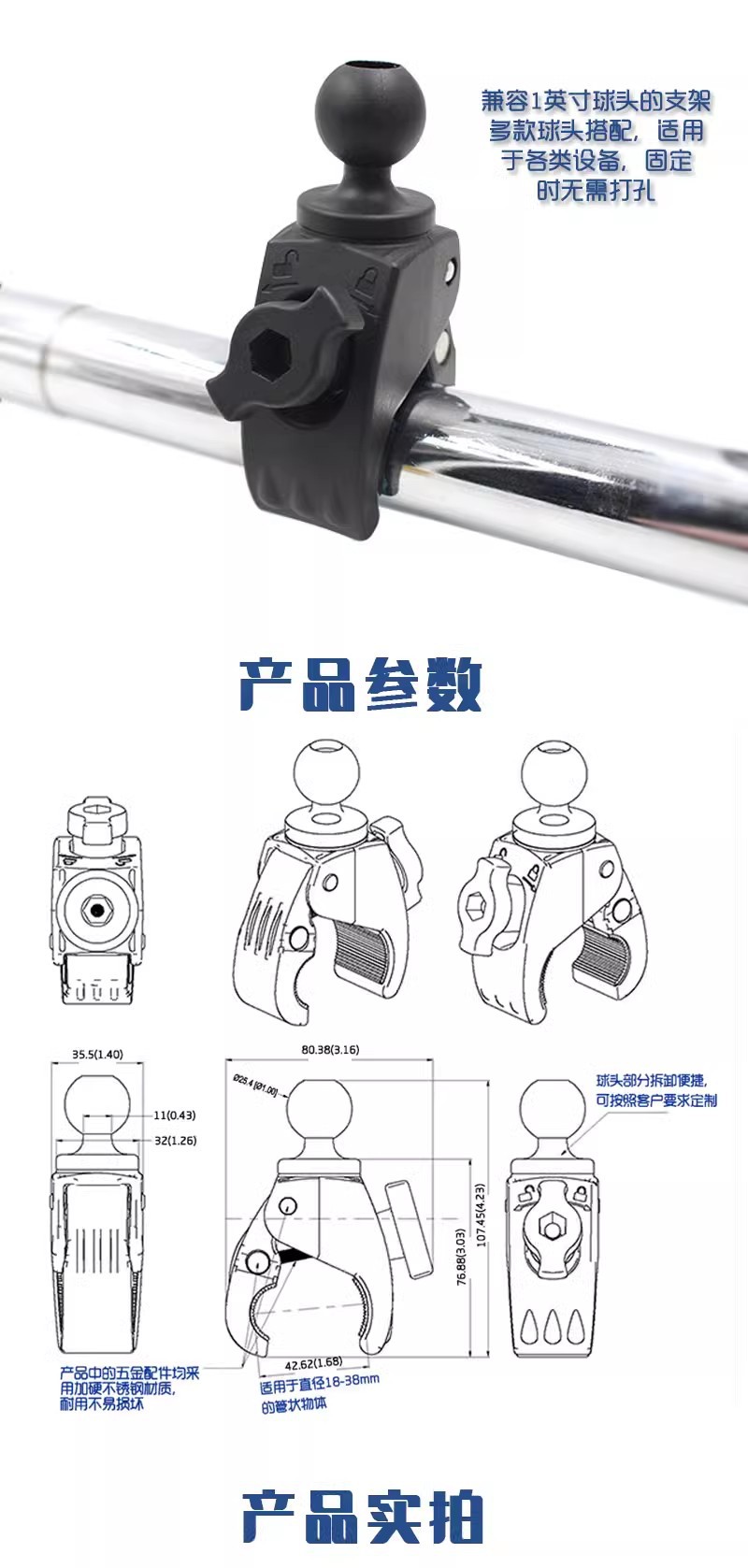 Крепежный кронштейн для круглой трубки Shengye Equipment, быстроразъемный зажим с шаровой головкой 1inch градусов, совместимый с круглой трубкой диаметром 18–40 мм, зажим с большим ртом
