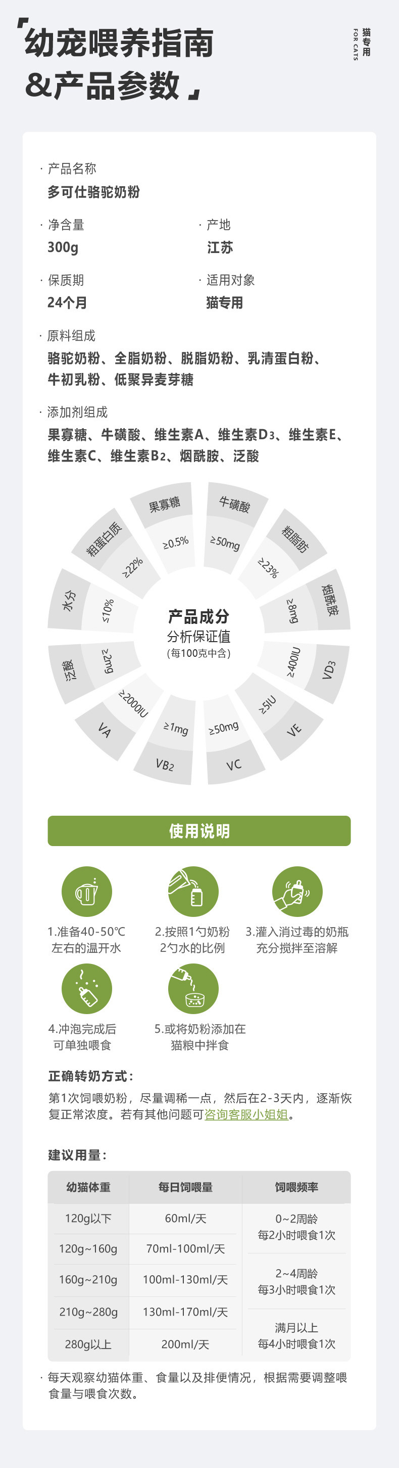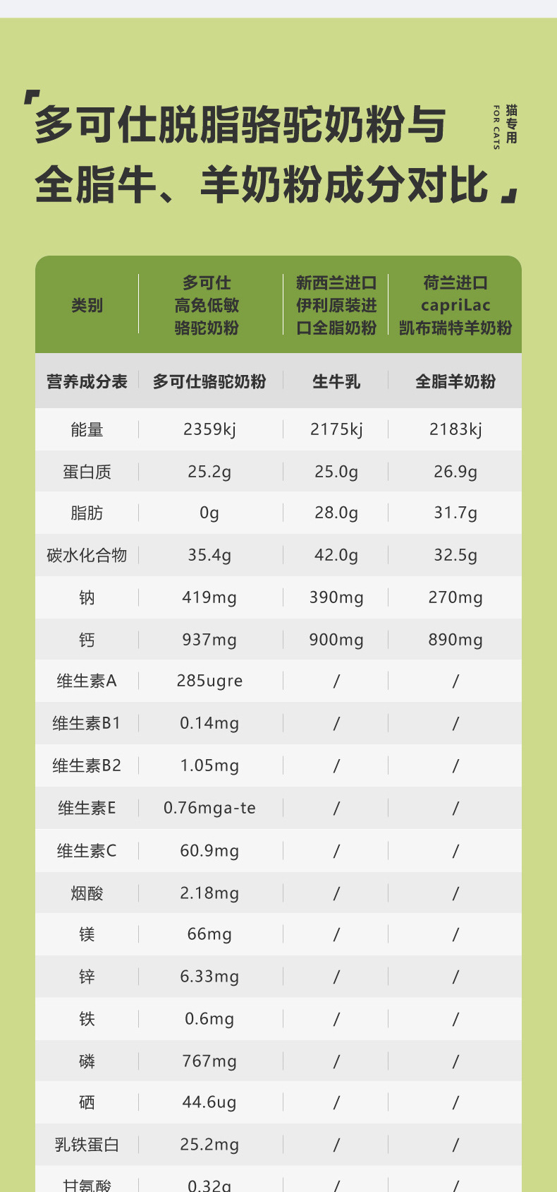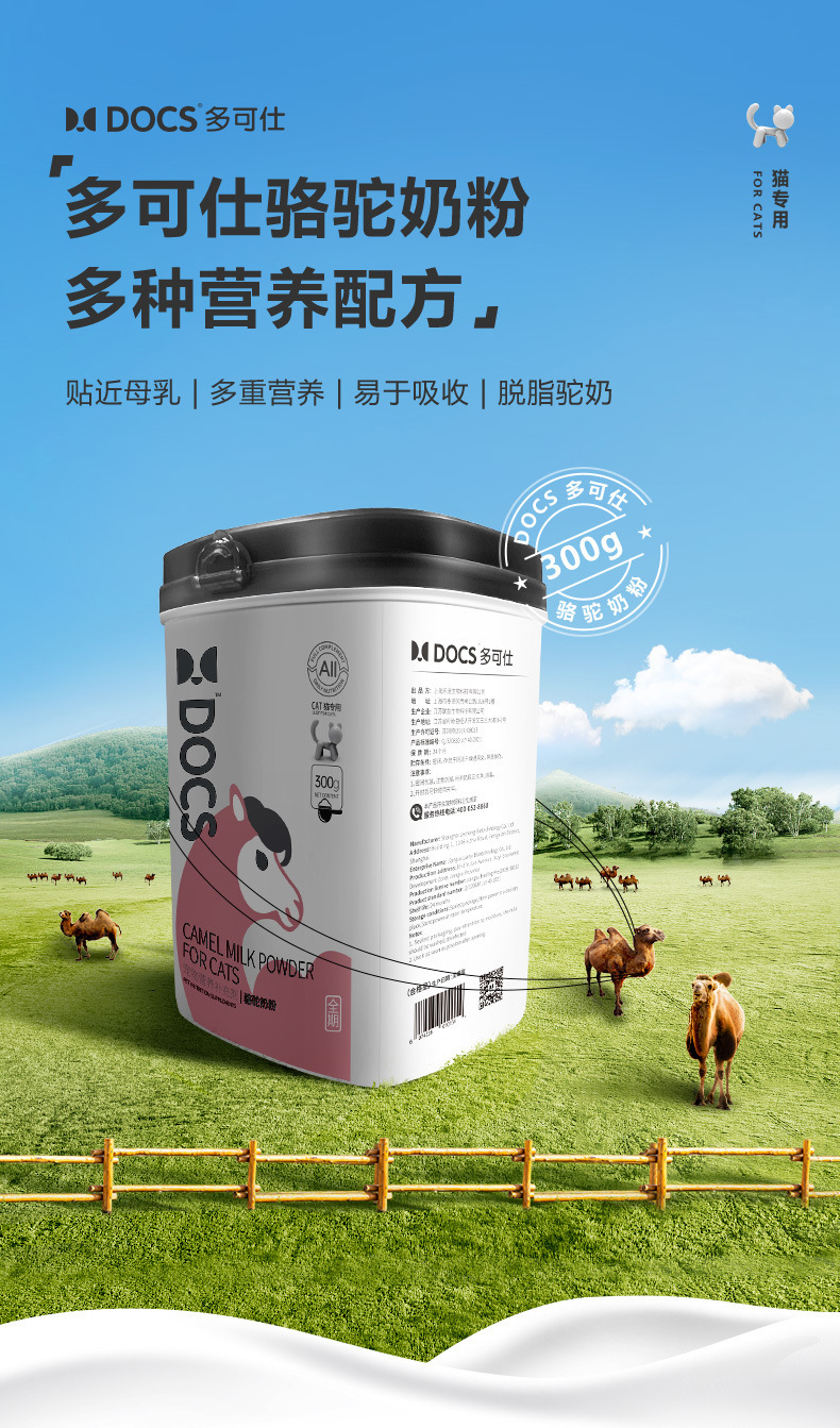 Сухое верблюжье молоко Docos, сухое котячье молоко, специальное высокобелковое сухое молоко для домашних животных для добавления кальция, высокое питательное значение, набор веса, отсутствие диареи