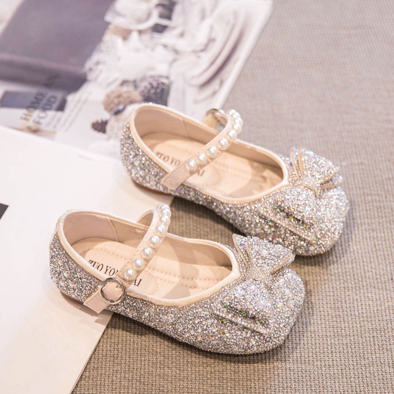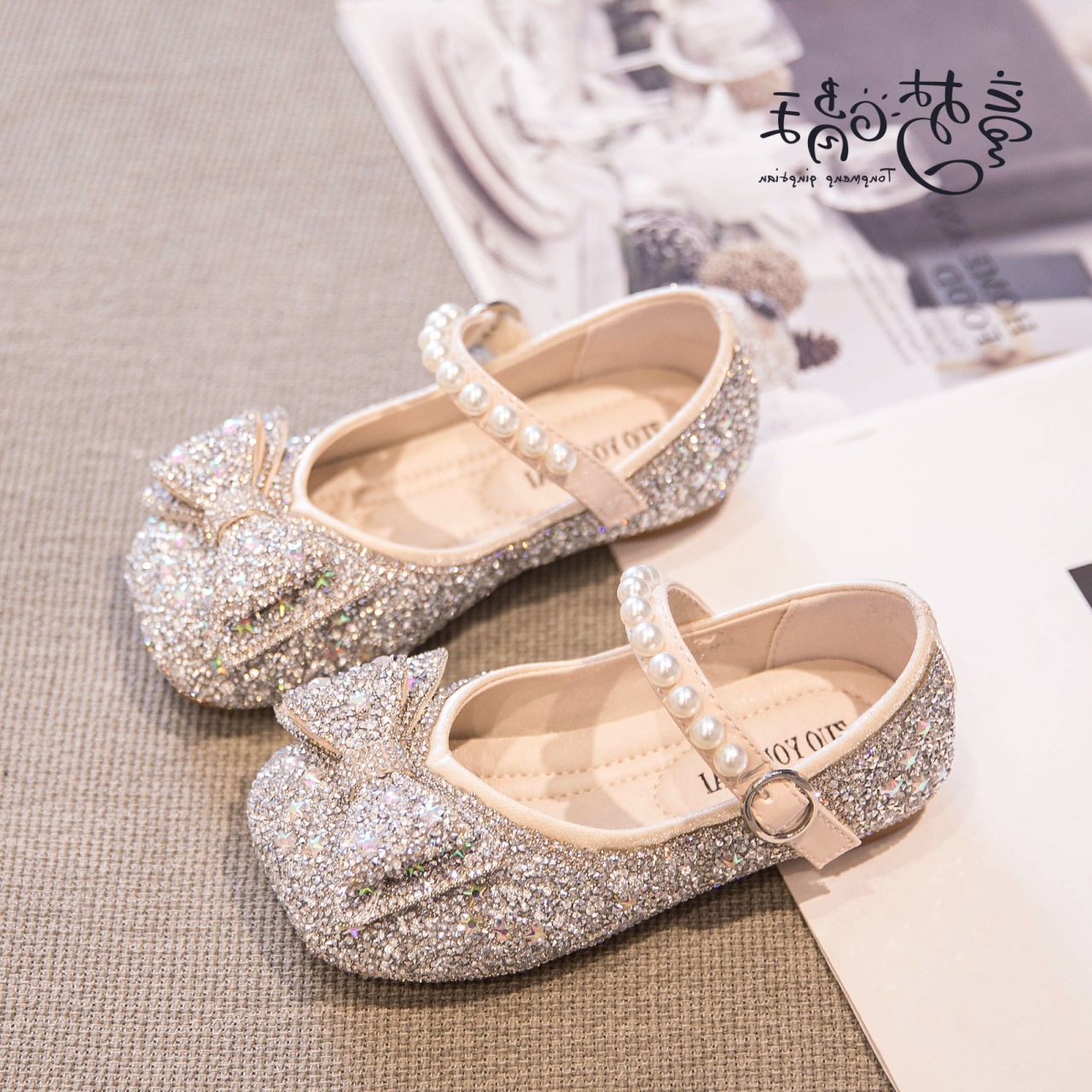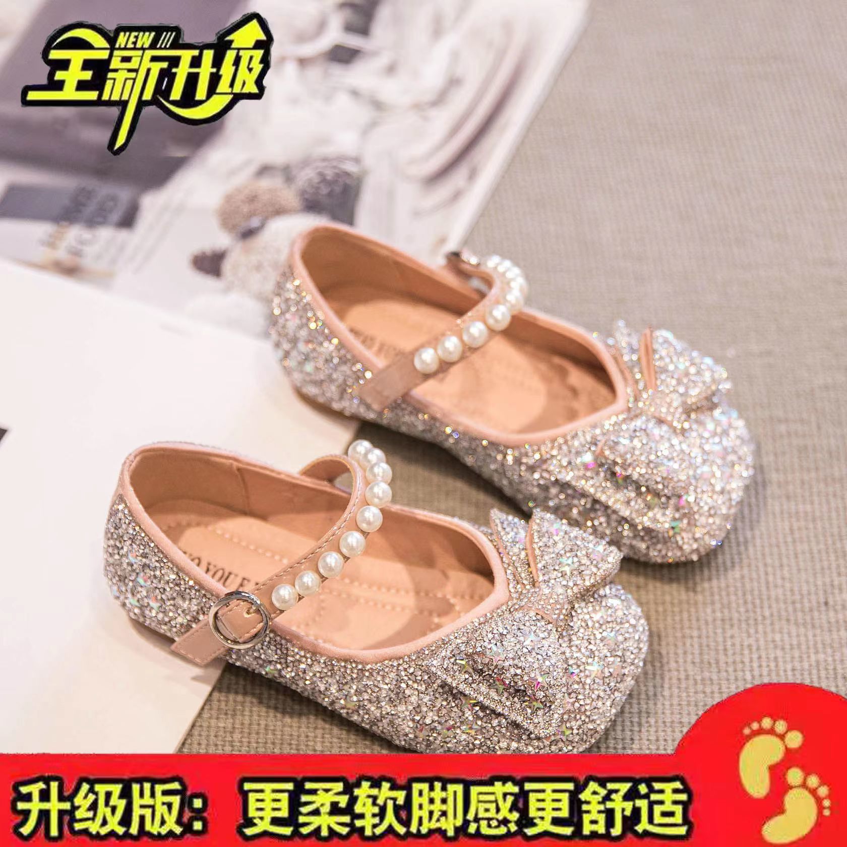 Новые весенне-осенние детские туфли для танцев, блестящие, в стиле принцессы, для маленьких девочек, с мягкой подошвой.