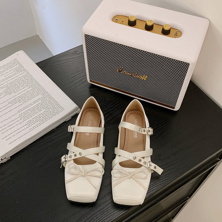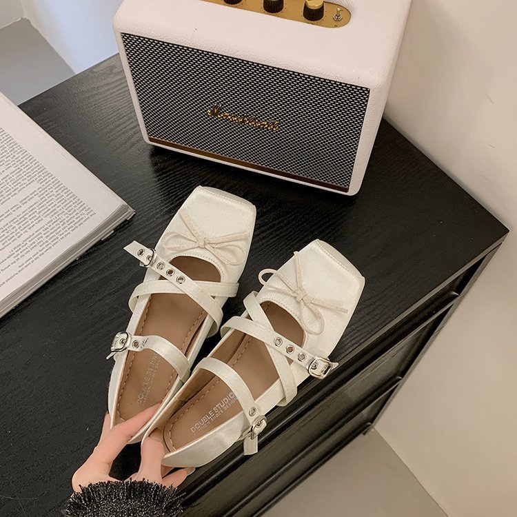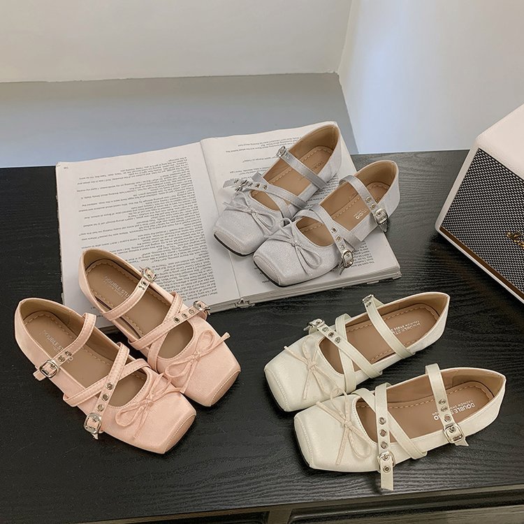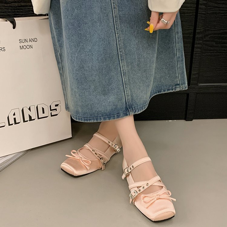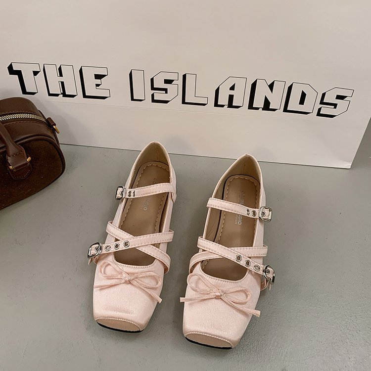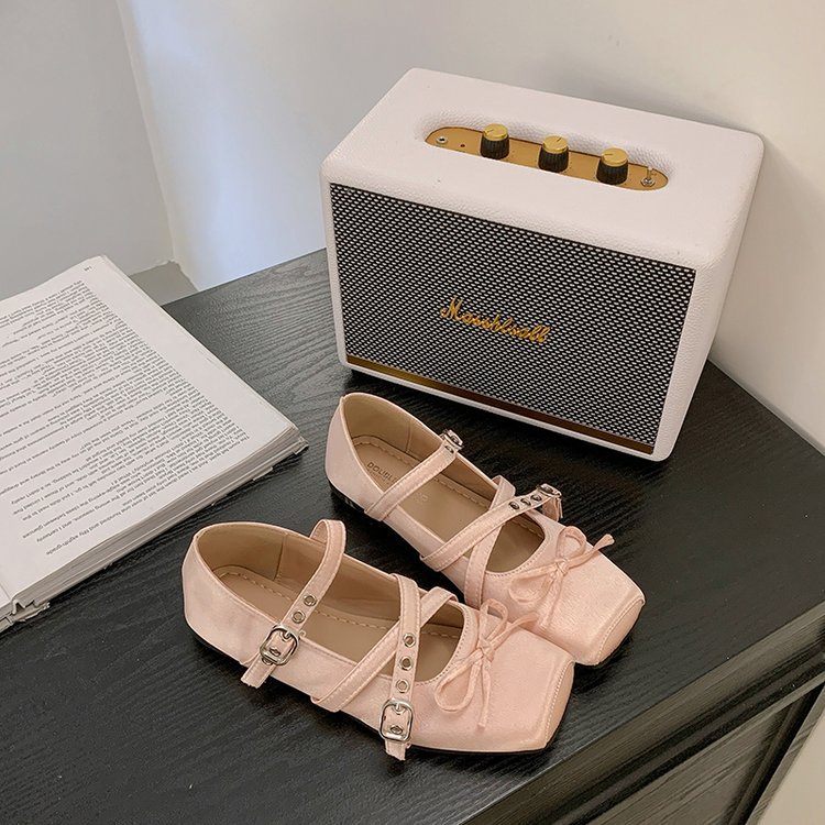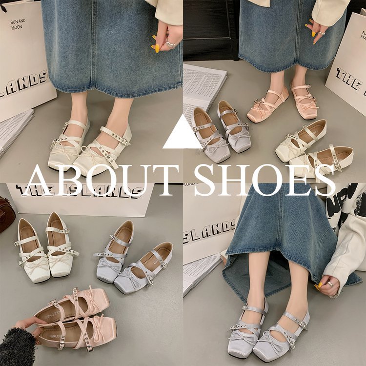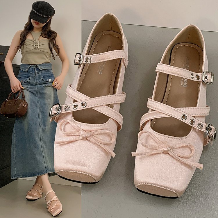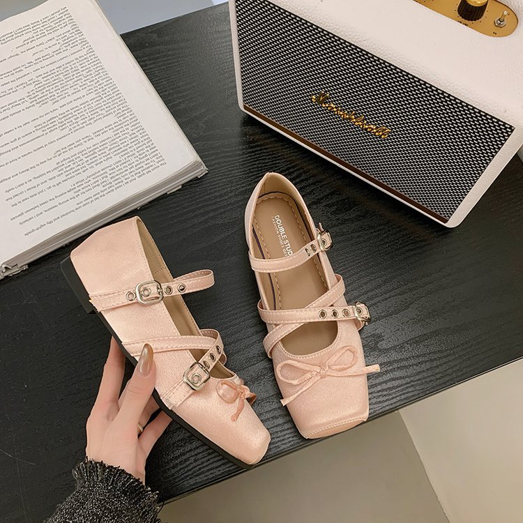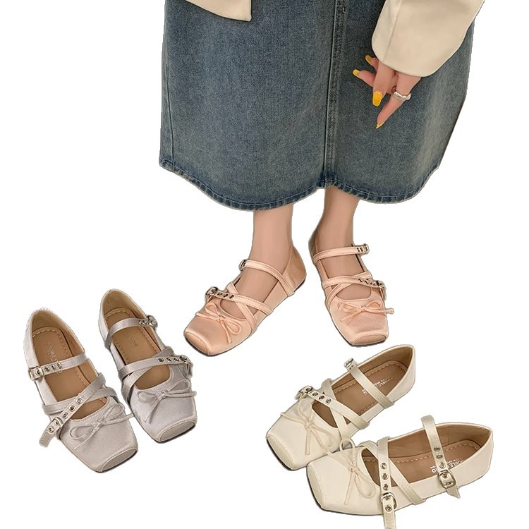 Женские туфли Мэри Джейн 2025: Новые летние ретро-балетки с квадратным носком во французском стиле, неглубокие, без застежек, с пряжкой