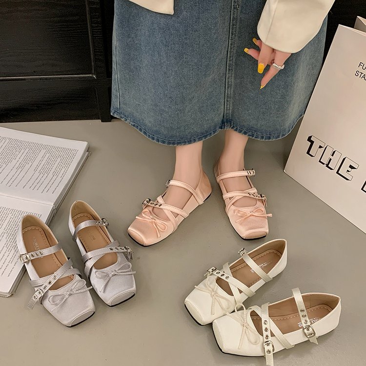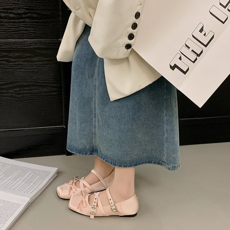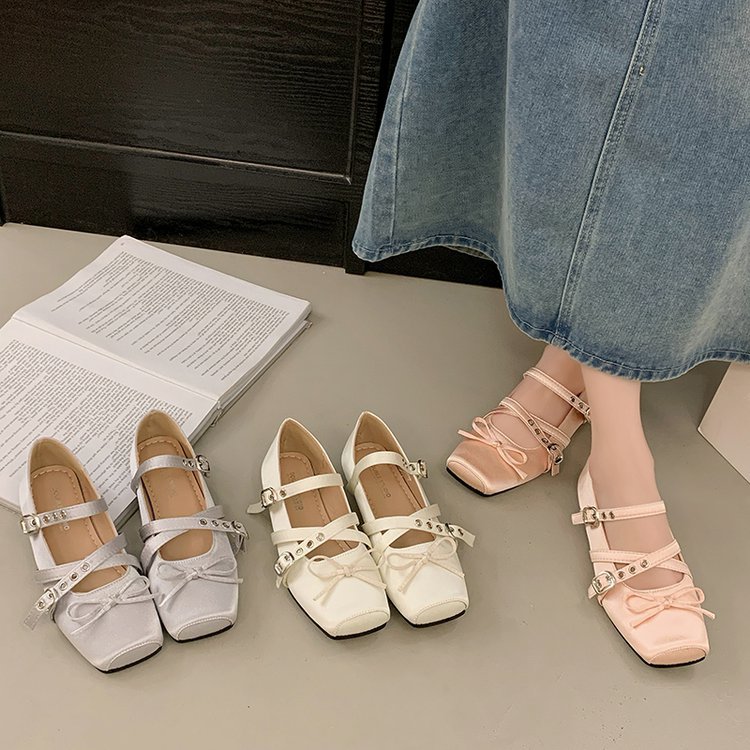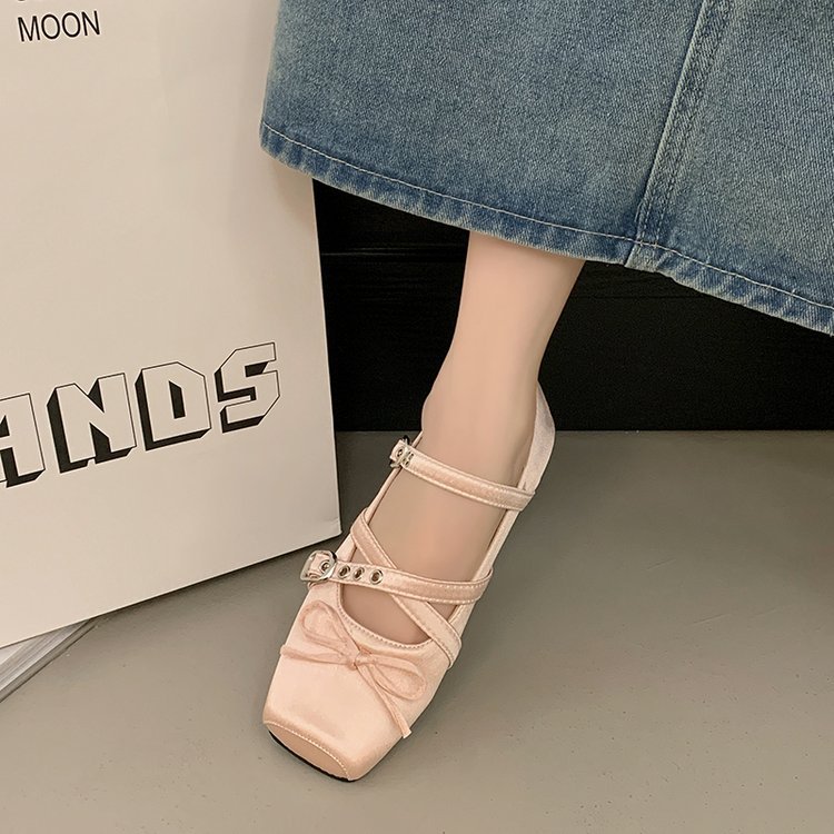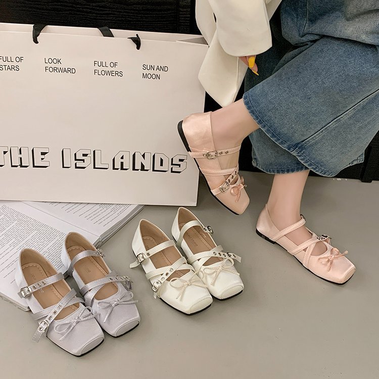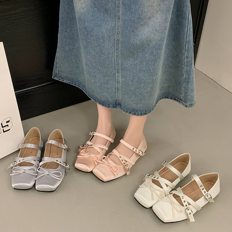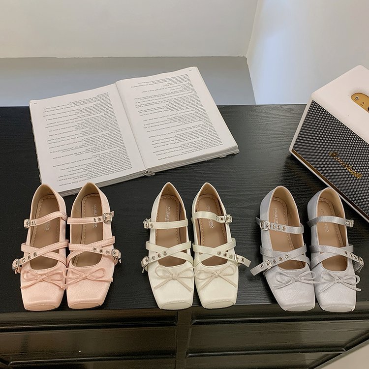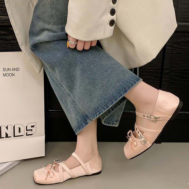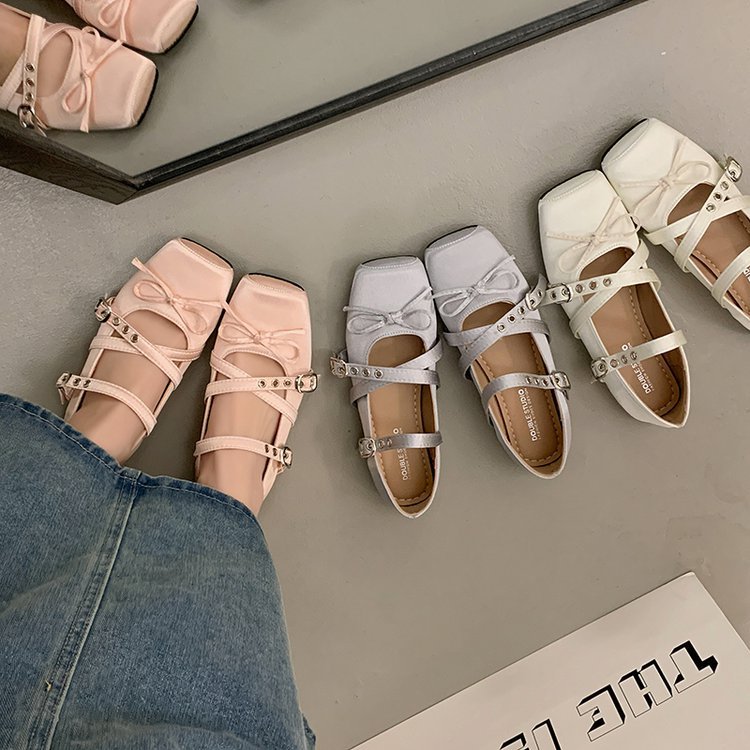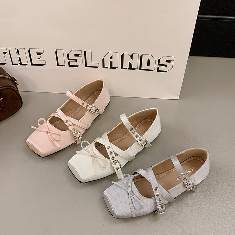 Женские туфли Мэри Джейн 2025: Новые летние ретро-балетки с квадратным носком во французском стиле, неглубокие, без застежек, с пряжкой