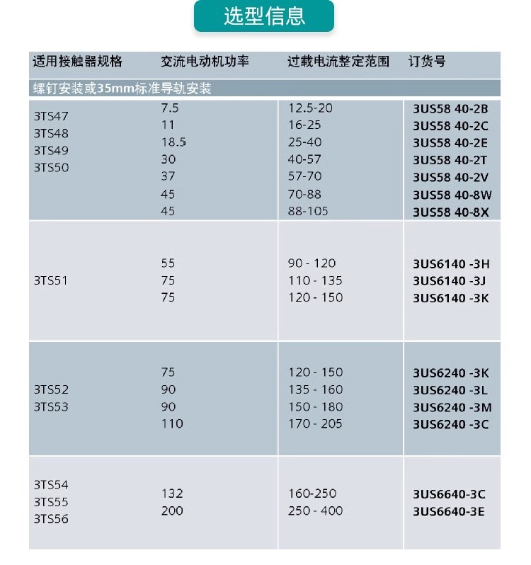 Siemens 3US5540-2C 3US5540-2N 3US5640-1A 3US5640-1C тепловое реле