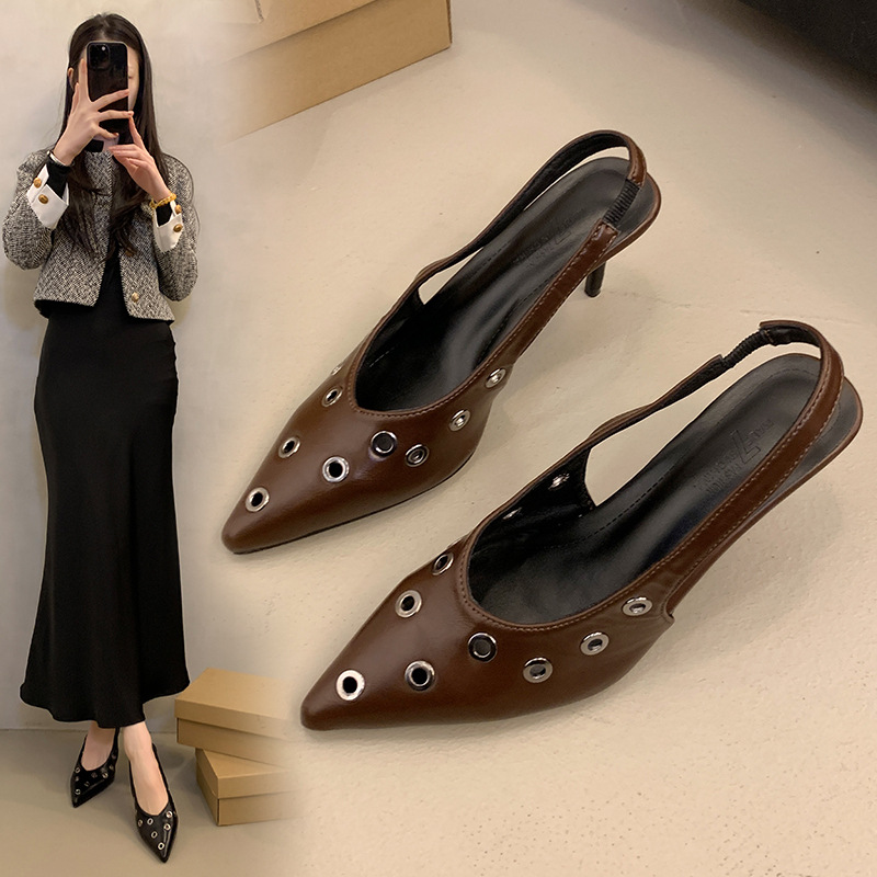 Элитная юбка во французском стиле, сандалии с носком, сказочные туфли, весенне-летние туфли на высоком каблуке с острым носком, вечерние туфли.