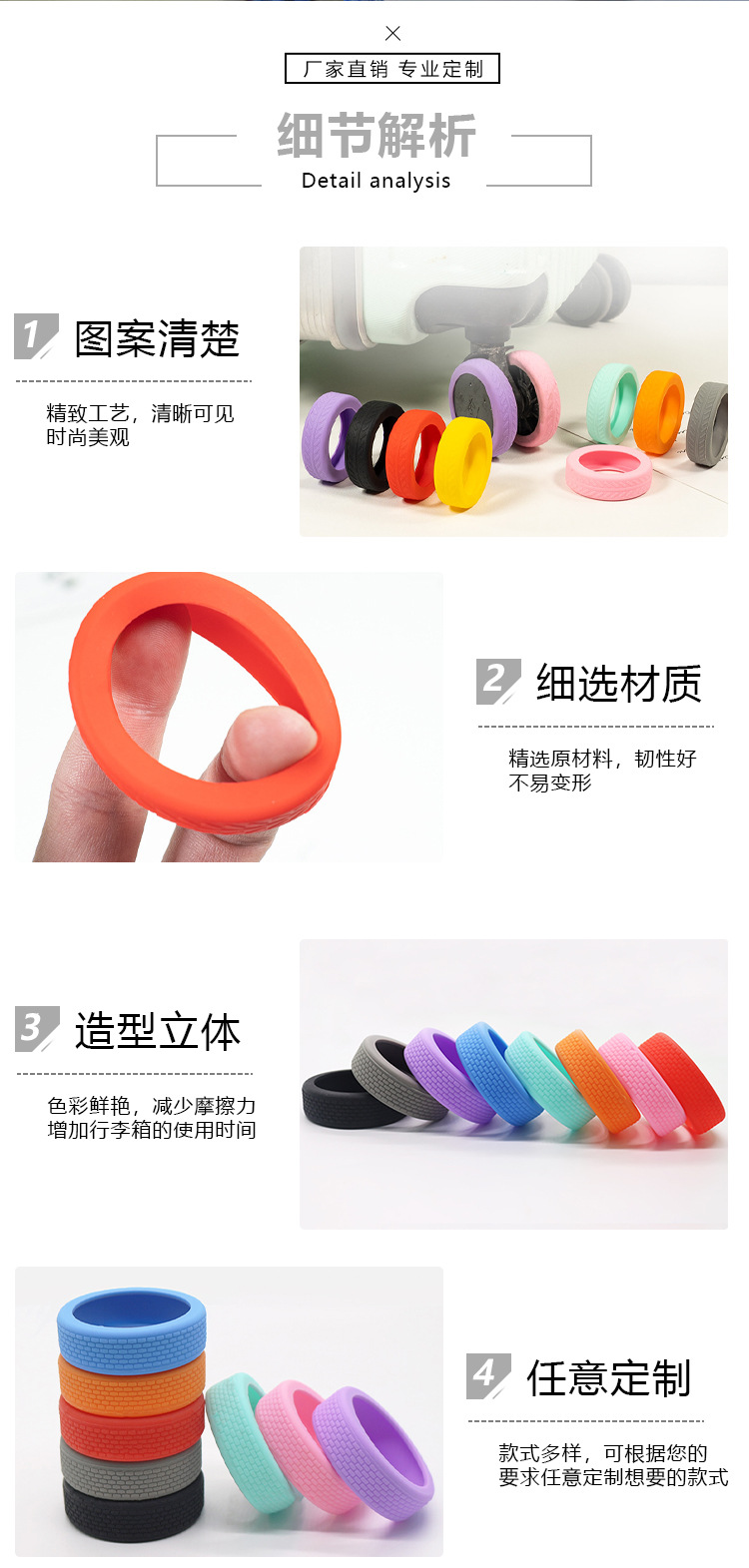 Индивидуальный силиконовый защитный чехол на колеса чемодана. Индивидуальный многоцветный и различные стили. Бесшумный и шумопоглощающий силиконовый защитный чехол.