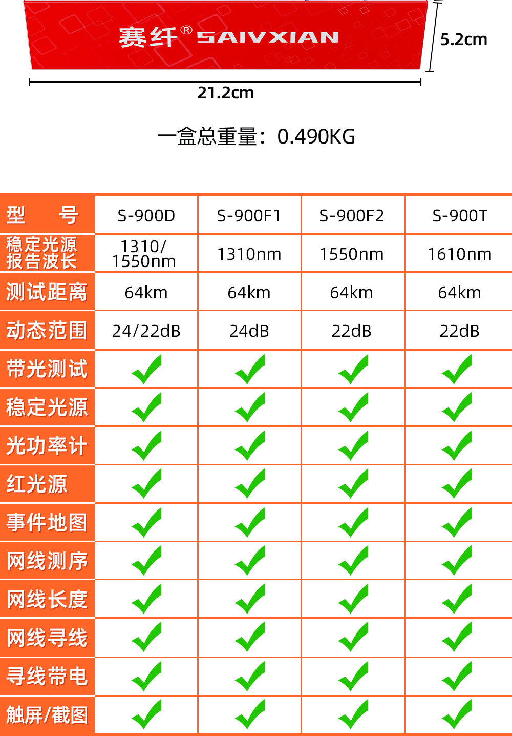 S-900F2 с одной длиной волны 1550 можно проверить с помощью света; S-900D с двойной длиной волны 1310/1550 невозможно проверить светом.