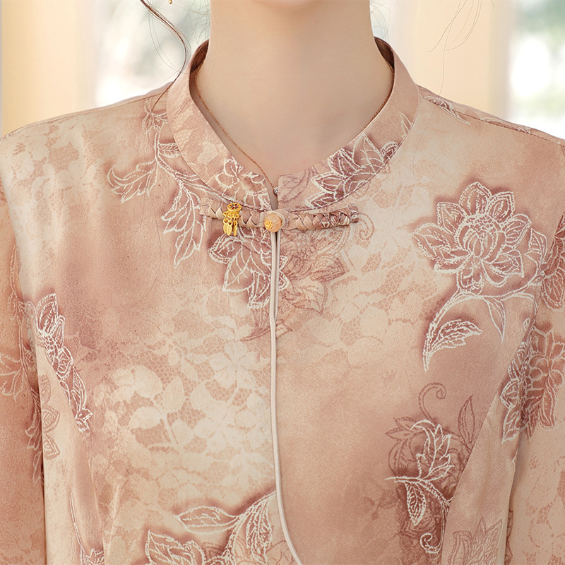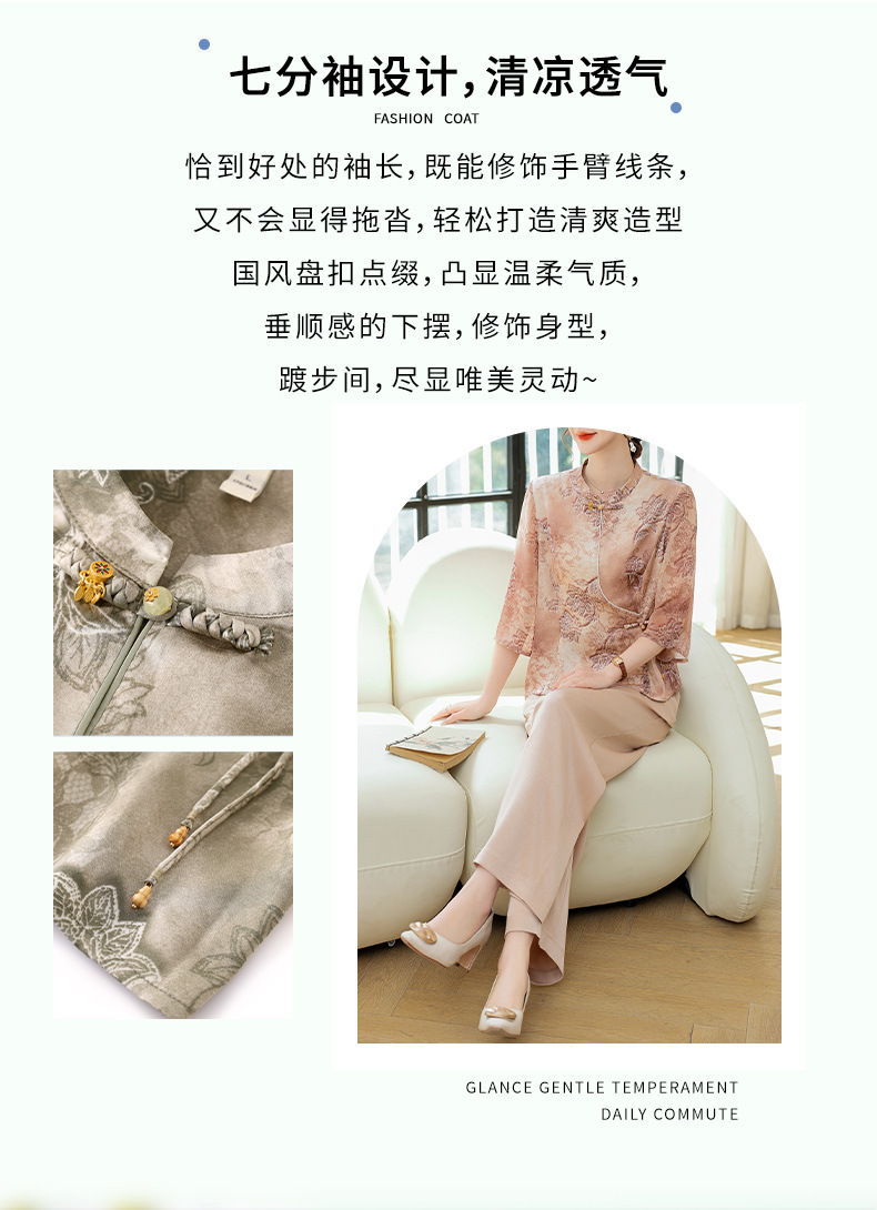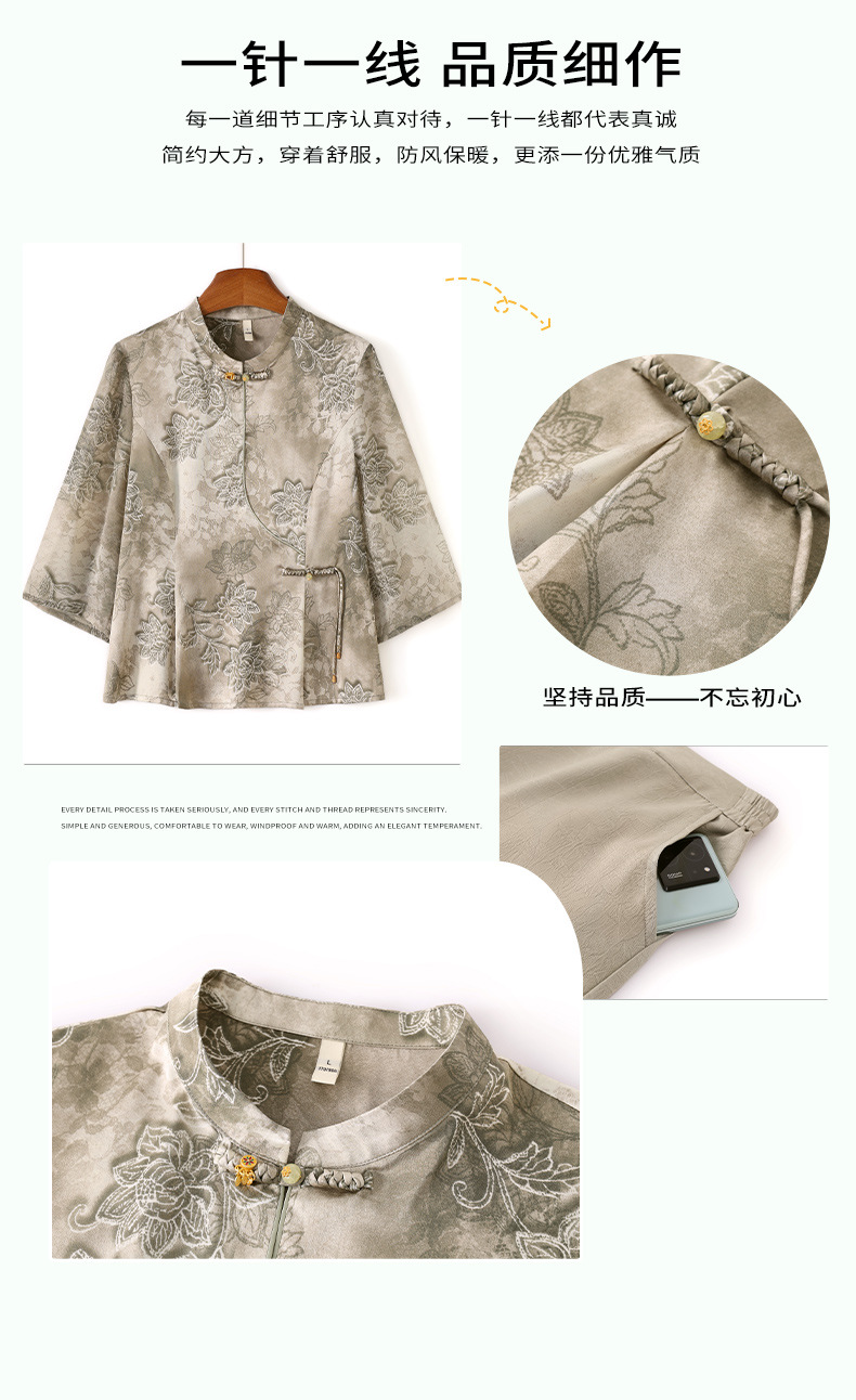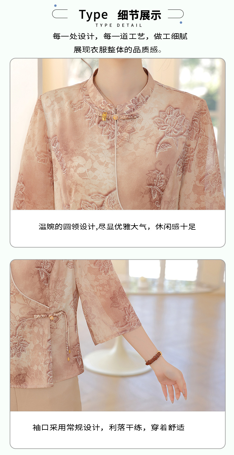 Летний костюм для мамы с цветущими цветами, новый комплект из двух предметов в национальном стиле в стиле шинуазри с тиснением и элегантной одеждой для мам среднего и пожилого возраста.