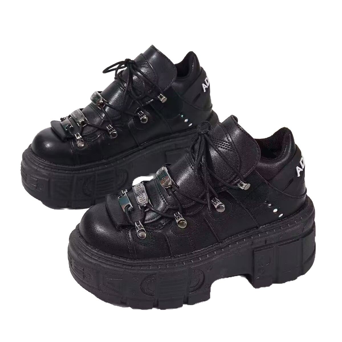 Трансграничная внешняя торговля большого размера, металлические женские туфли на высоком каблуке, маленькие кожаные туфли на толстой подошве с круглым носком, европейские и американские униформенные туфли на платформе с шнуровкой спереди
