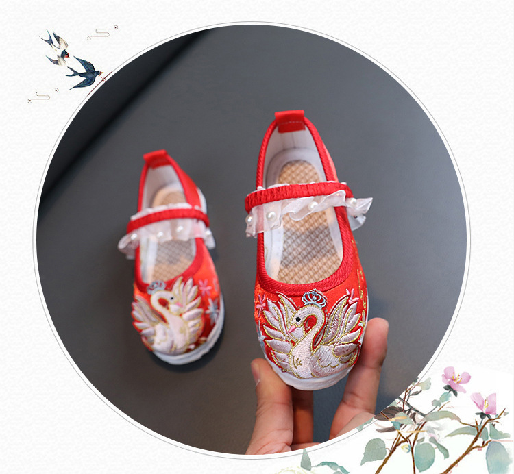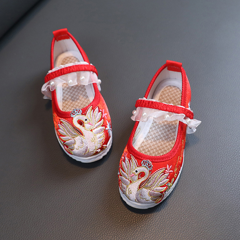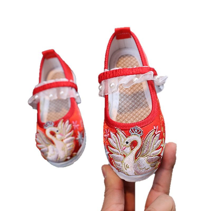 Детская обувь с вышивкой, костюмная обувь для выступлений, туфли династии Хань для девочек, туфли-чонсам в древнем стиле, тканевые туфли в китайском стиле в старом пекинском костюме.