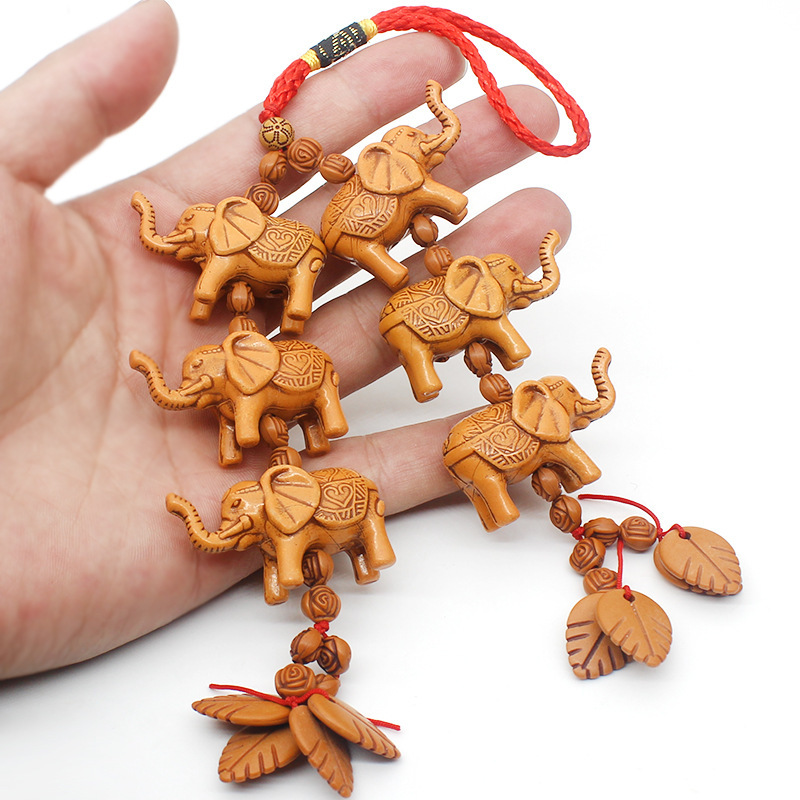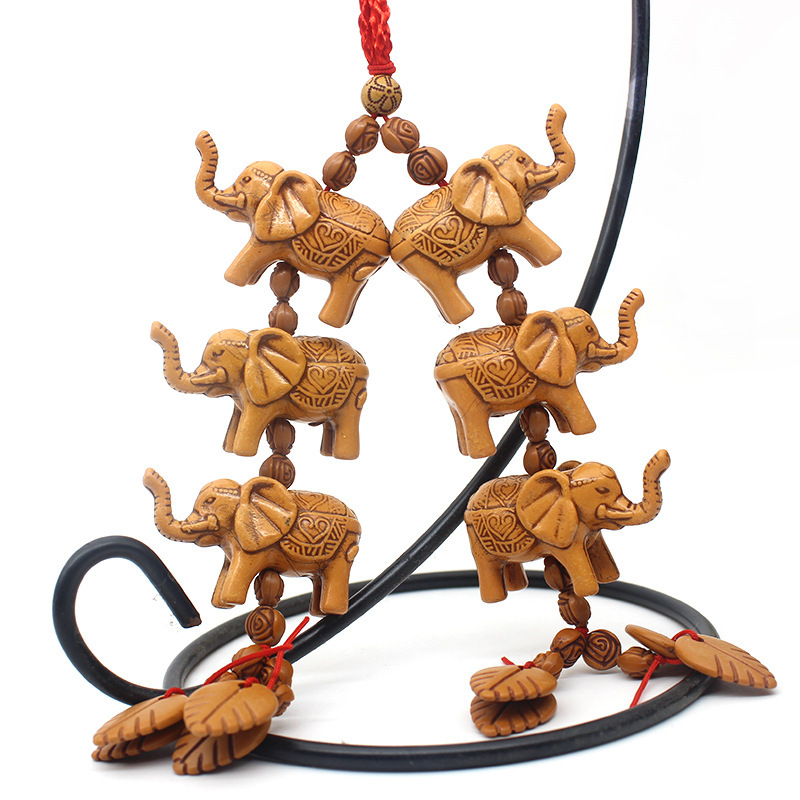 В наличии 3D подвеска для машины "Мир и процветание" в виде слона, креативное украшение с 6 резными слонами, подвесной декор для автомобиля, оптовая продажа от производителя.