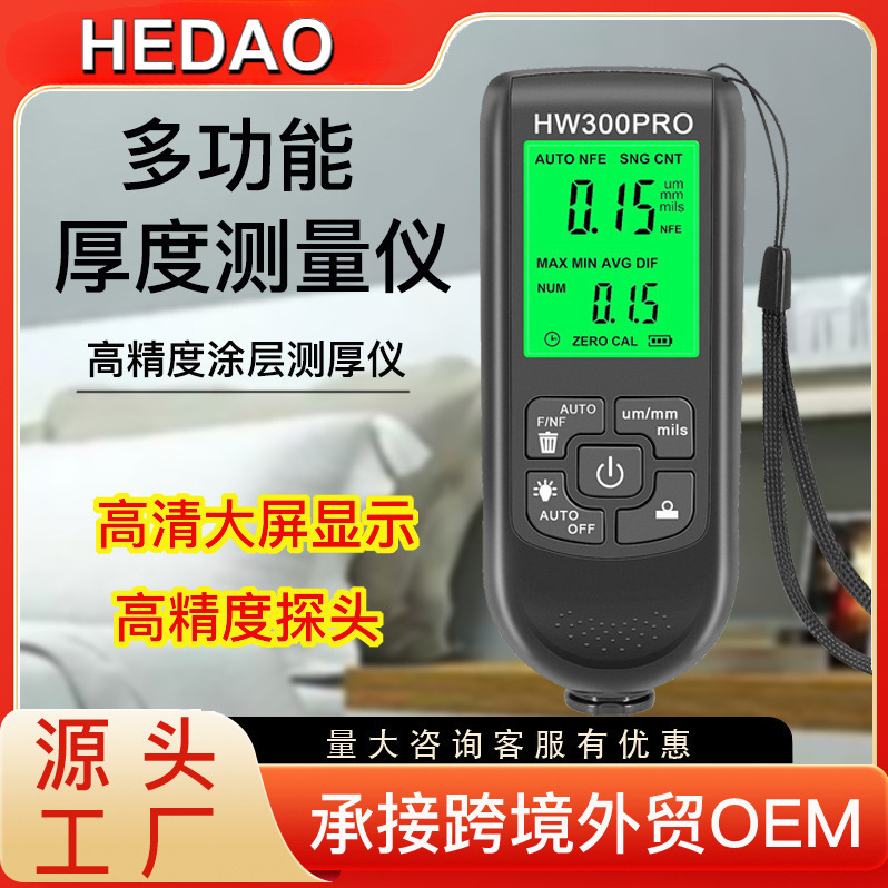 Индивидуальный высокоточный толщиномер покрытия HW-300PRO, противоскользящий измеритель толщины пленки краски, толщиномер, тестер толщины