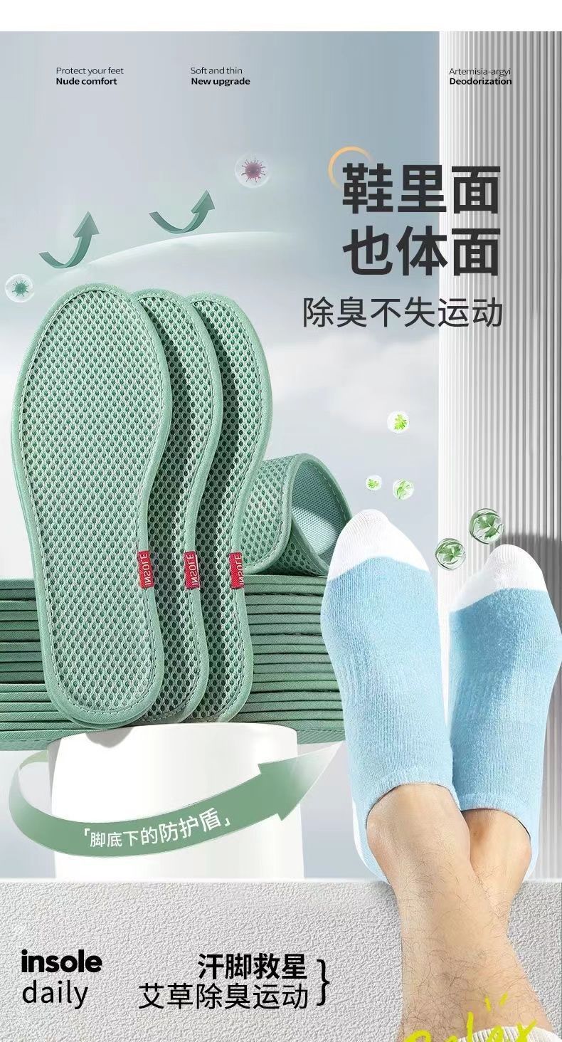 Стельки мужские, стельки впитывающие пот и дезодорирующие женские, сабо, летние стельки, мягкая подошва, сухие, дышащие и удобные сетчатые стельки.