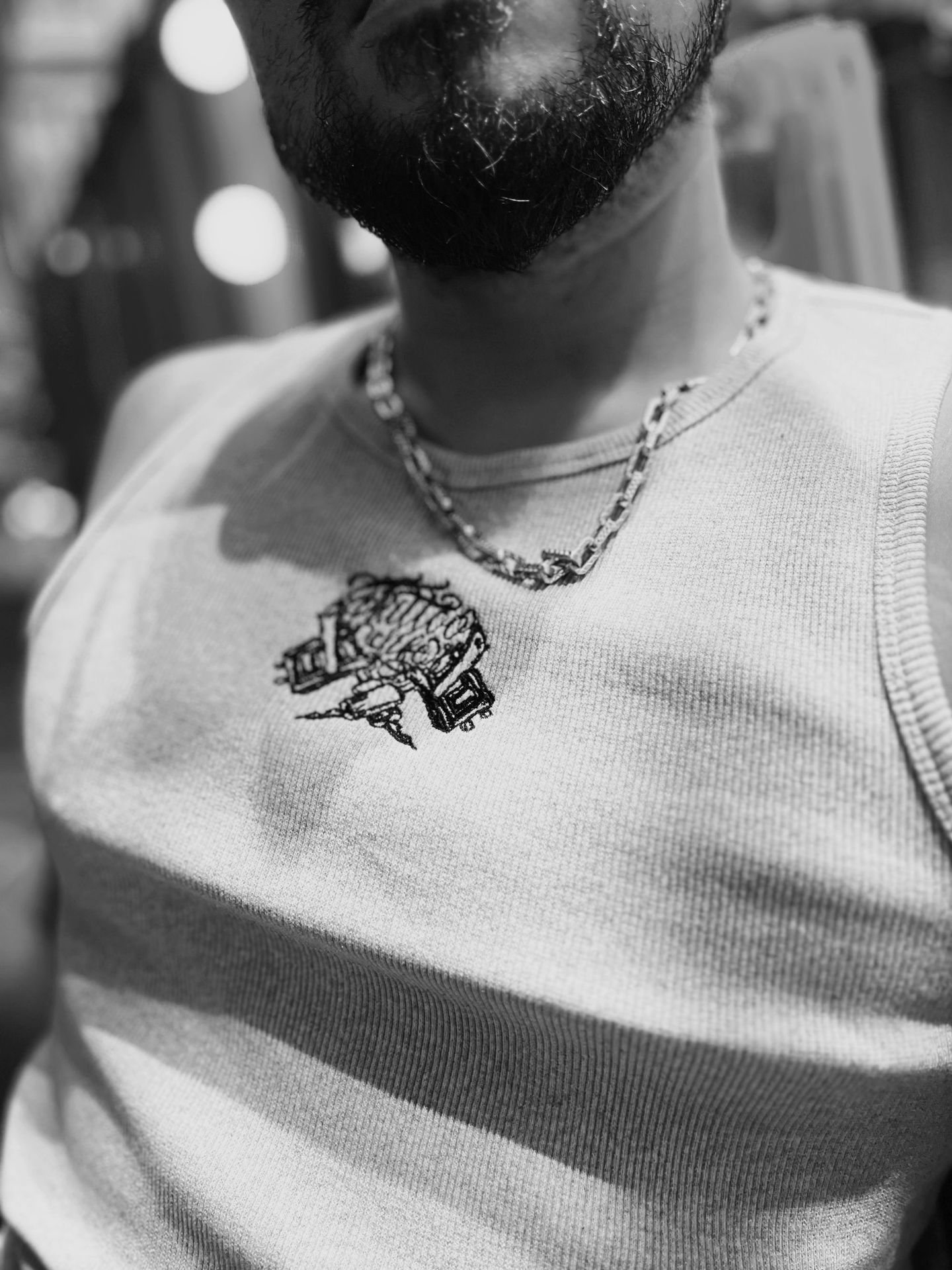 Версия США тяжелая вышивка с высокой пулей 2*2 резьбы 380 г нижняя плотная жилет фитнес TATTOO Цветок Chcano
