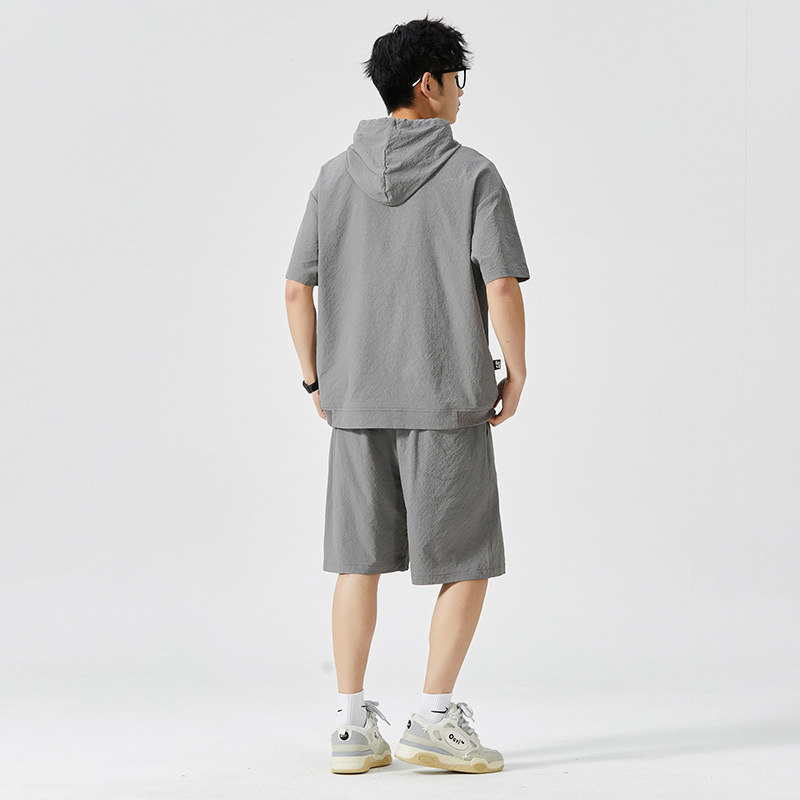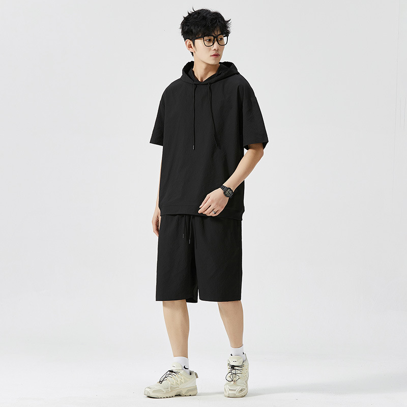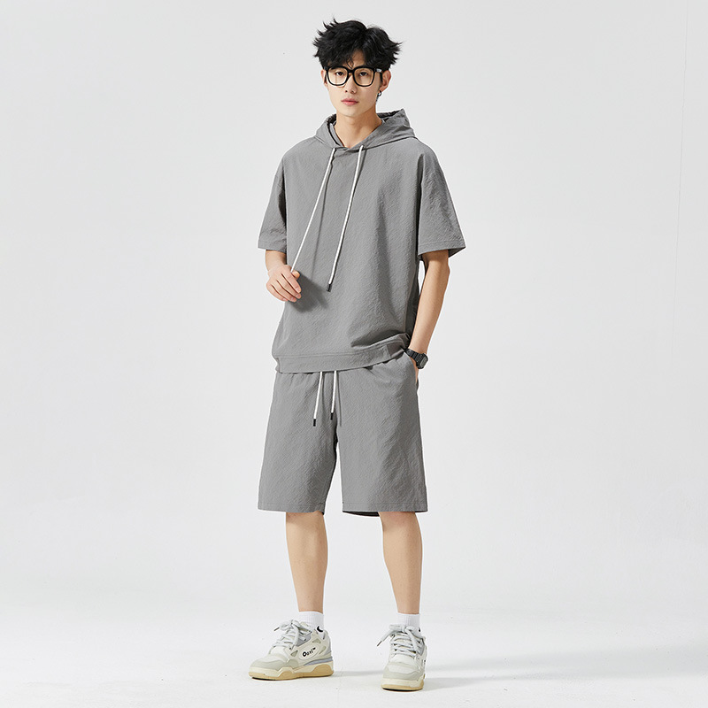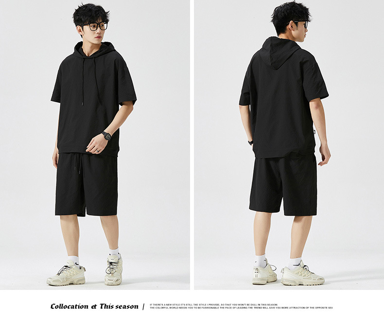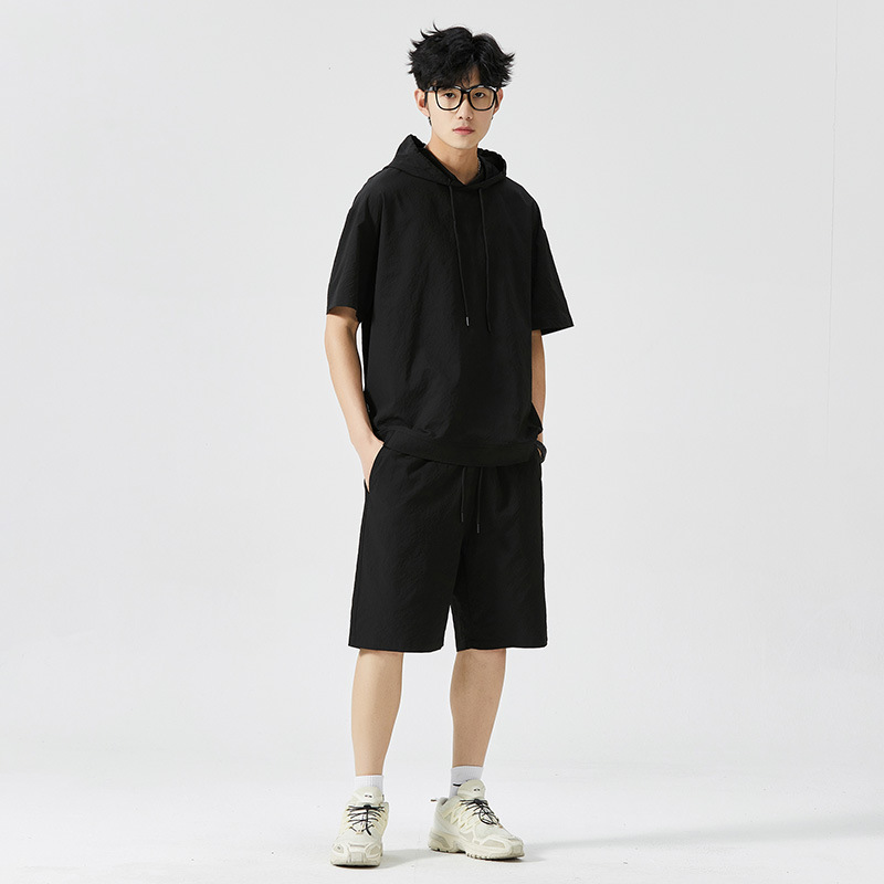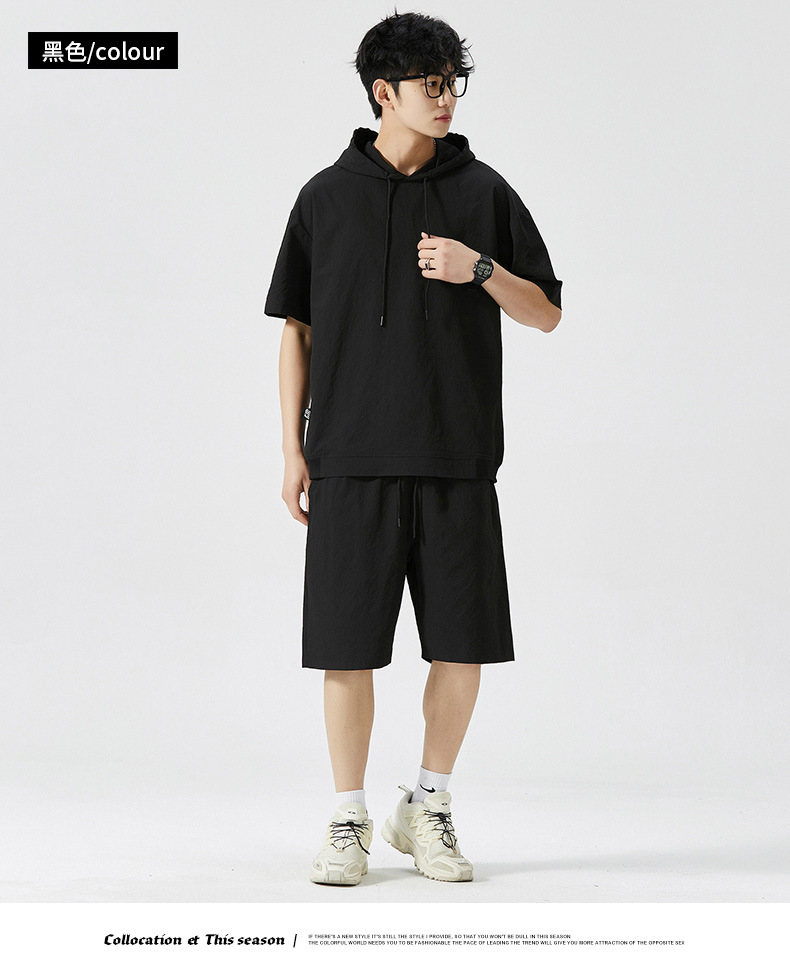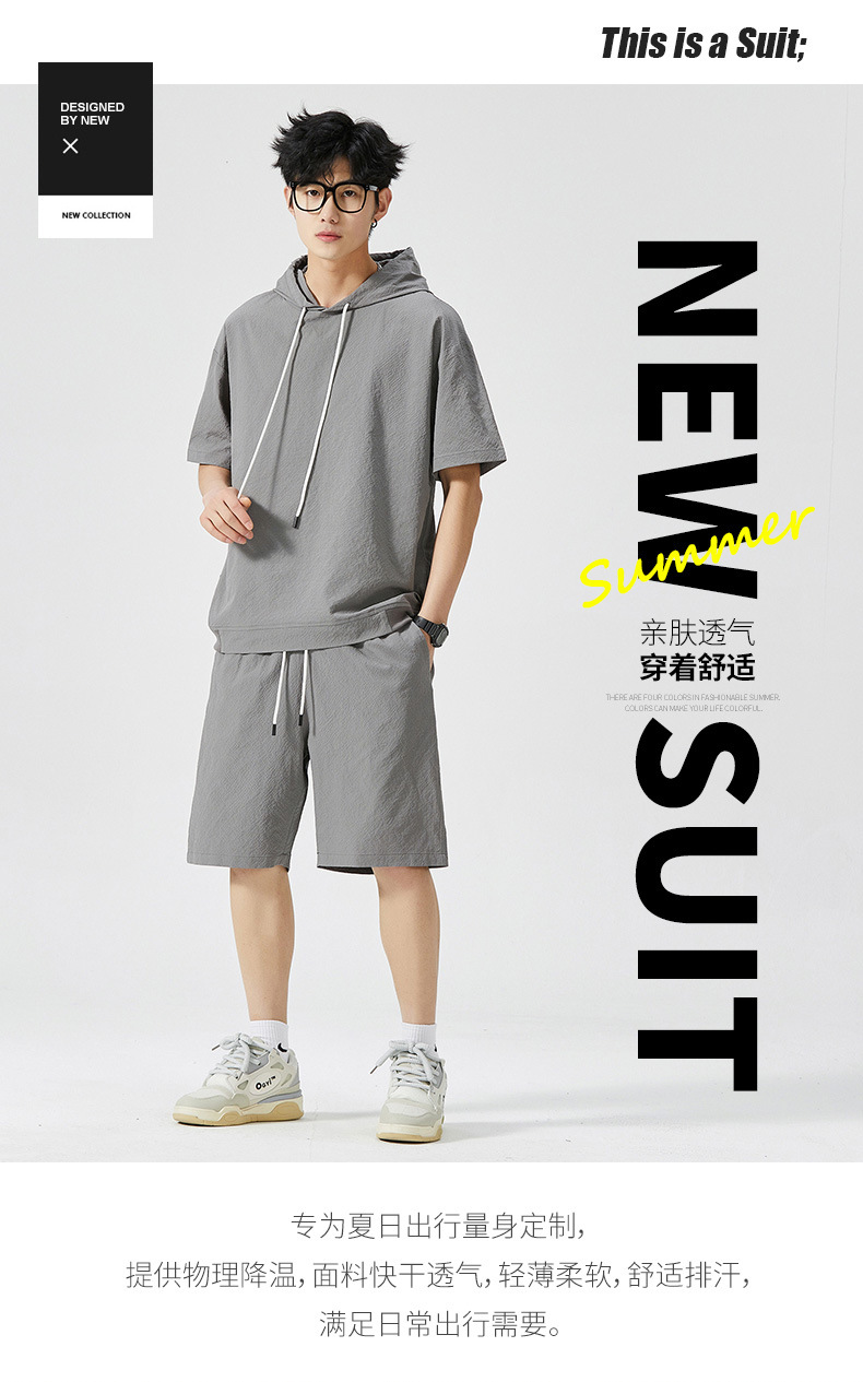 Мужской спортивный костюм с капюшоном, короткий рукав, футболка с коротким рукавом для старшеклассников, летняя модель 2025 года, новый тренд