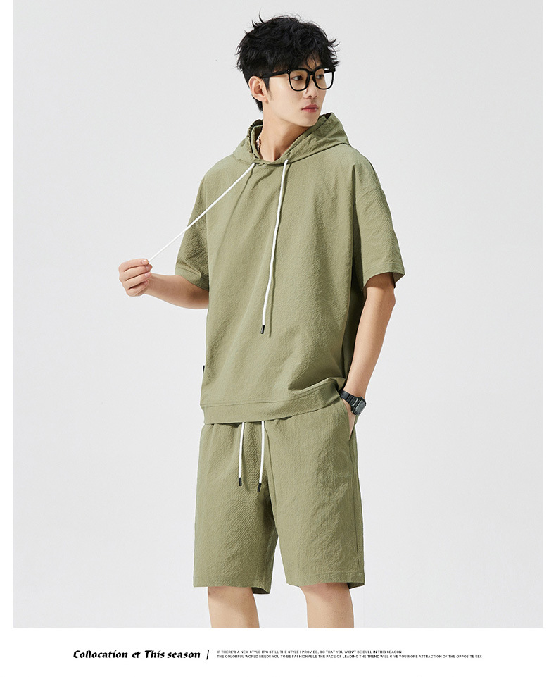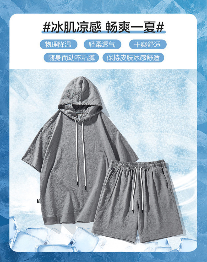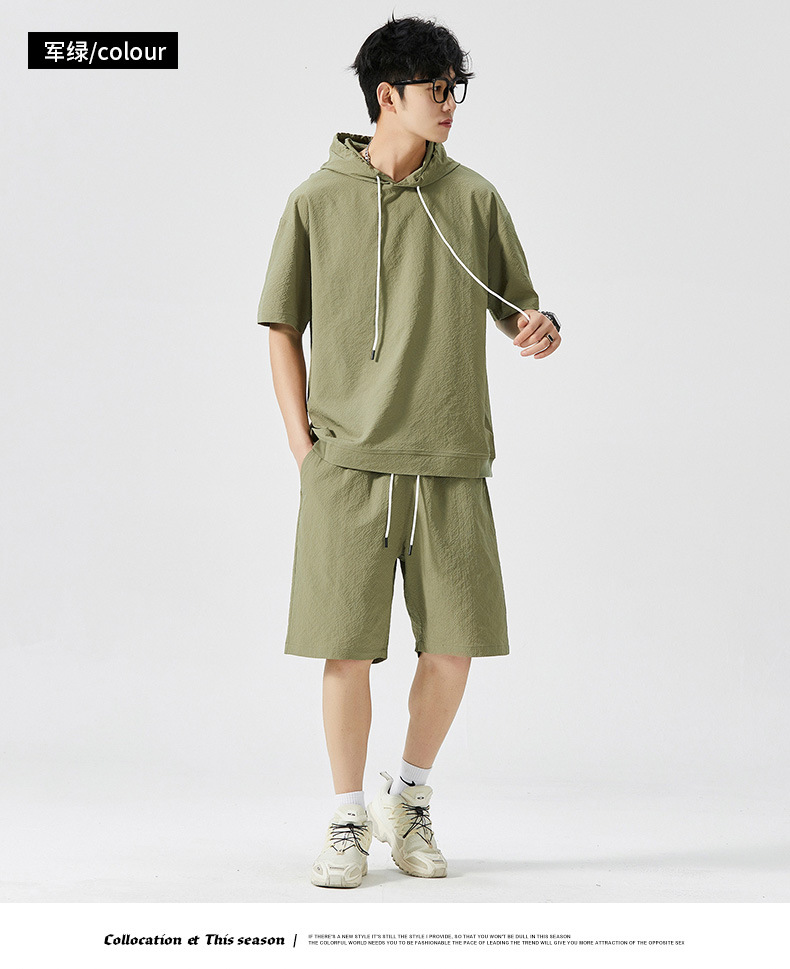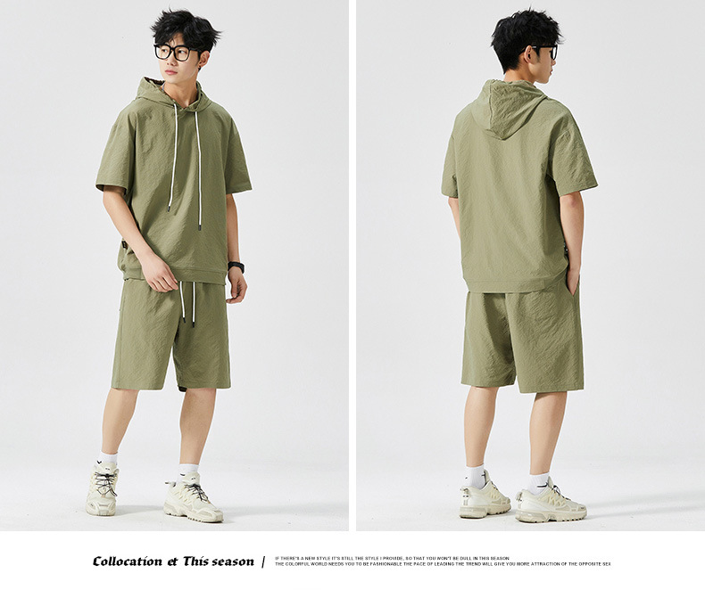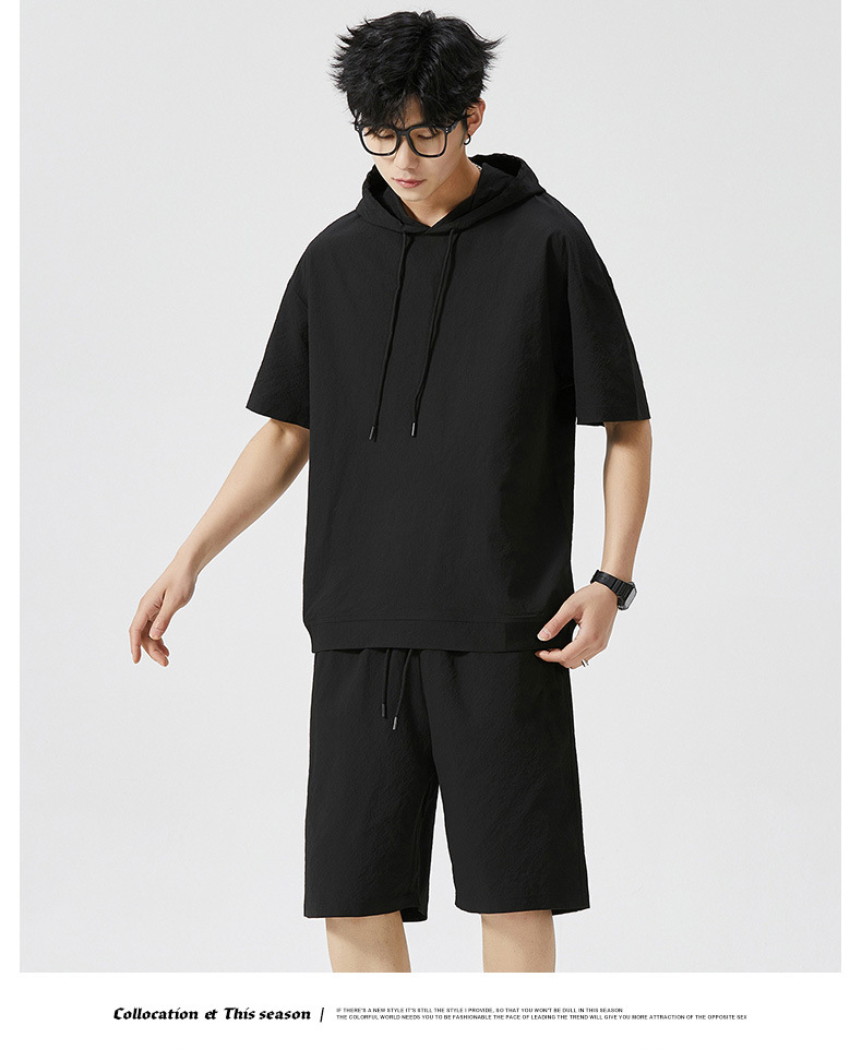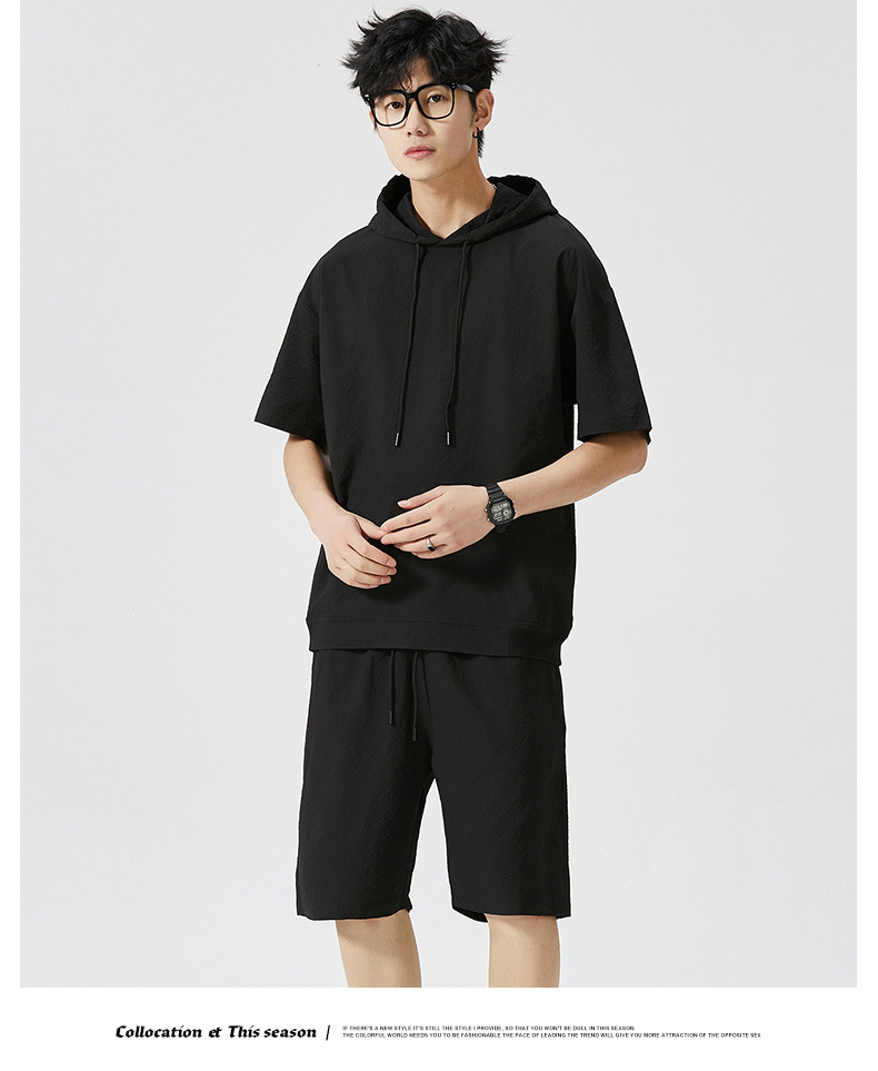 Мужской спортивный костюм с капюшоном, короткий рукав, футболка с коротким рукавом для старшеклассников, летняя модель 2025 года, новый тренд