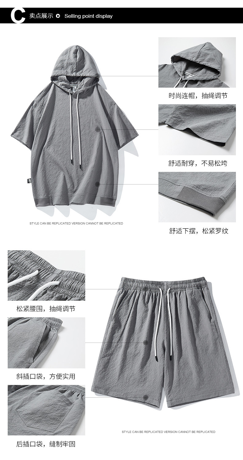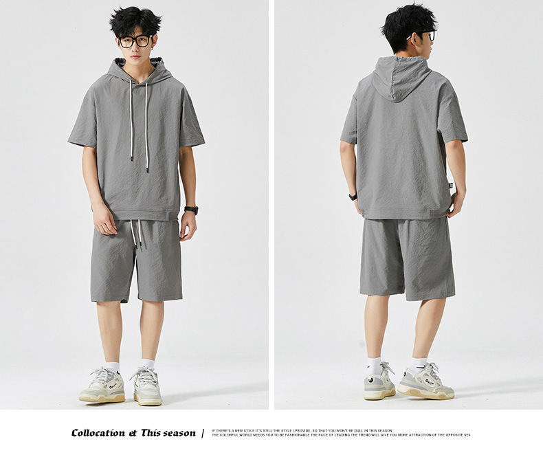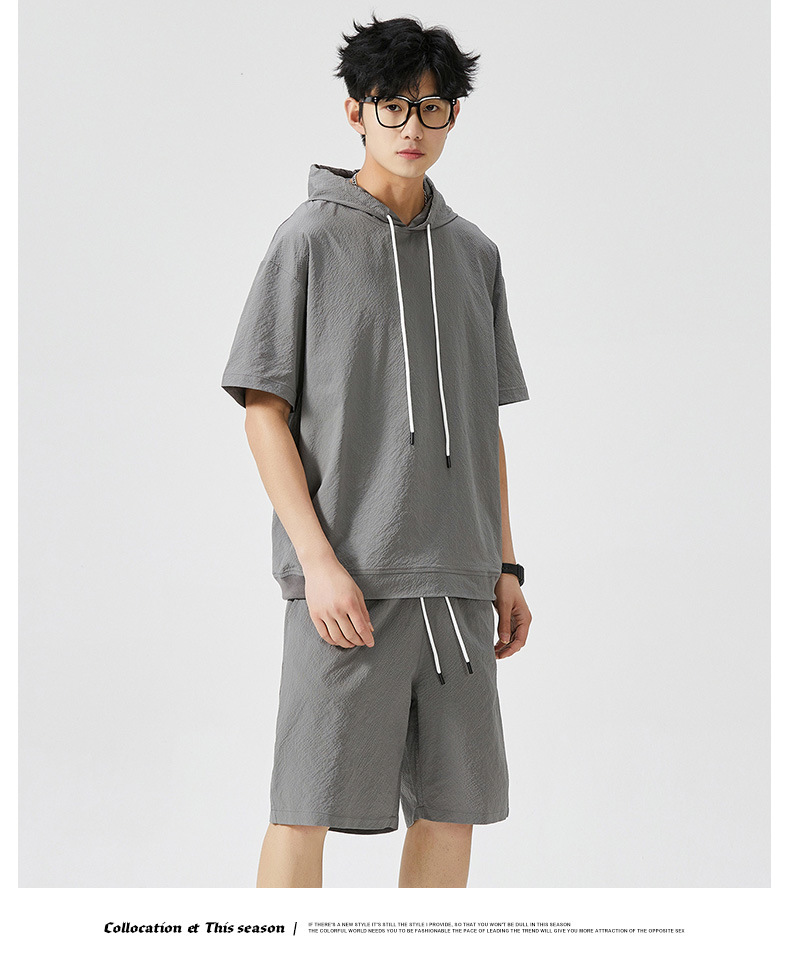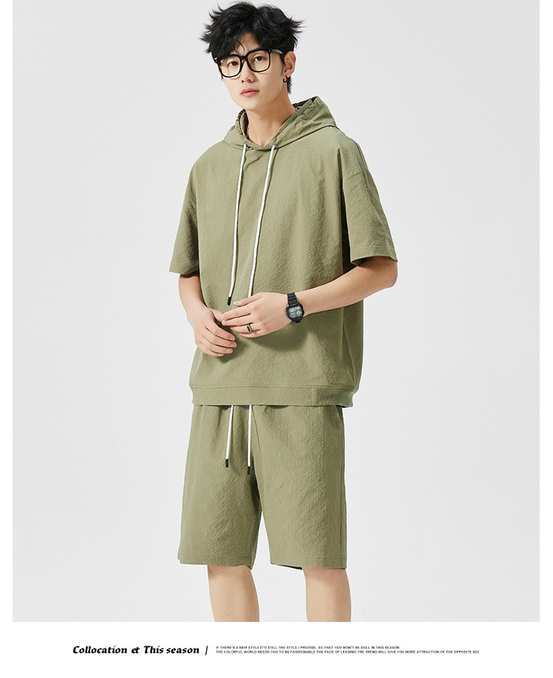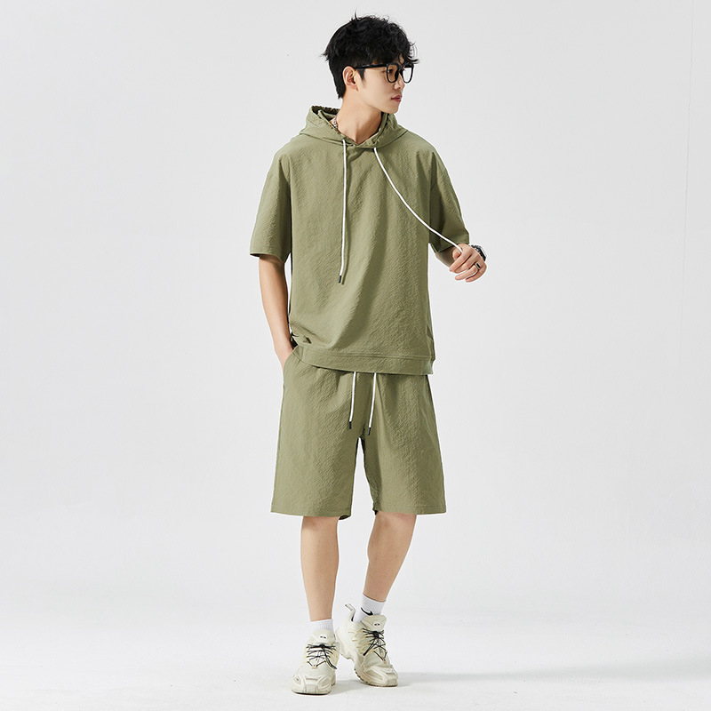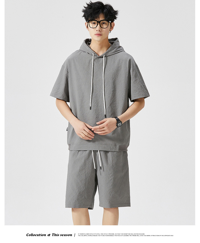 Мужской спортивный костюм с капюшоном, короткий рукав, футболка с коротким рукавом для старшеклассников, летняя модель 2025 года, новый тренд
