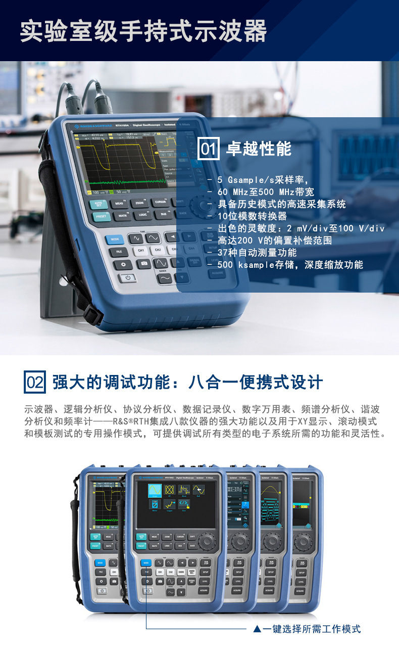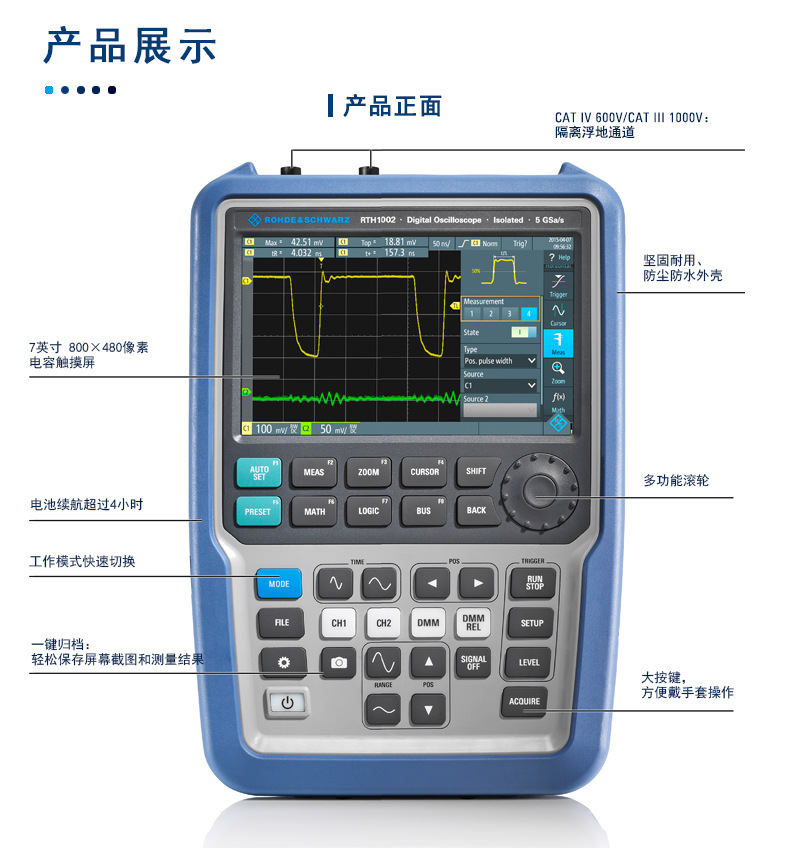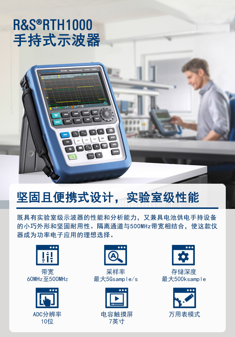 Rohde & Schwarz RS RTH1004 портативный осциллограф, 4 канала, полоса пропускания 500 МГц, частота дискретизации 5 ГГц, промышленный