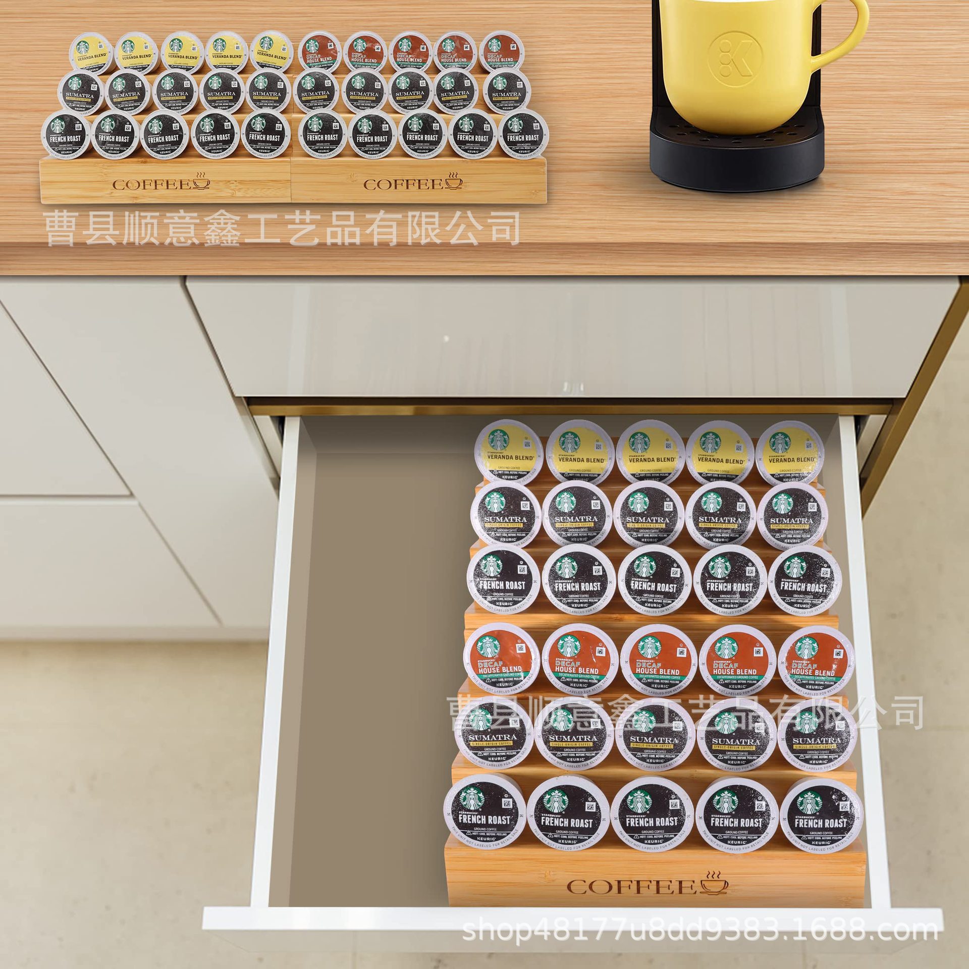Бамбуковая подставка для кофейных капсул, полка для чайной комнаты, барная стойка, многоярусная полка для хранения, ступенчатая деревянная полка для организации пространства