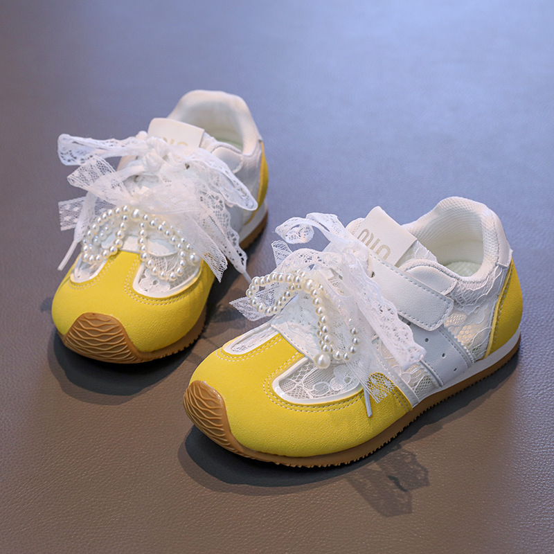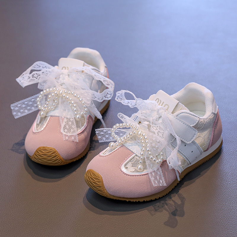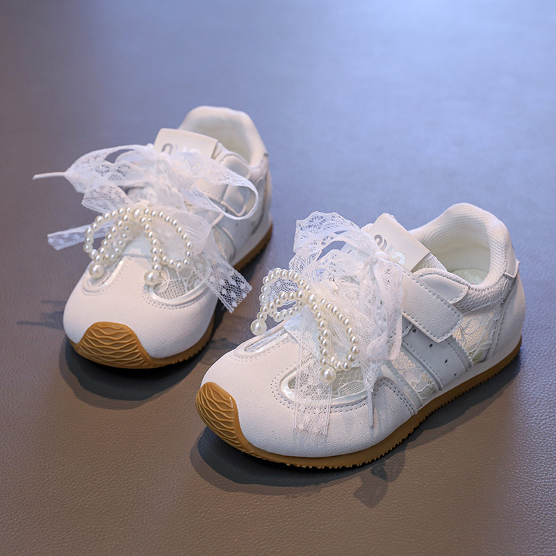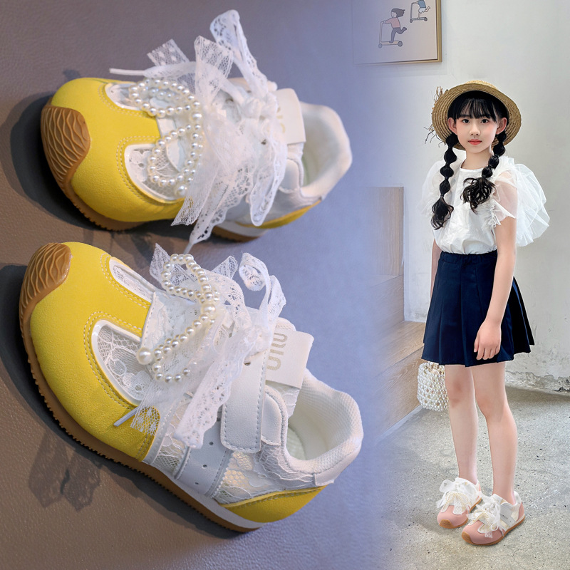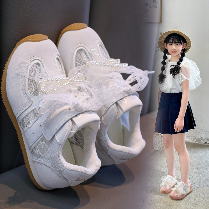 Кружевная обувь для девочек 2025 летний новый стиль маленькая девочка дикая обувь арганд сетка повседневная обувь кроссовки