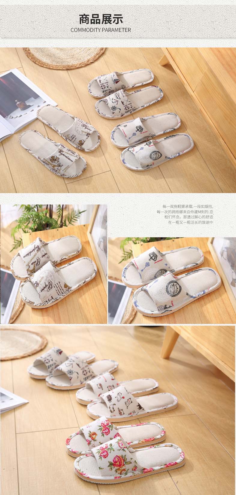 Домашние льняные тапочки в стиле ретро, однотонные, для отеля B&B, из грубой ткани, для мужчин и женщин, для пар, простые, для жилых помещений, для пола EV