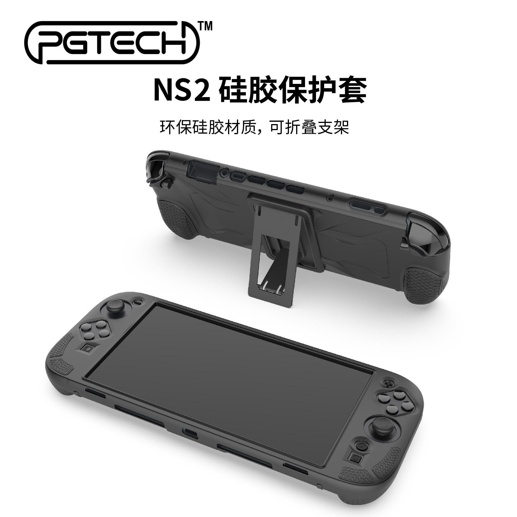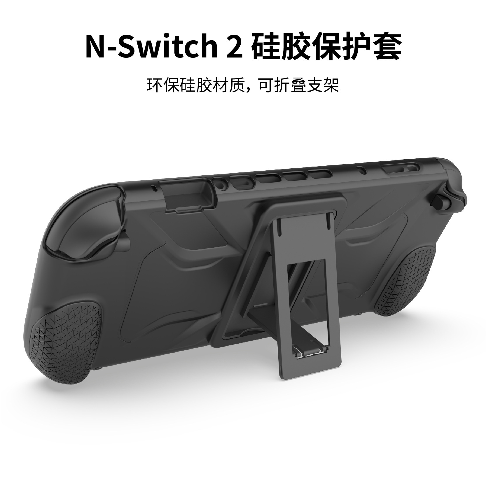 Силиконовый чехол для игровой консоли Switch2 с кронштейном. Силиконовый противоскользящий универсальный защитный чехол для консоли Switch2.