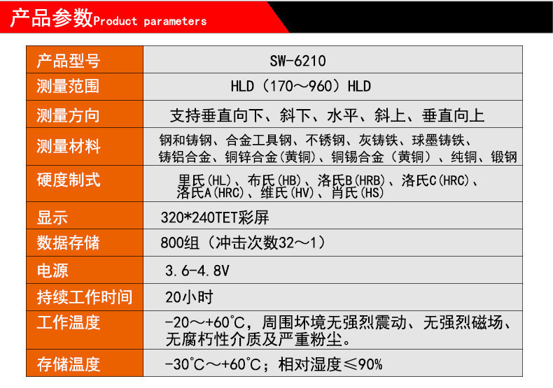 Shendawei SW-6210A Твердомер по Леебу, высокоточный твердомер, портативный твердомер для металла и стали