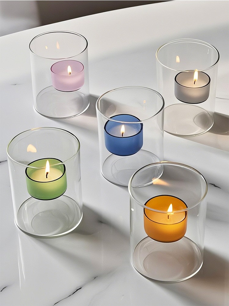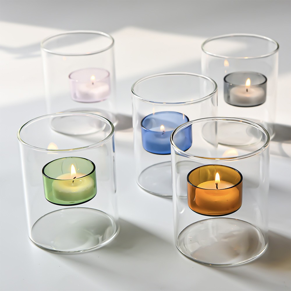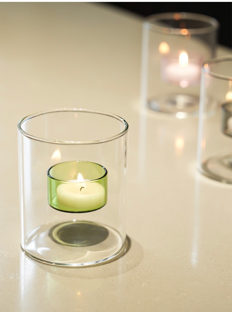 Креативная стеклянная чайная свеча в европейском стиле, центральный элемент, цилиндрический прозрачный подсвечник для чайной свечи, подходит для украшения центрального элемента стола