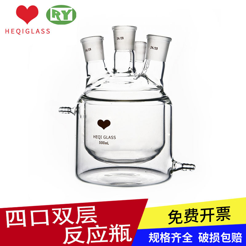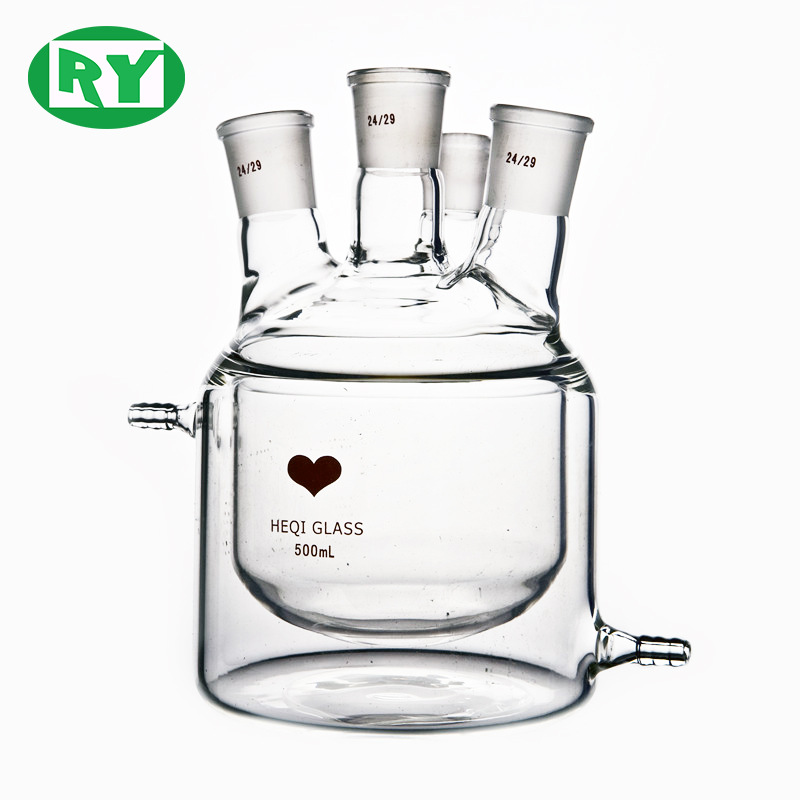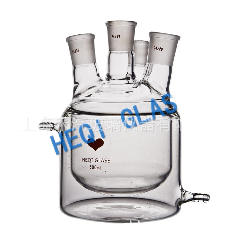 Шанхай Heqi Power Factory Высокое Боросиликатное 3,3 Четырехпортовая двухслойная реакционная бутылка Корпус Четырехпортового реакционного чайника Корпус Четырехпортовая бутылка