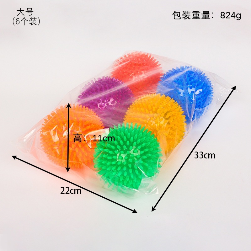 синий шипованный мяч; зеленый шипованный шар; Оранжевый шарик с шипами; розовый шарик с шипами; красный шар с шипами; В упаковке 6 штук разных цветов.; Смешанный цветной пакет из 3 шт.