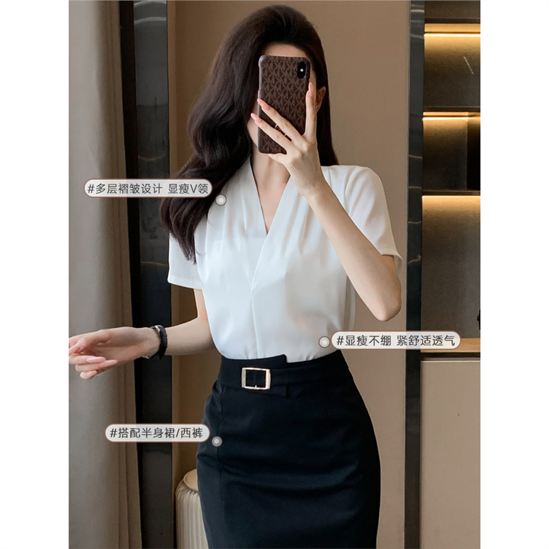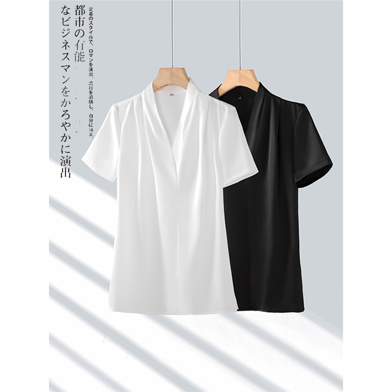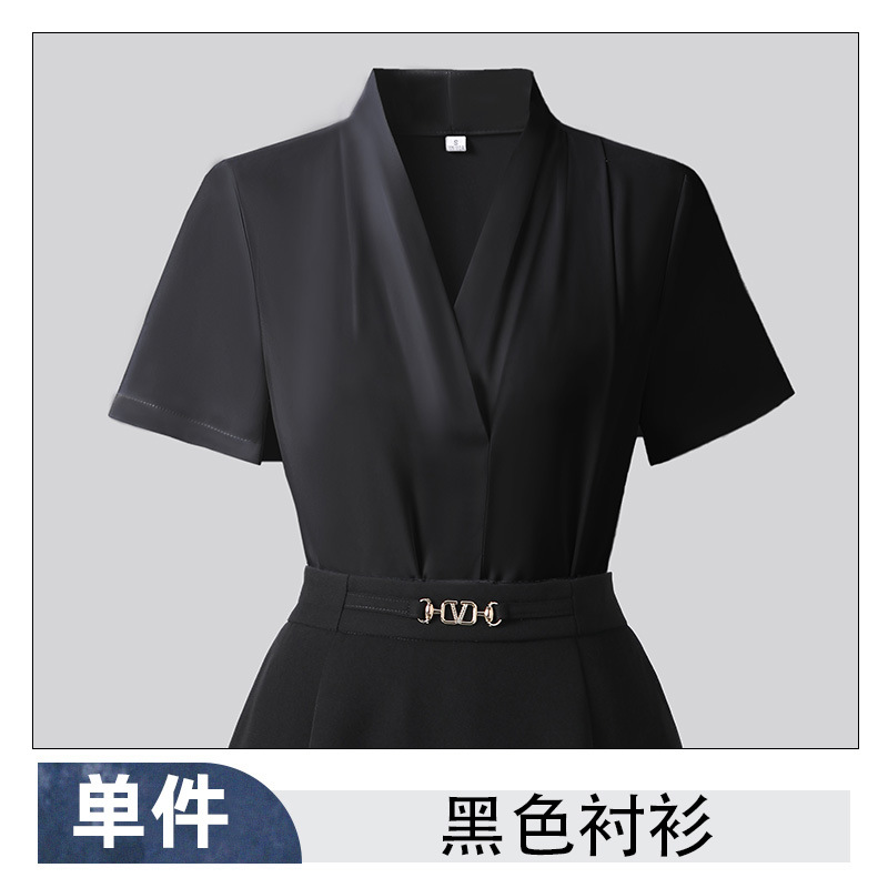 Оптовая цена бесплатная доставка Черная рубашка с V-образным вырезом женская летняя короткая рубашка с тонкими рукавами интервью на рабочем месте