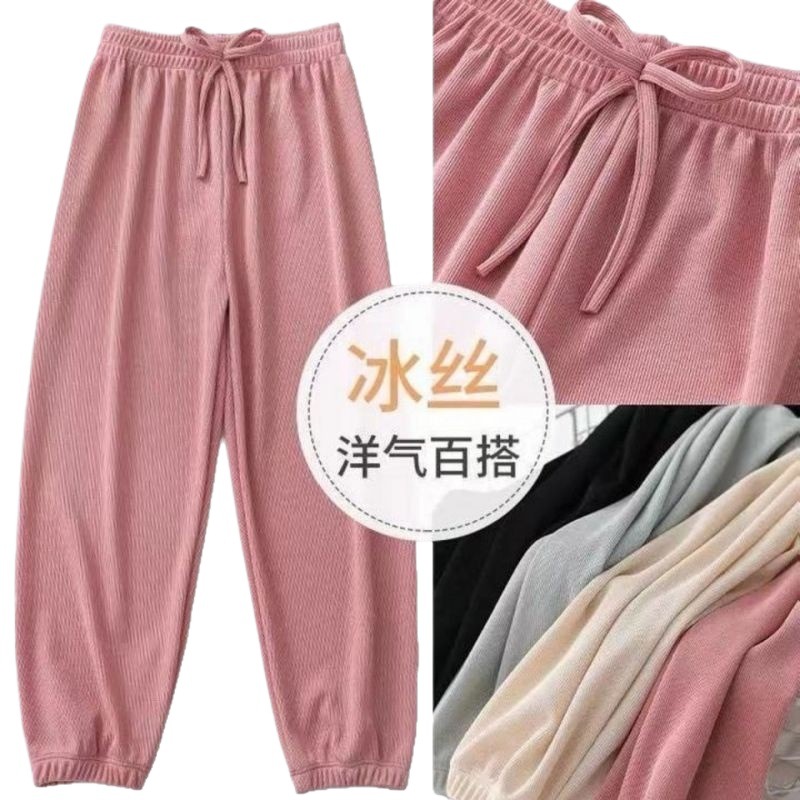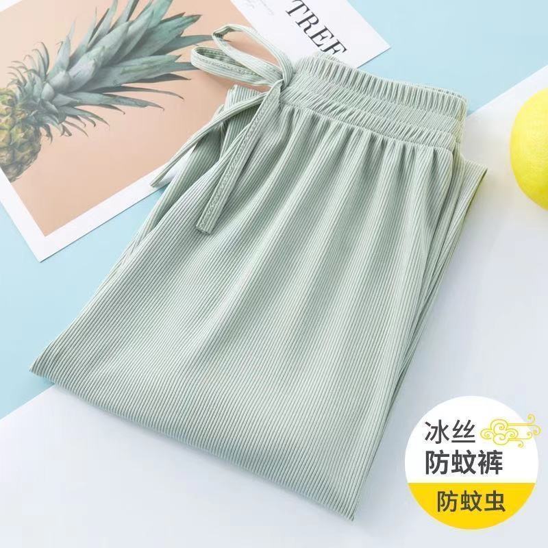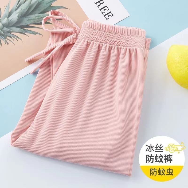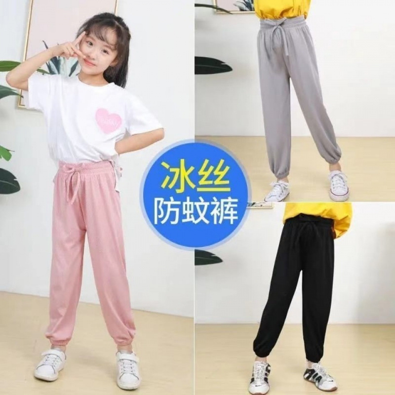 Детские штаны для девочек, летние тонкие шелковые штаны с защитой от комаров, свободные повседневные штаны-фонарики в корейском стиле для девочек, длинные штаны