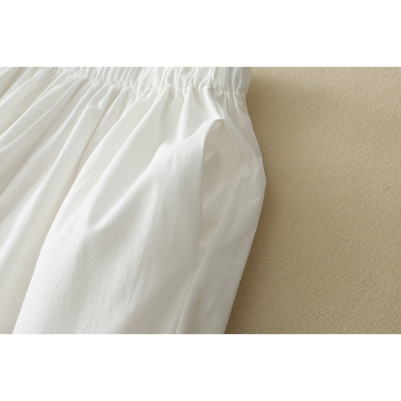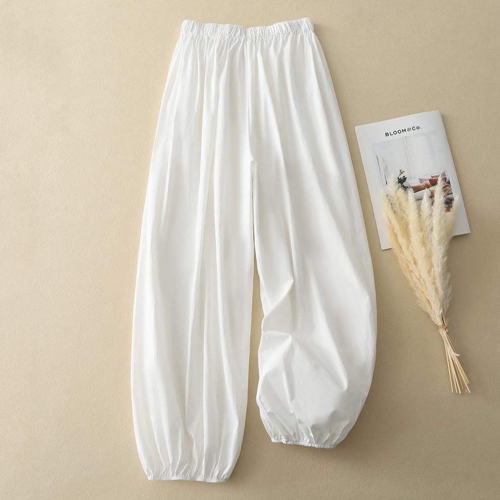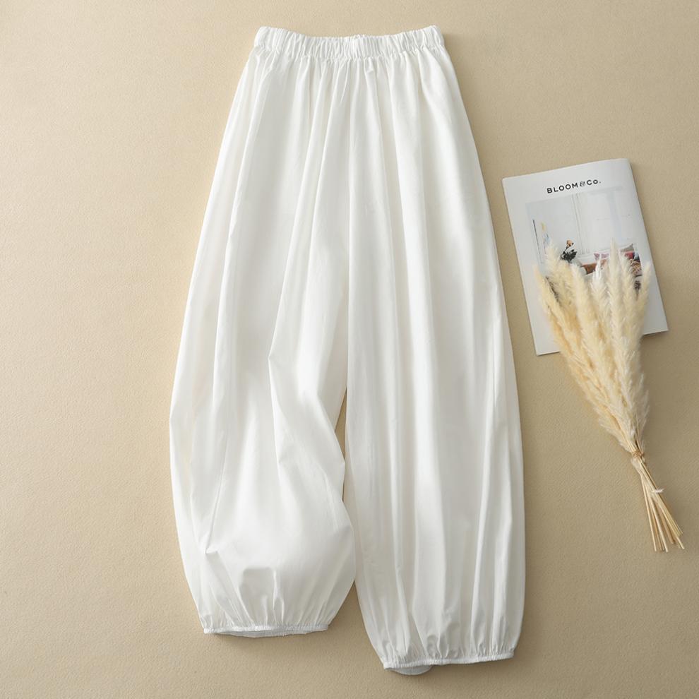 Реальный снимок свободных брюк-шаровар из чистого хлопка с широкими штанинами и белой вуалью для женщин, лето 2025, силуэт шароваров