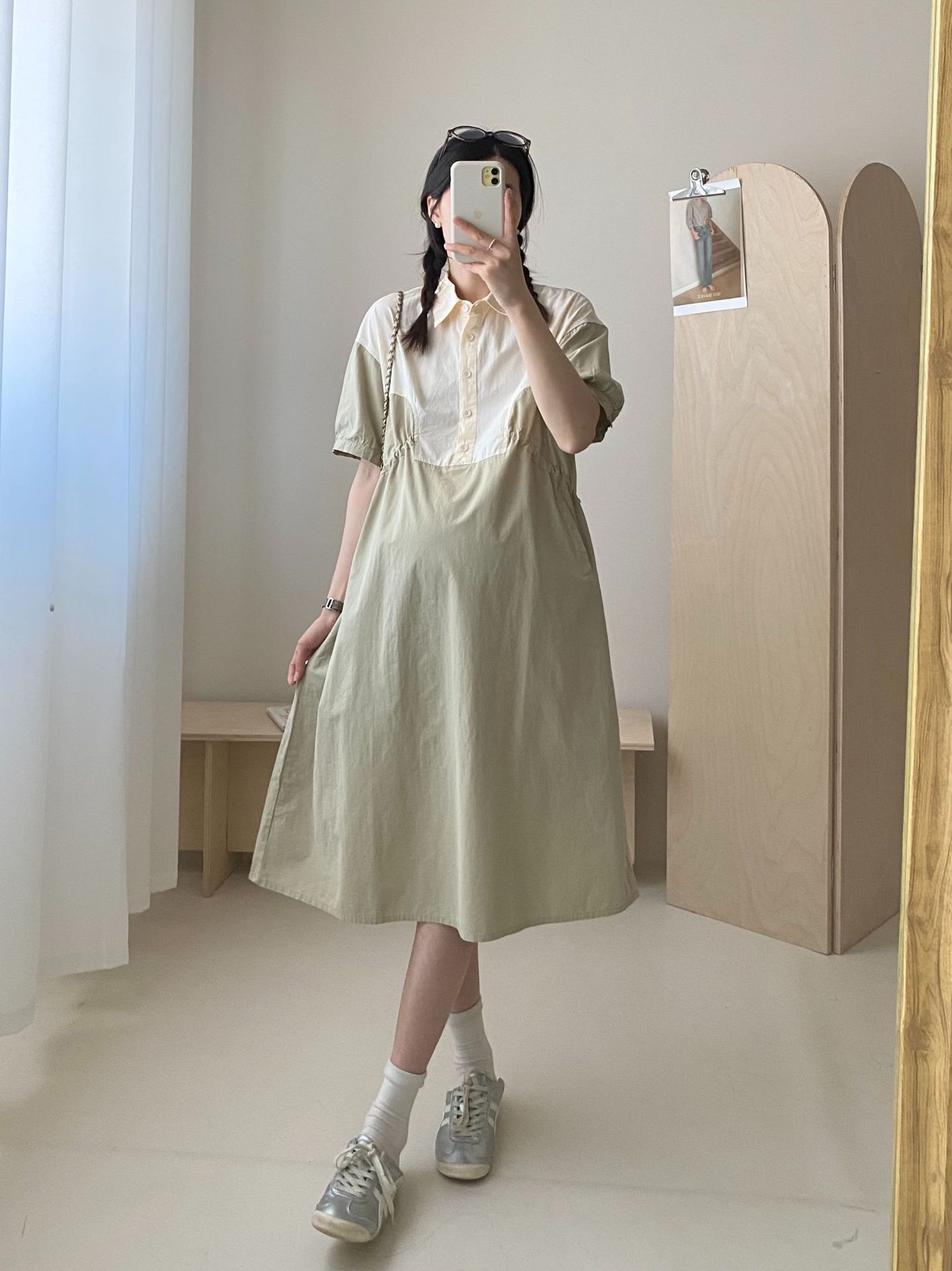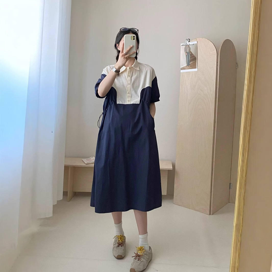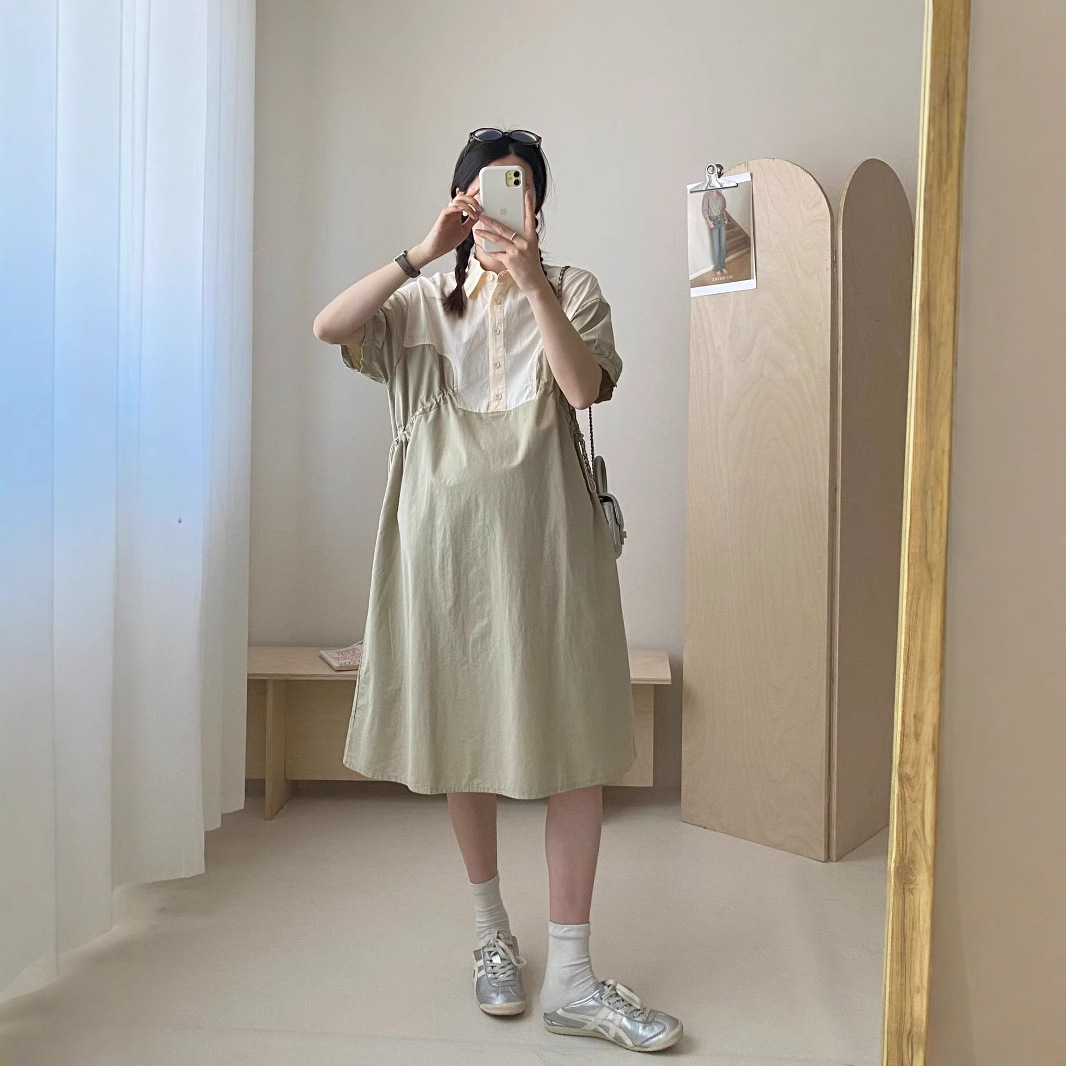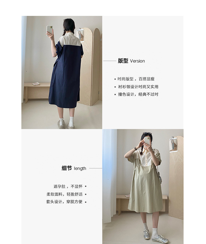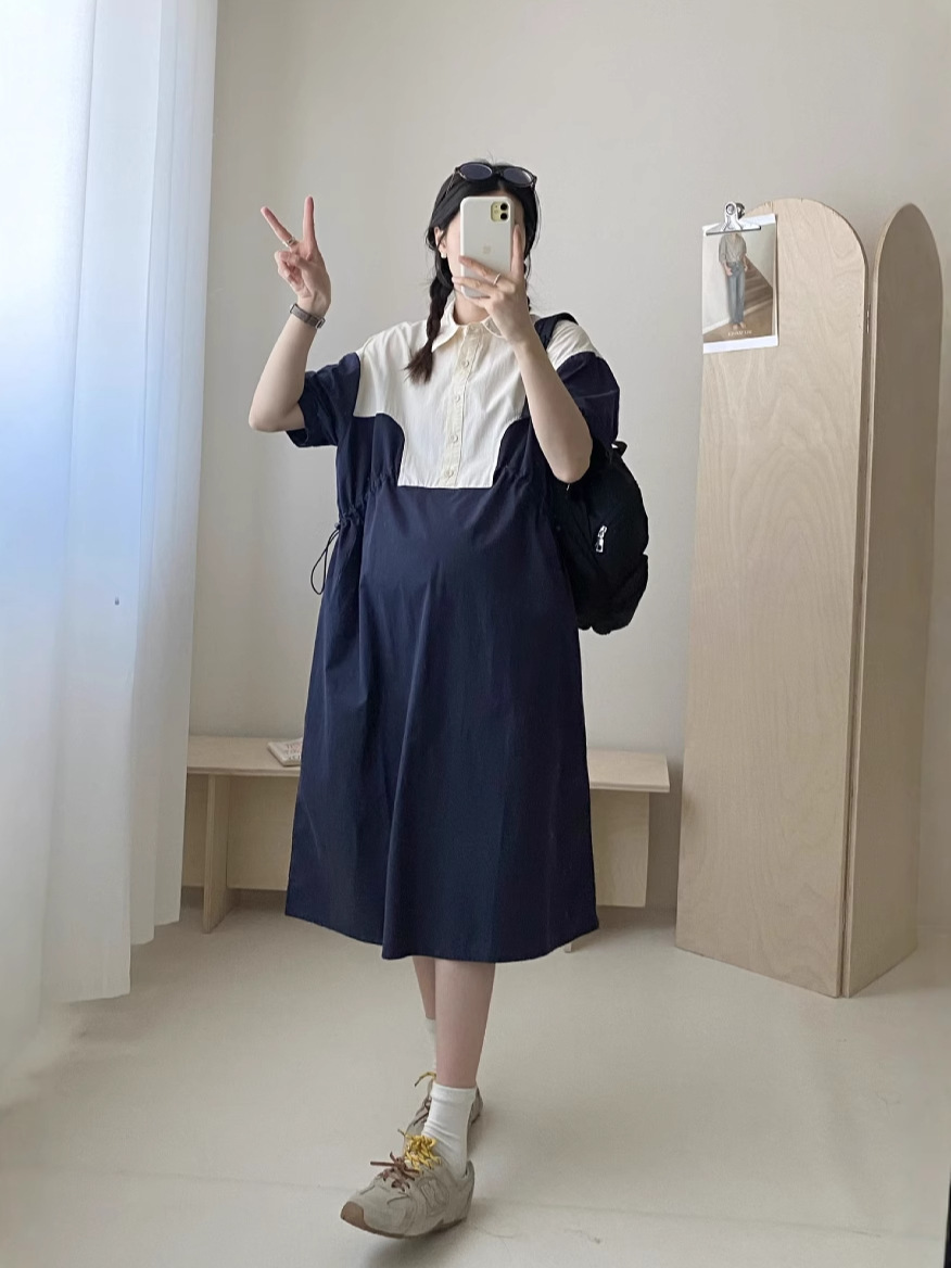 Корейская версия иностранного платья для беременных мода с цветным отворотом и веревкой большого размера тонкое платье с короткими рукавами для беременных