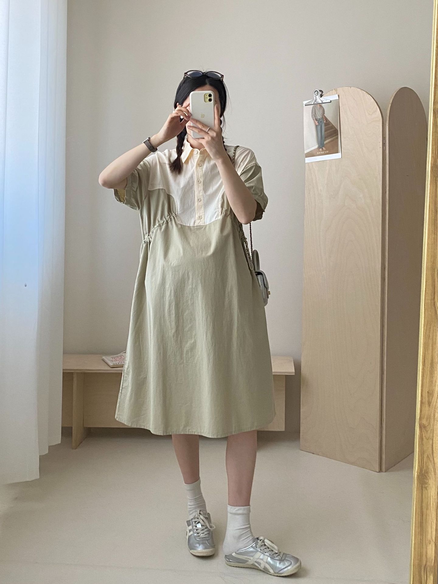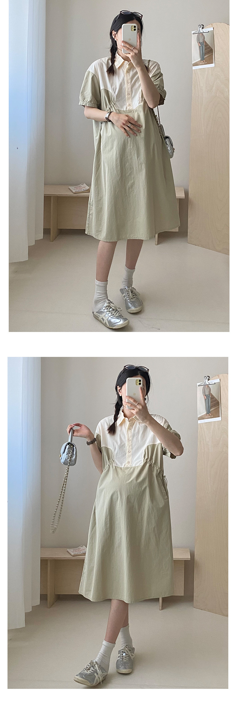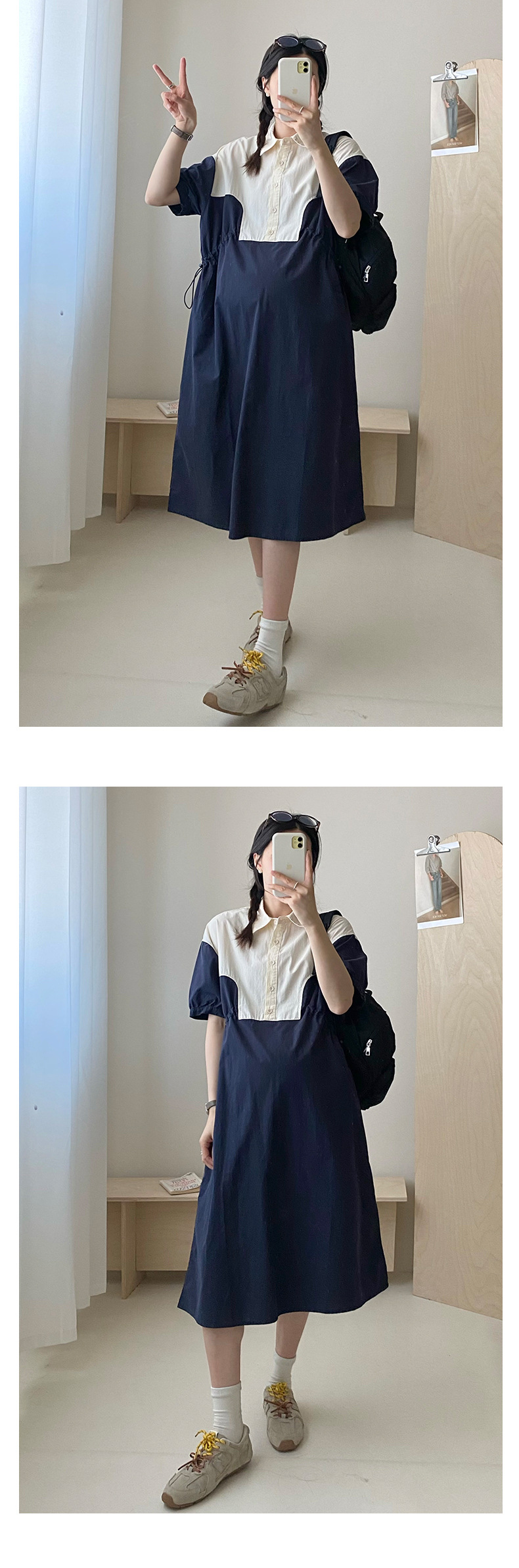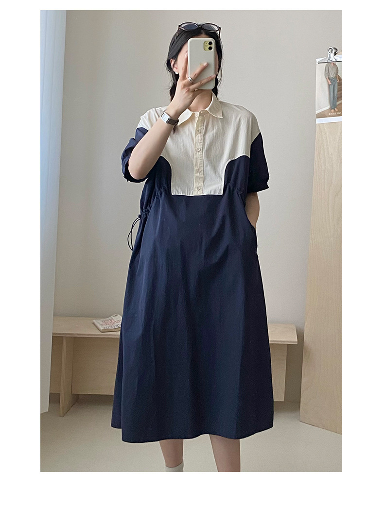 Корейская версия иностранного платья для беременных мода с цветным отворотом и веревкой большого размера тонкое платье с короткими рукавами для беременных