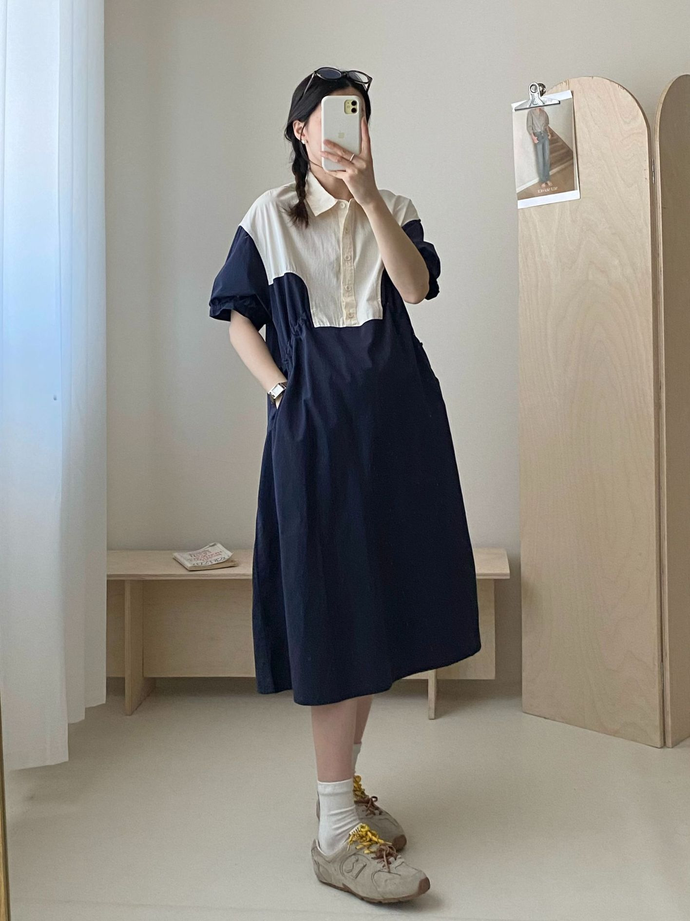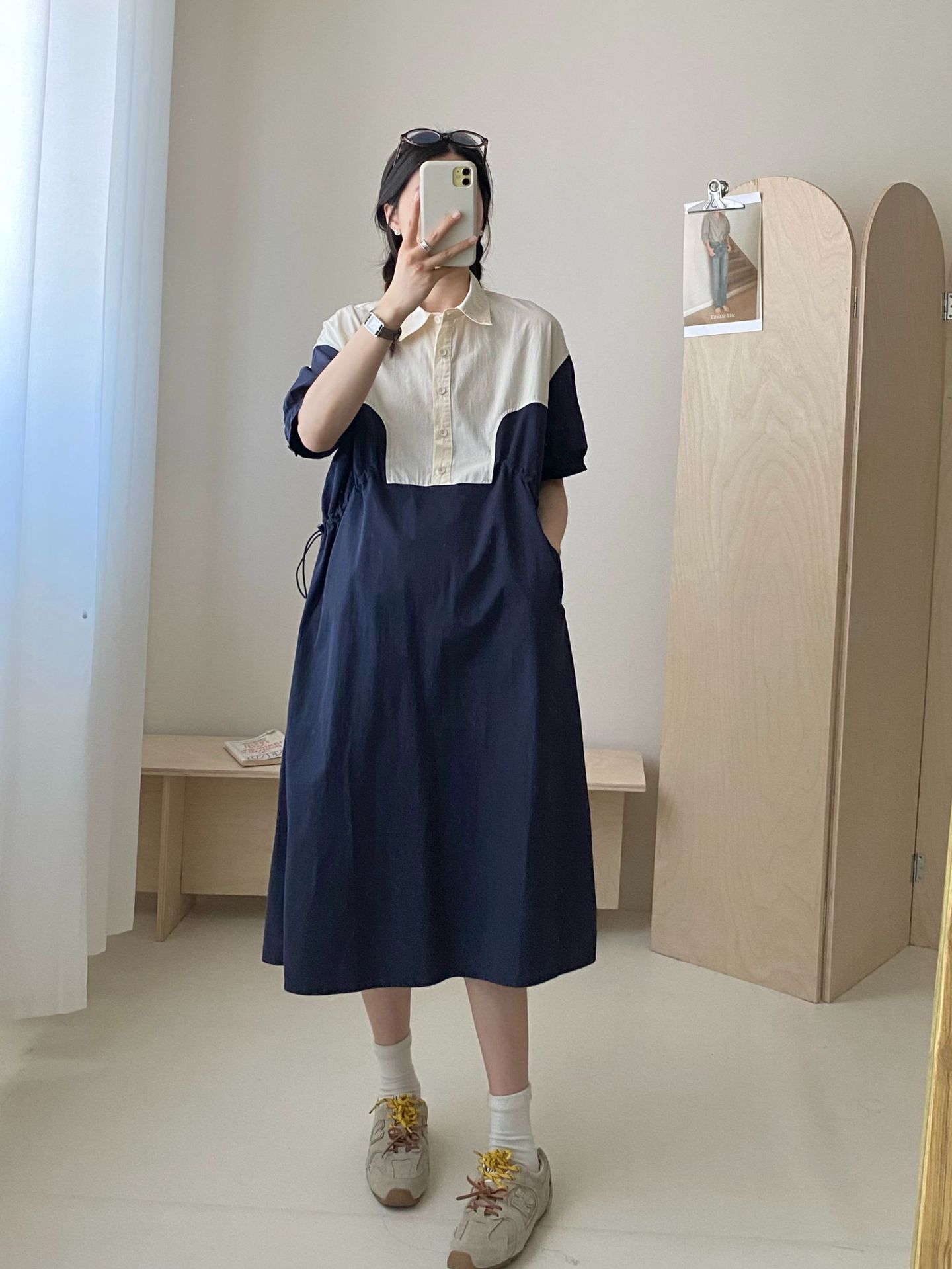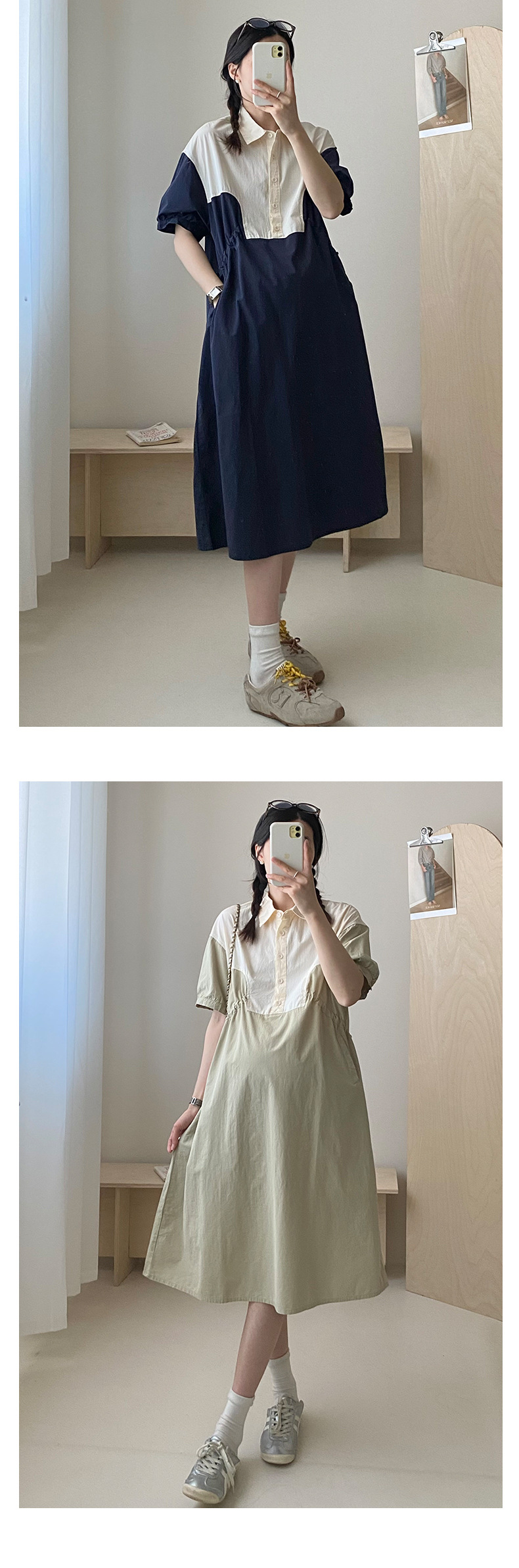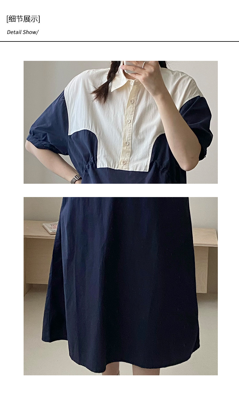Корейская версия иностранного платья для беременных мода с цветным отворотом и веревкой большого размера тонкое платье с короткими рукавами для беременных