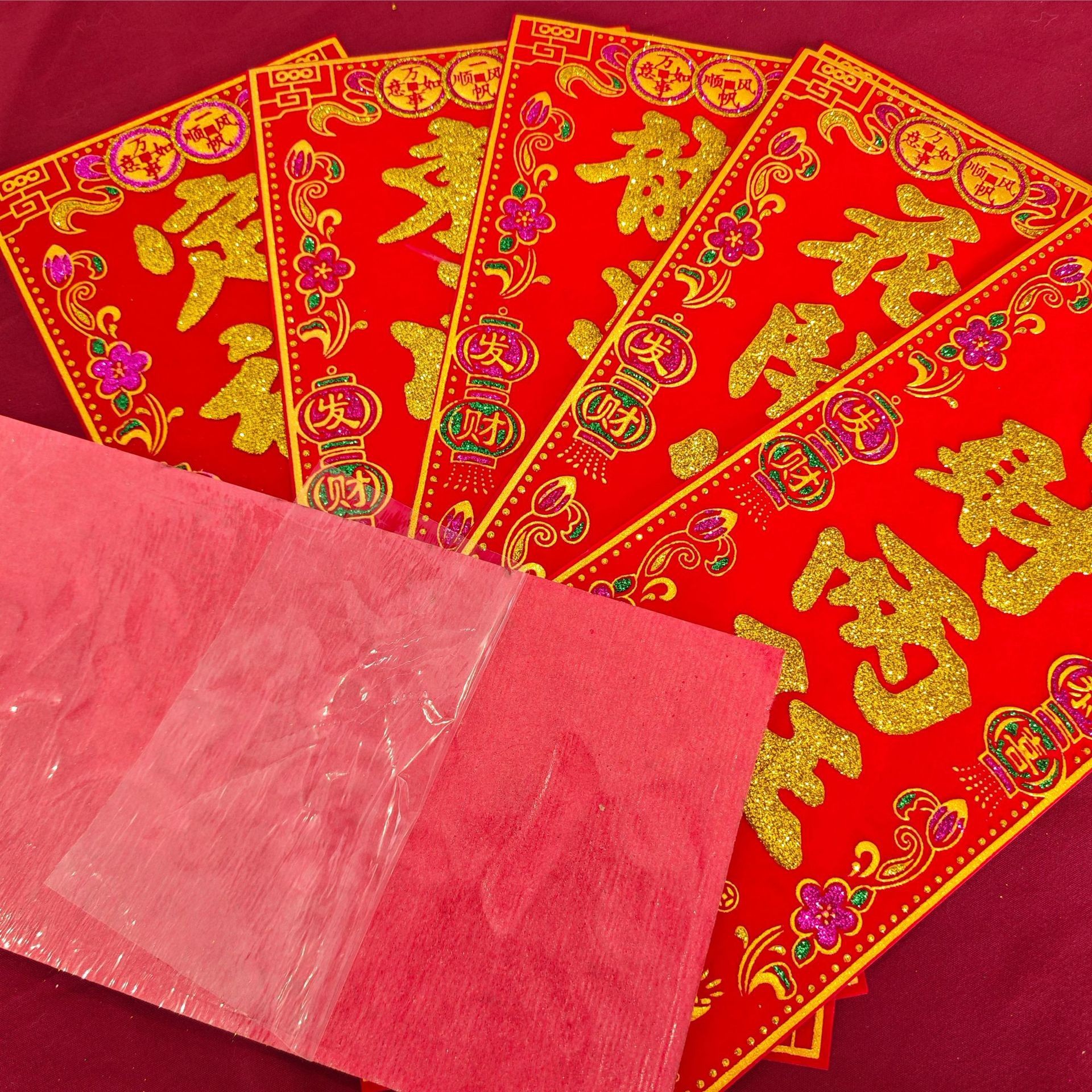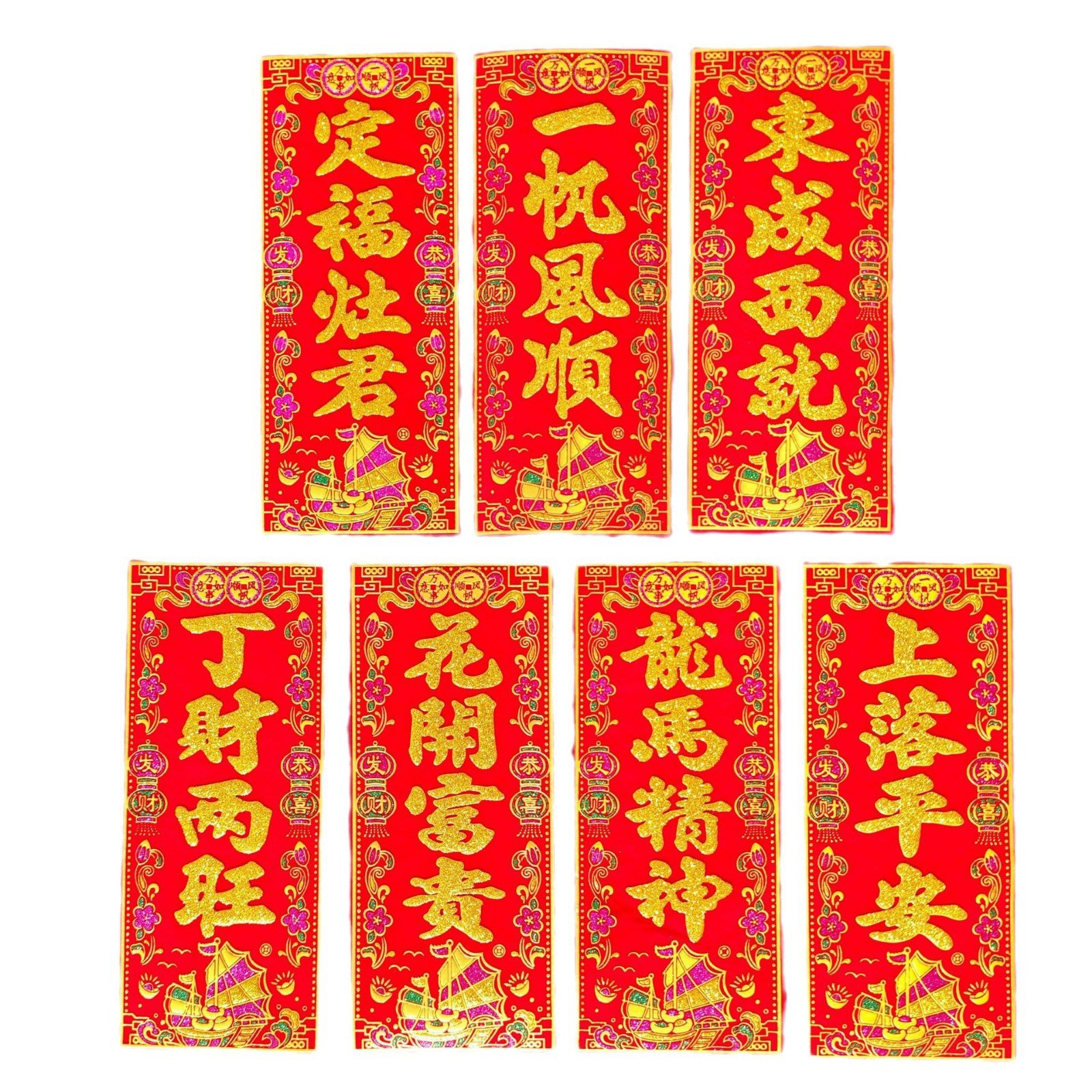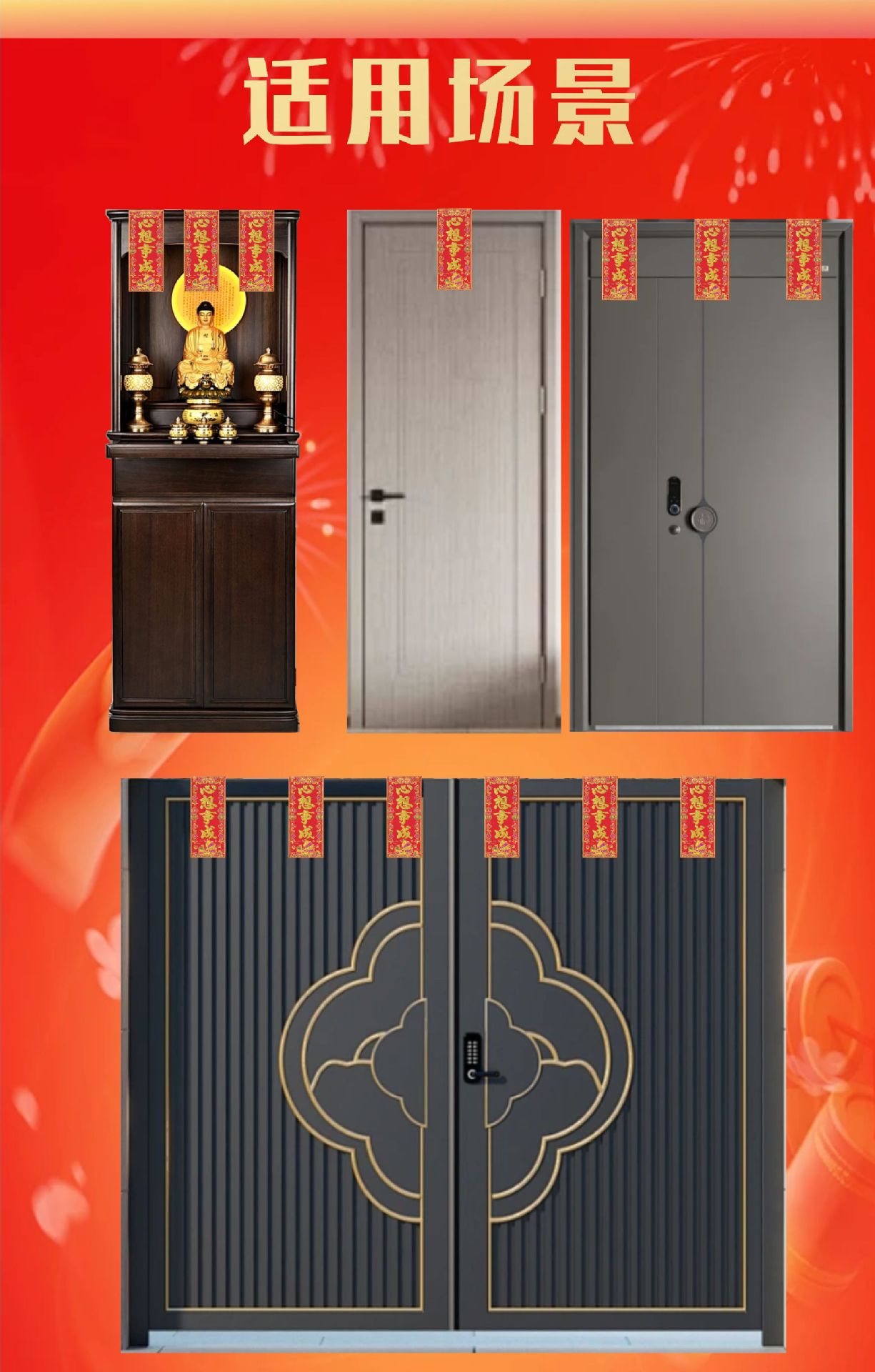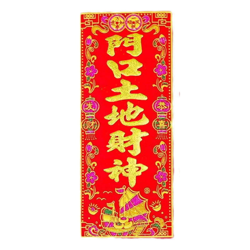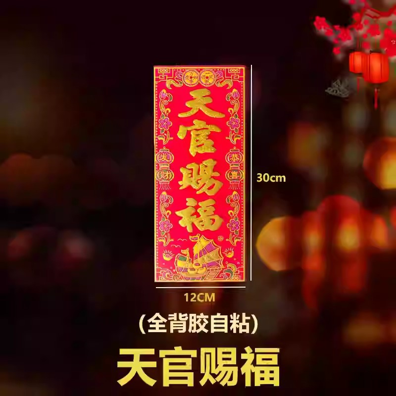 Цветы распускаются, богатство в руках, гарантированы благословения Востока и Запада, красный фон с бархатными самоклеящимися четырехсимвольными куплетами на Золотой фольге.