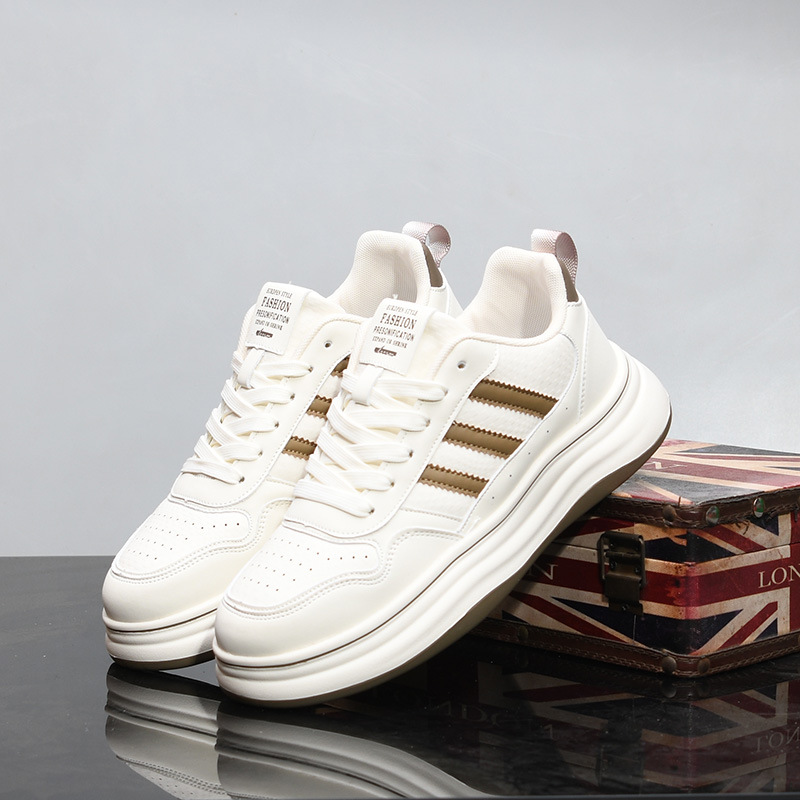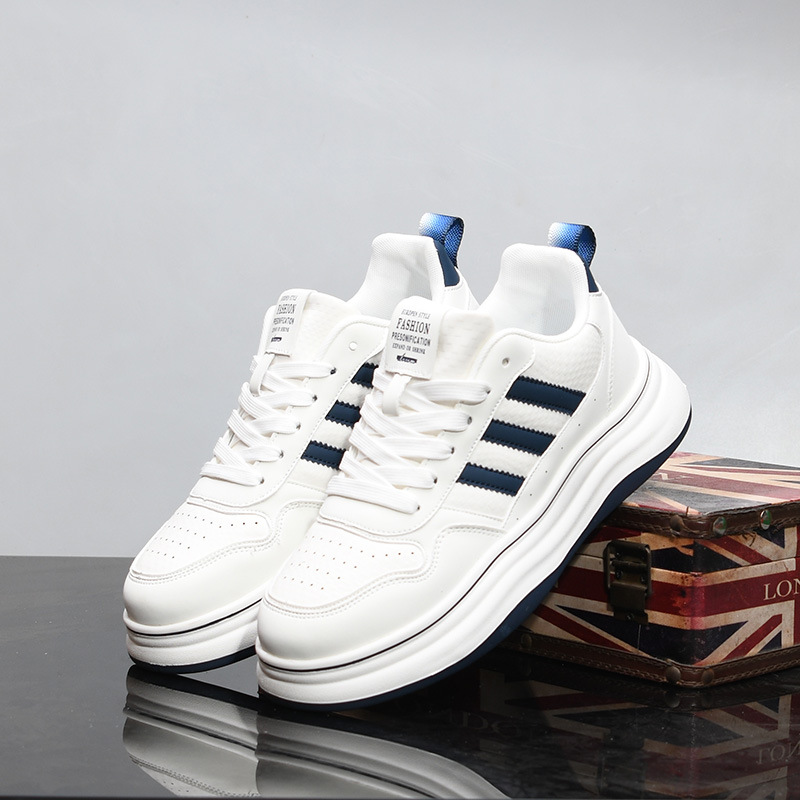 Белые мужские туфли с тремя полосками, универсальная спортивная и повседневная обувь, модная мужская обувь, весенне-осенние дышащие кроссовки на толстой подошве для мужчин 693