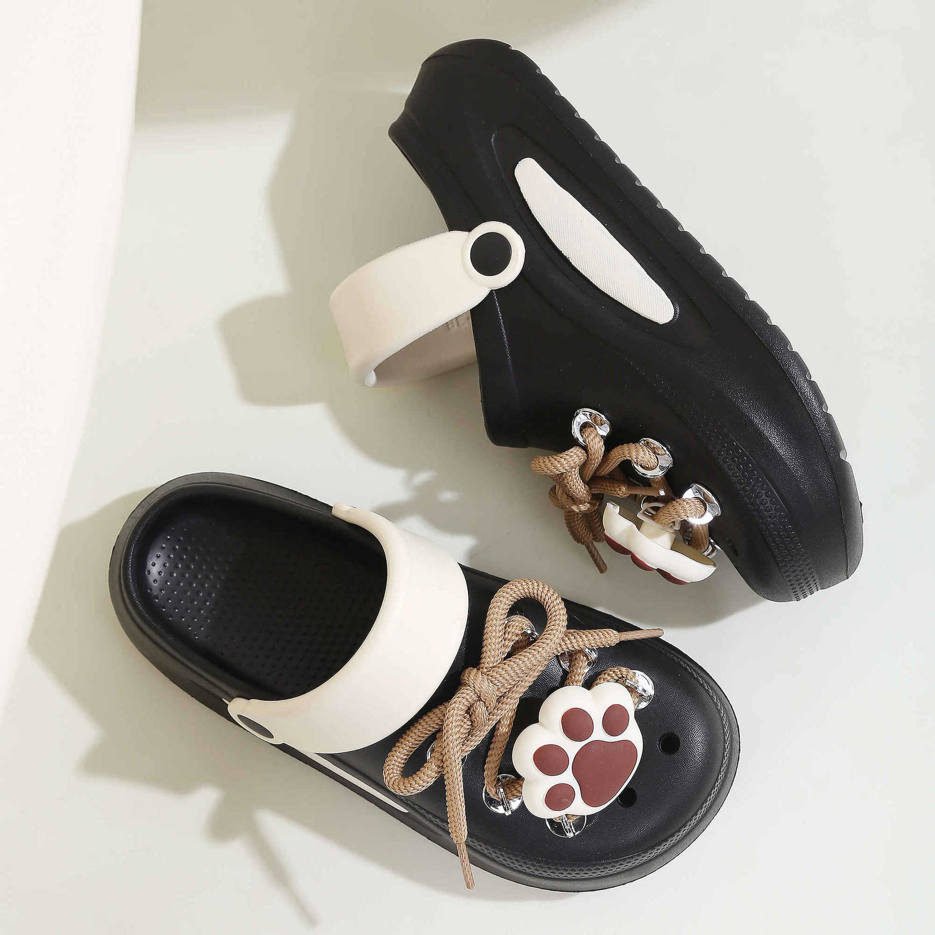 Обувь с толстой подошвной дырочкой женская летняя наружная одежда увеличивается 2025 новый EVA сеть красный пляж холодные тапочки женская оптом