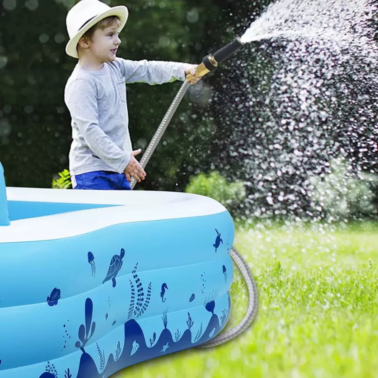 Надувной бассейн, газон, водная игрушка, водная горка для серфинга, спринклер, игровой коврик, слон, горка, фонтан