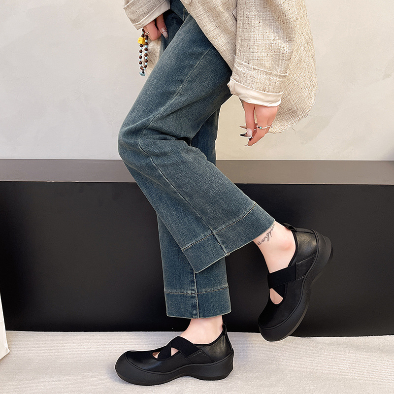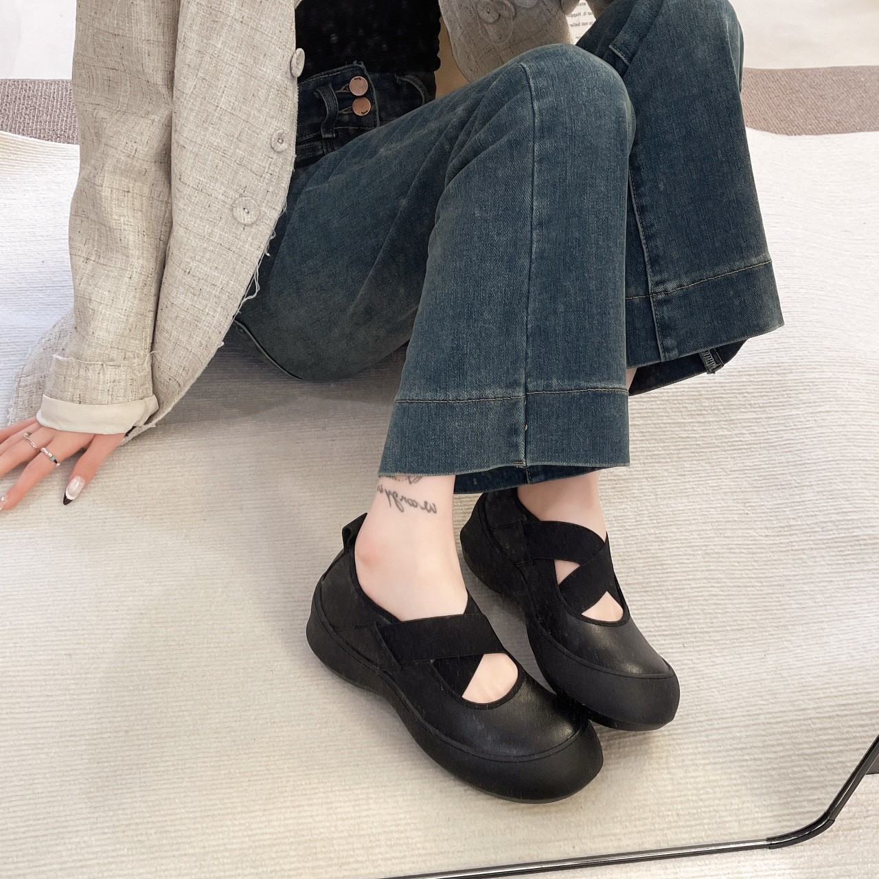 Версия из овчины ~ ретро, на мягкой подошве, на толстой подошве, с внутренней стороны, увеличивающая рост, женские универсальные туфли из натуральной кожи с перекрестными ремешками, маленькие туфли на плоской подошве, рабочая одежда, туфли Мэри Джейн