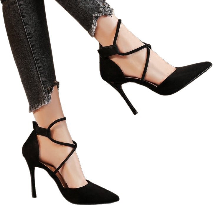 Модные женские туфли на высоком каблуке 2025: осенняя новинка, римские босоножки с перекрестными ремешками, замшевые туфли-стилеты на высоком каблуке для женщин