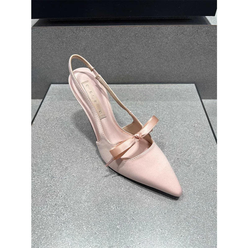 Остроконечные атласные туфли на высоком каблуке женский 2025 весна лето новый педаль розовый красивый сандалии на высоком каблуке