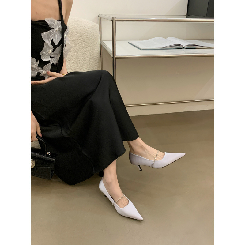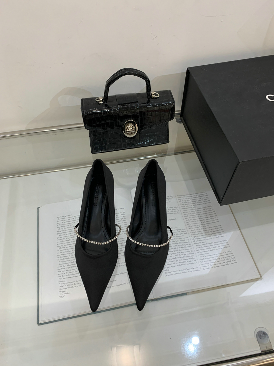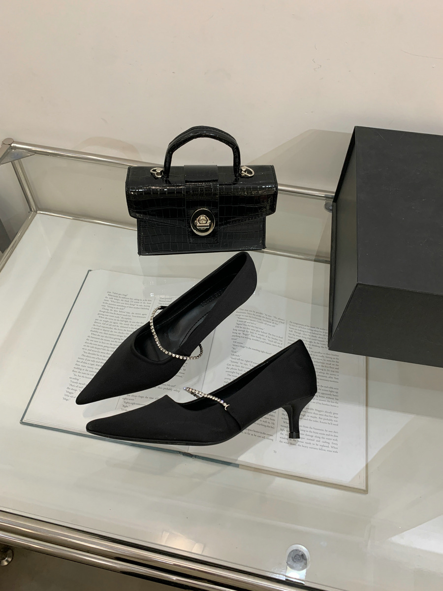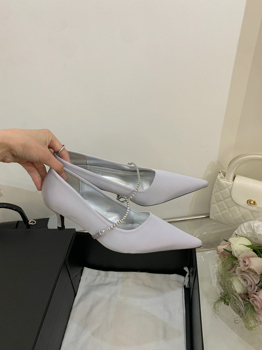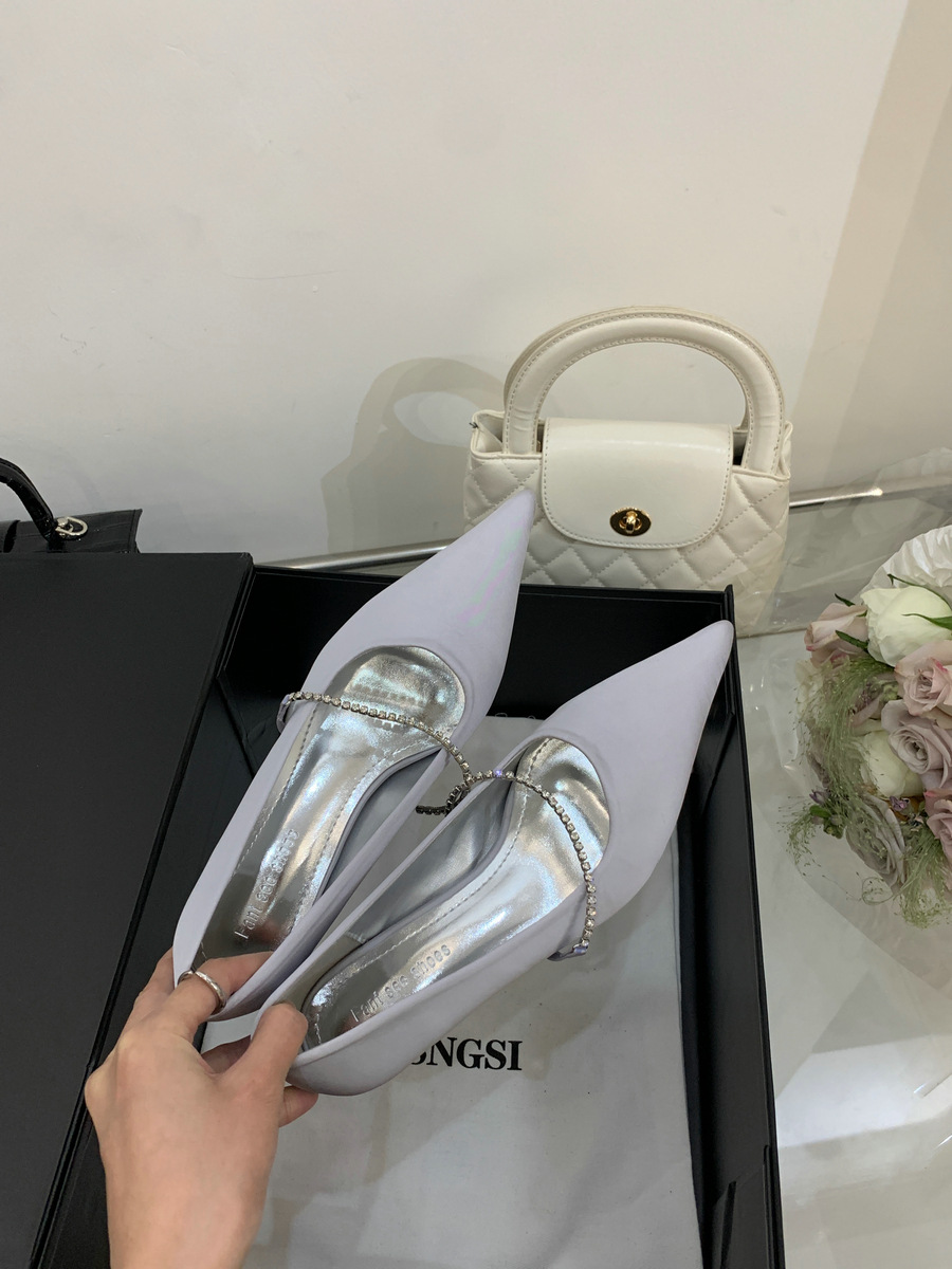 2025 новая мода яркая бриллиантовая цепь на высоком каблуке женская наружная обувь с низким каблуком