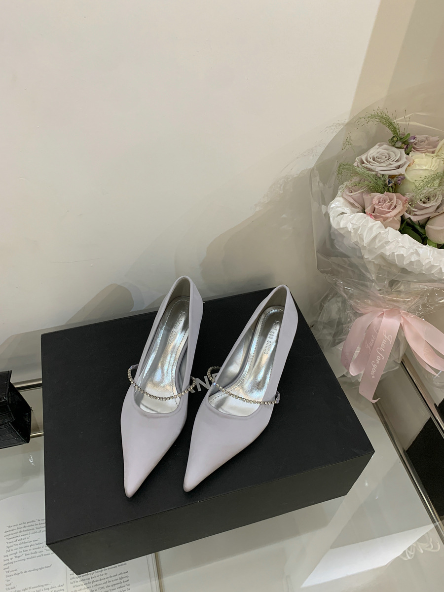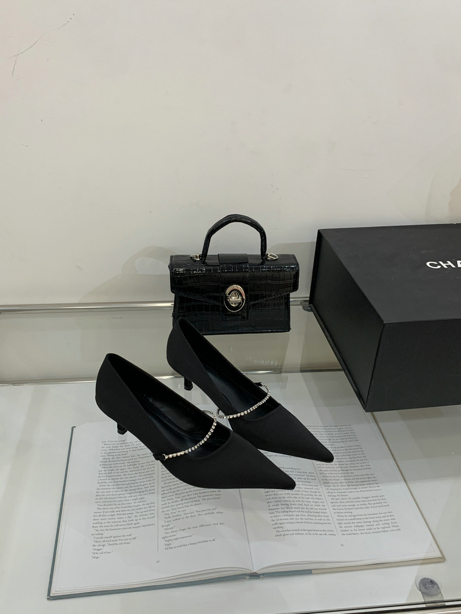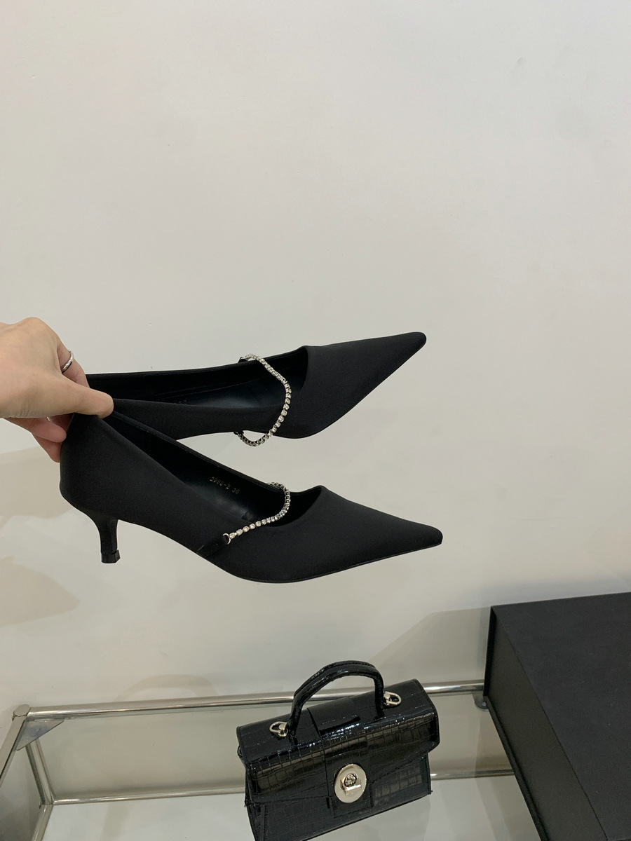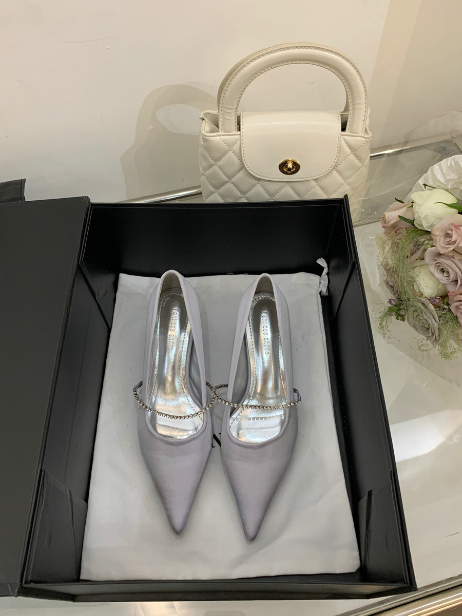 2025 новая мода яркая бриллиантовая цепь на высоком каблуке женская наружная обувь с низким каблуком
