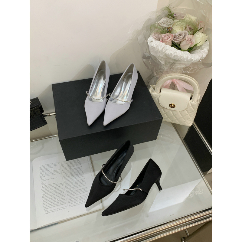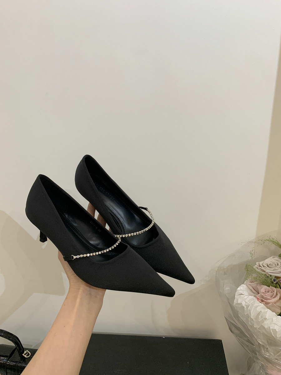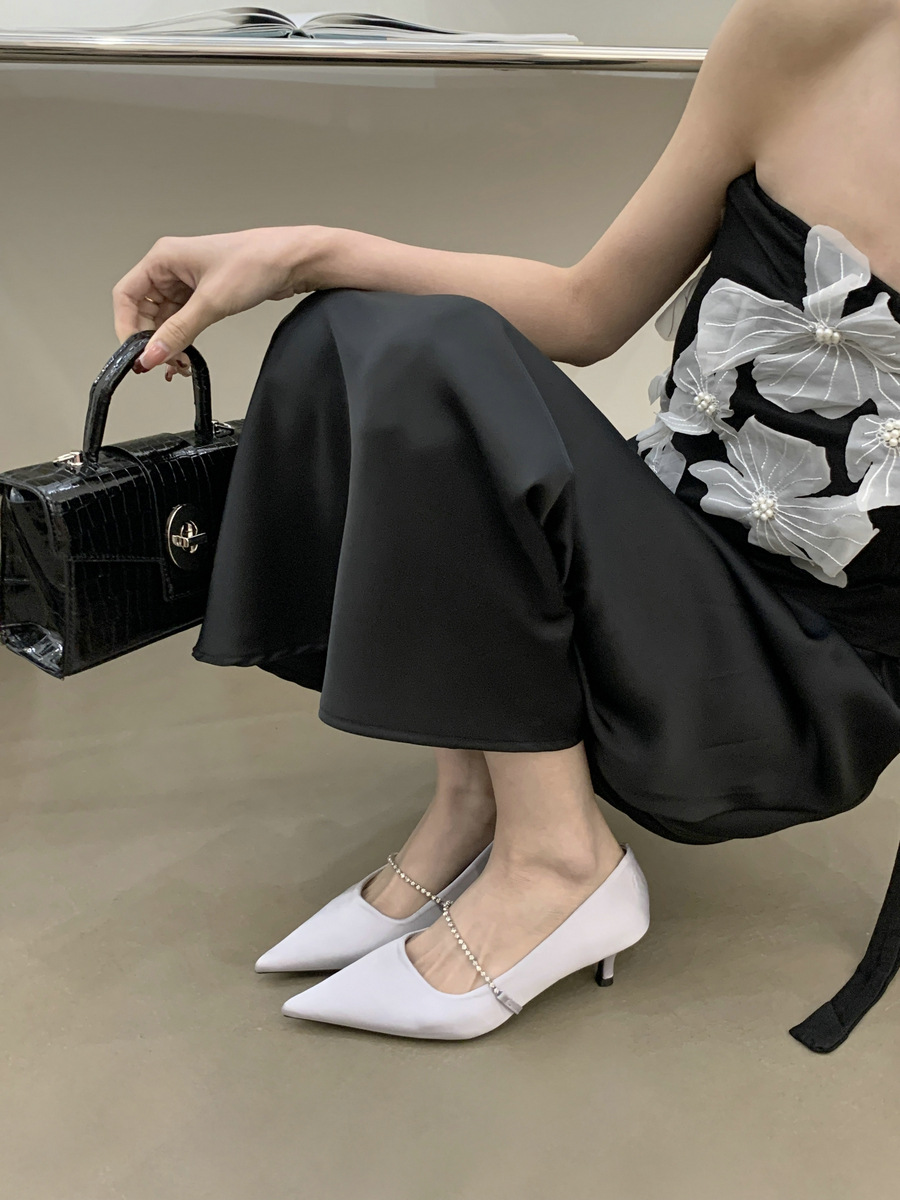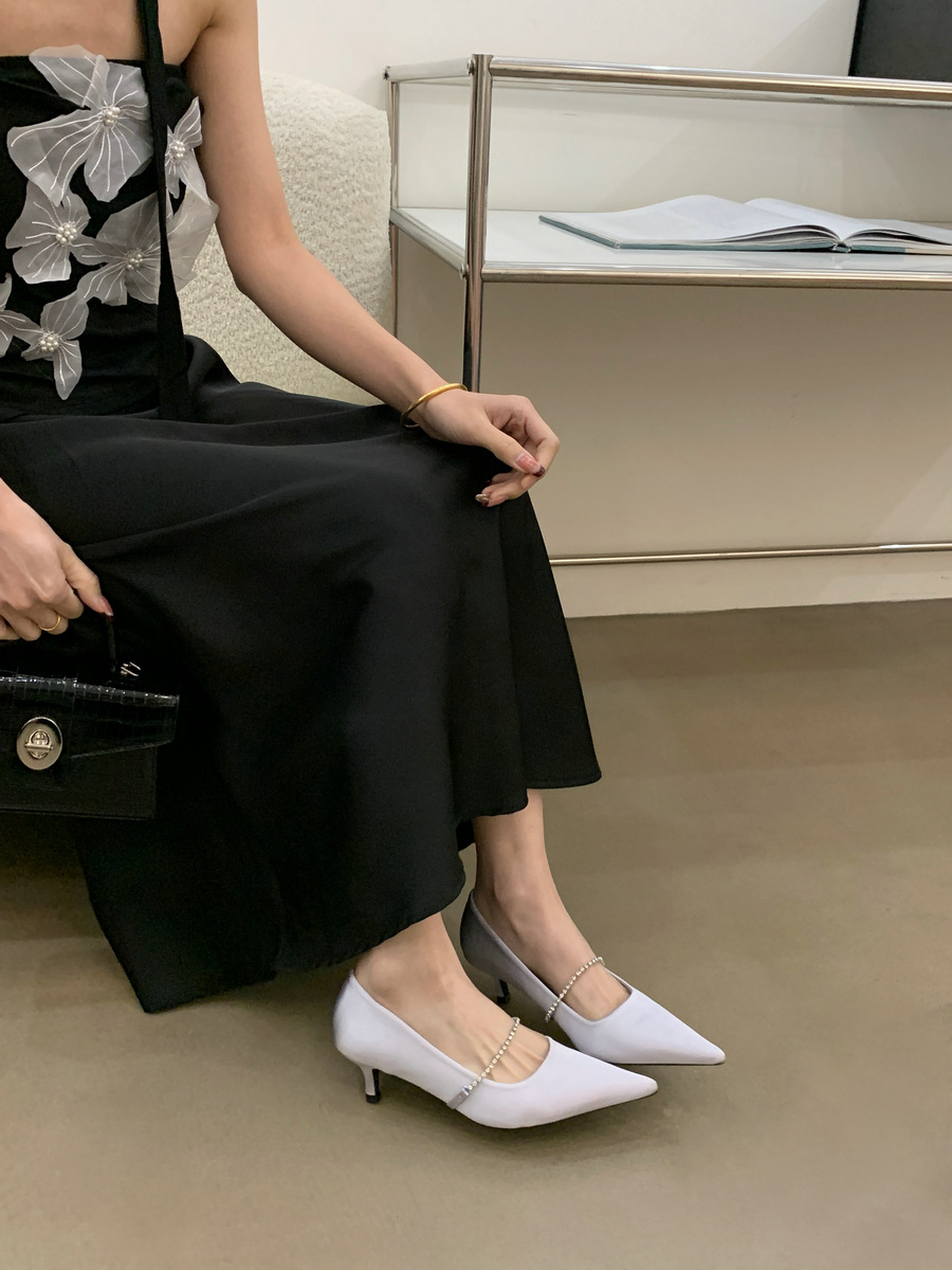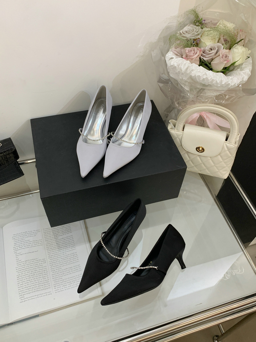 2025 новая мода яркая бриллиантовая цепь на высоком каблуке женская наружная обувь с низким каблуком