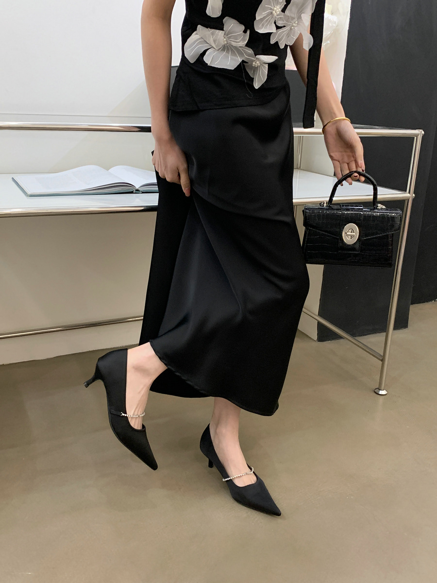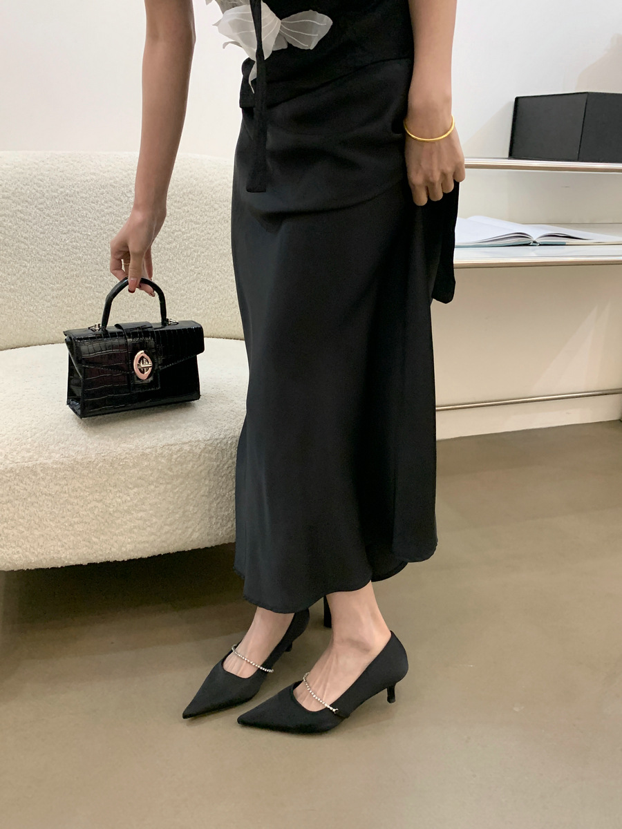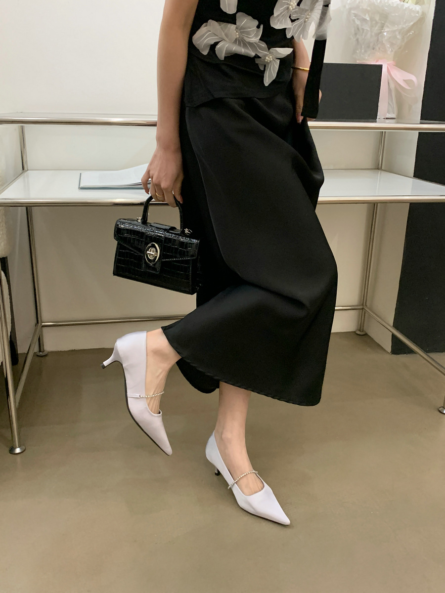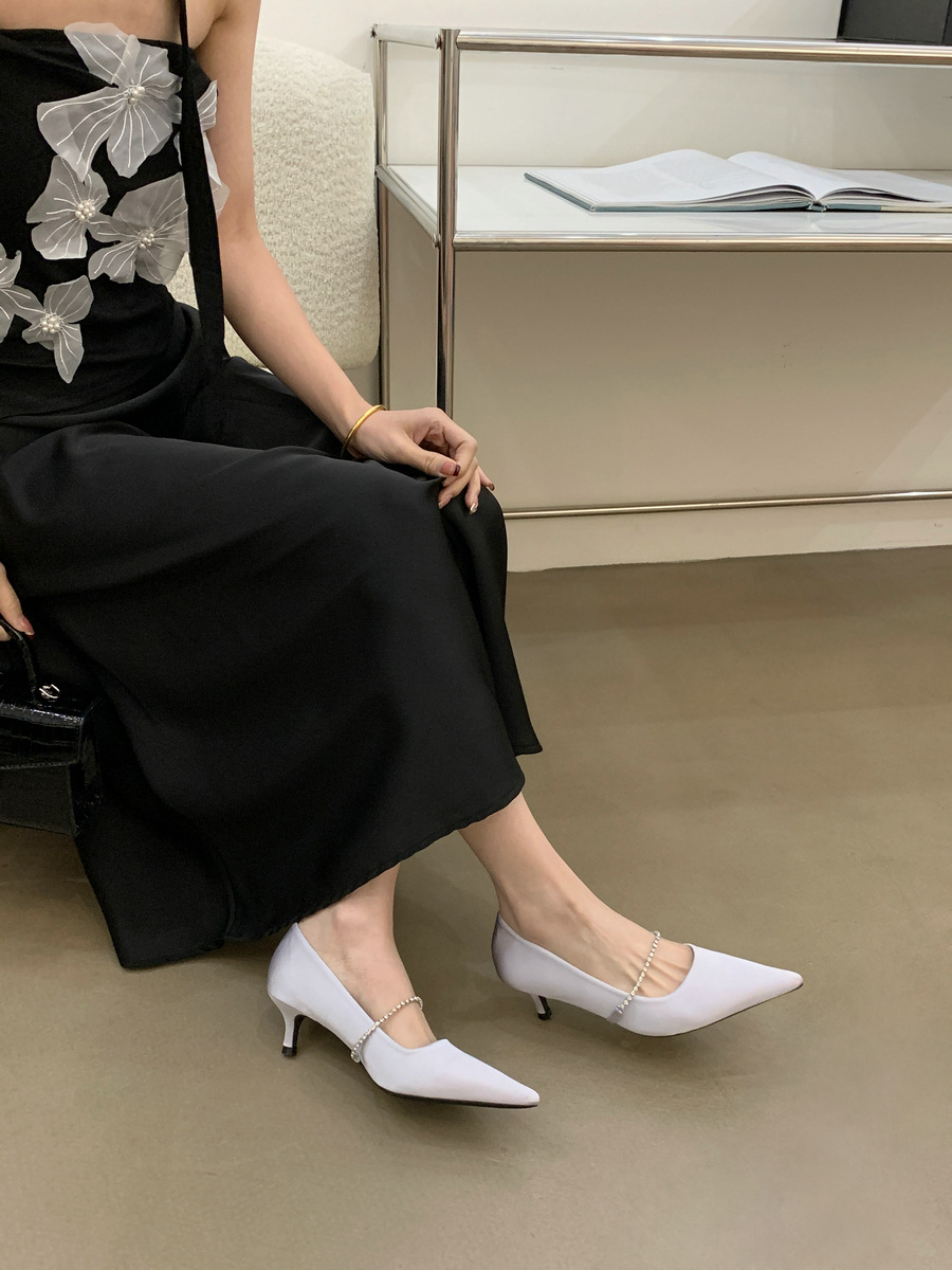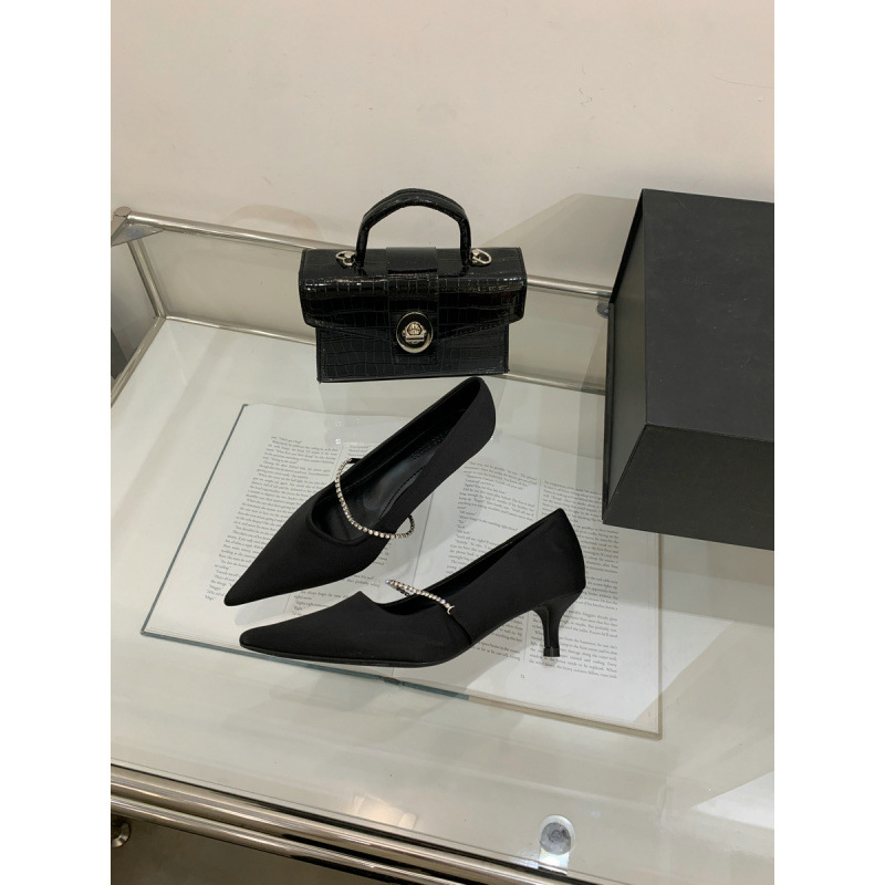 2025 новая мода яркая бриллиантовая цепь на высоком каблуке женская наружная обувь с низким каблуком