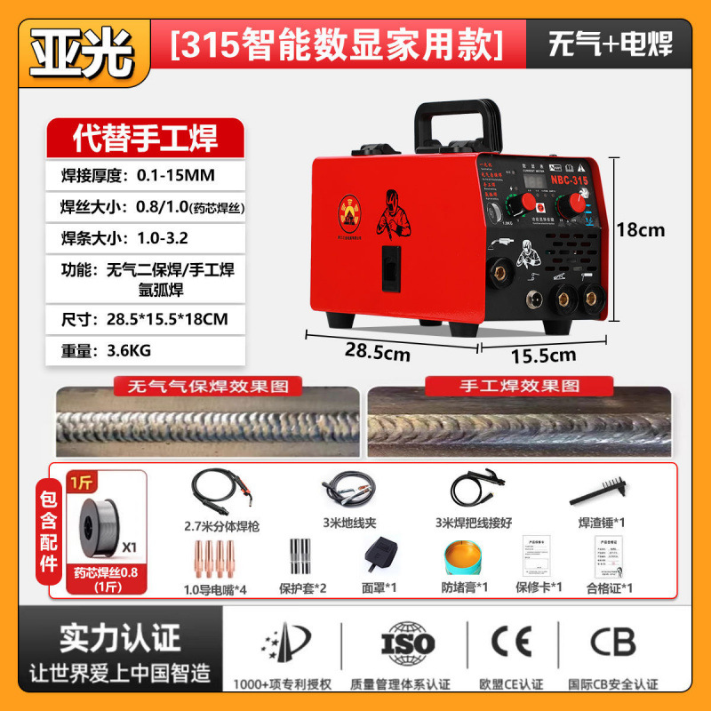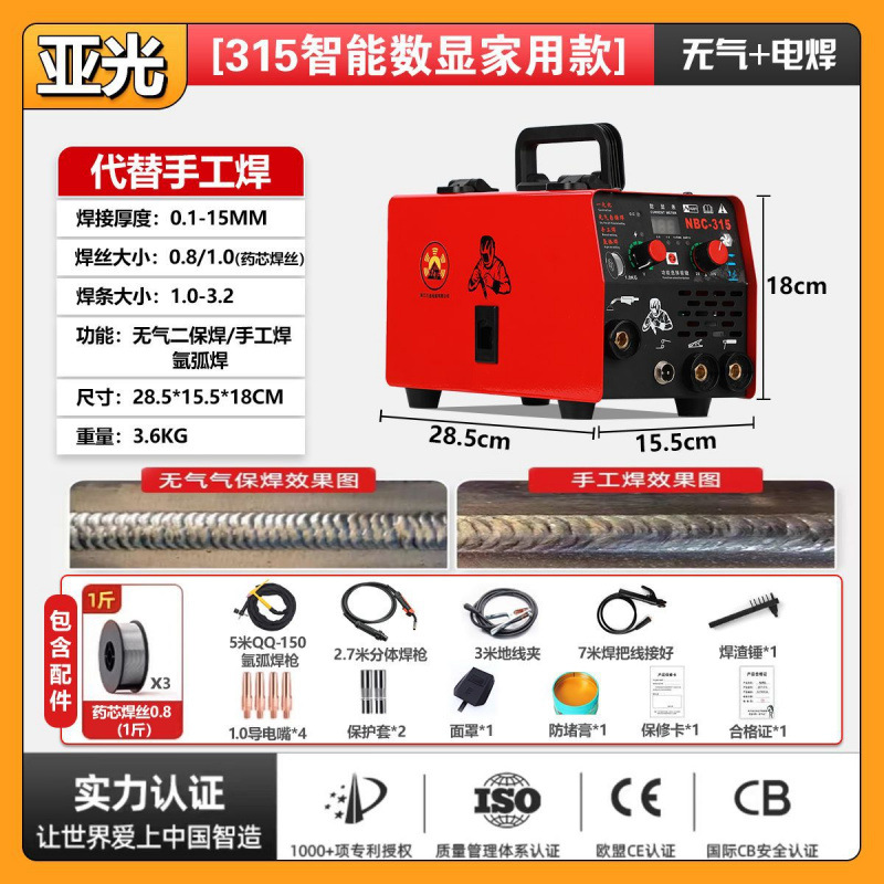 [Доступная трехцелевая модель] Сварочный пакет с защитой от газа; [Бытовая трехцелевая модель] Сварка в защитной среде + ручная сварка для бытового использования; [Модернизированный трехцелевой тип] Сварочный пистолет с защитой от газа + ручной сварочный пистолет; [Высший трехцелевой тип] [Аргонодуговая сварка + сварка в защитной среде + ручная сварка]; NBC-315 трехцелевой [голый металл]