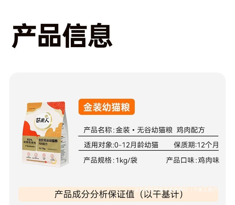 [Высокое содержание мяса, высокое содержание белка, 0 зерен] Корм для котят Gold 1.0kg